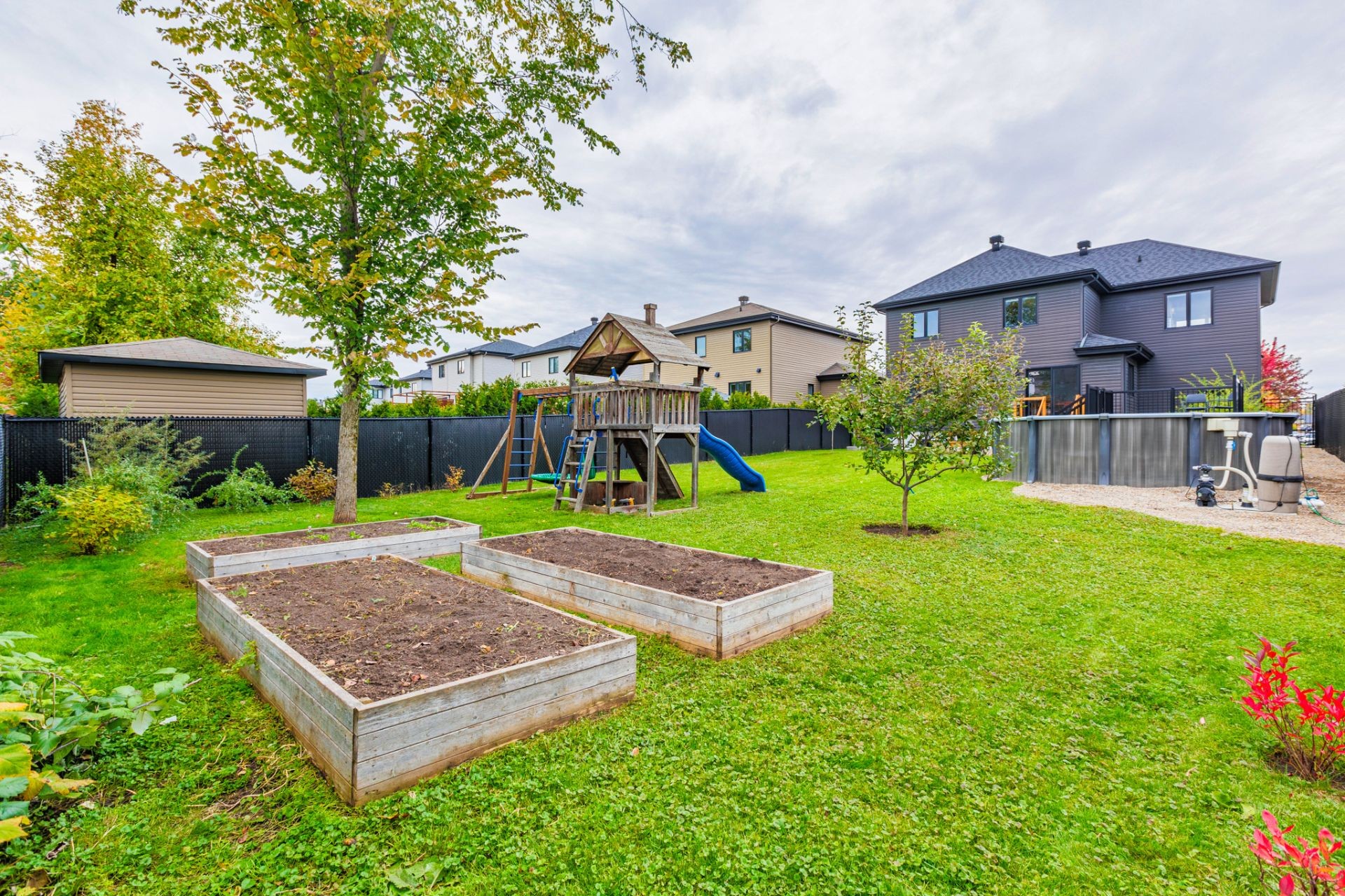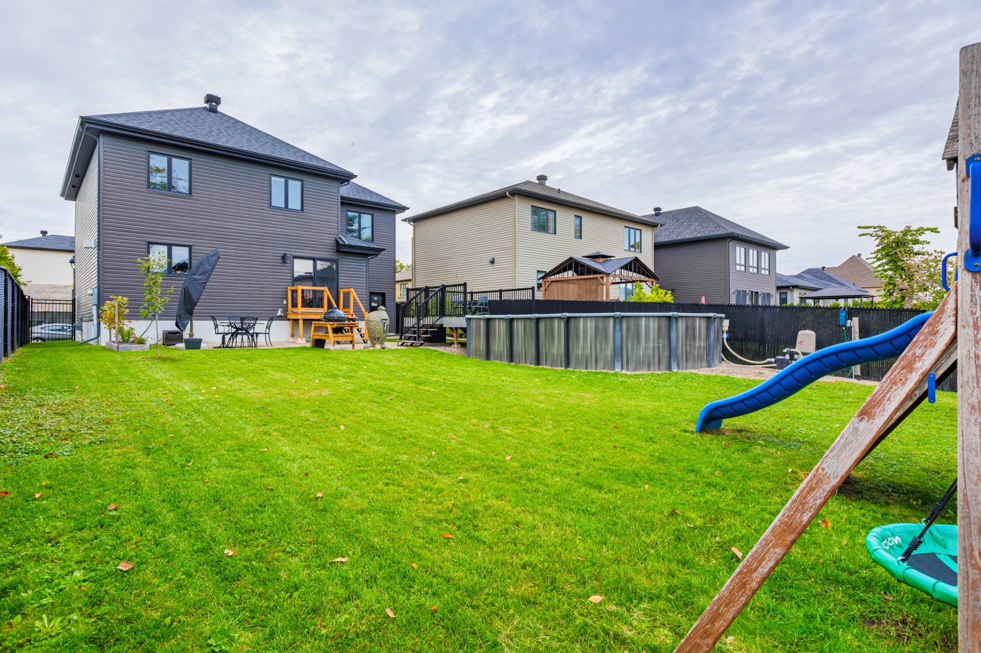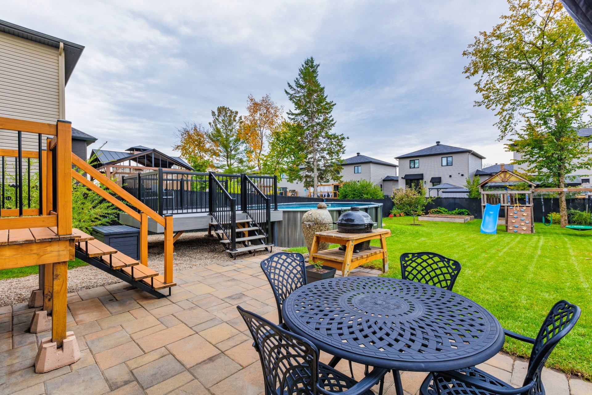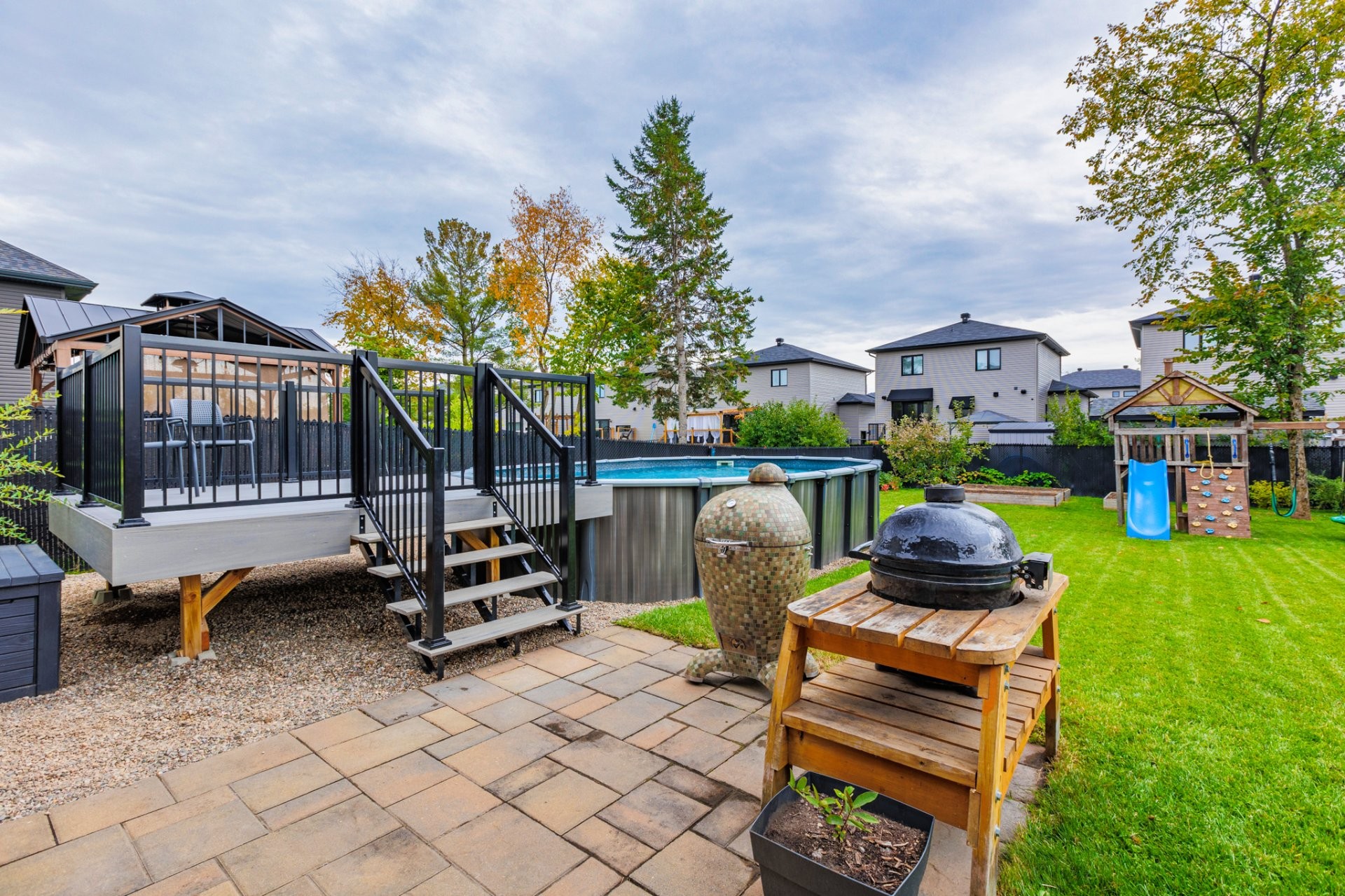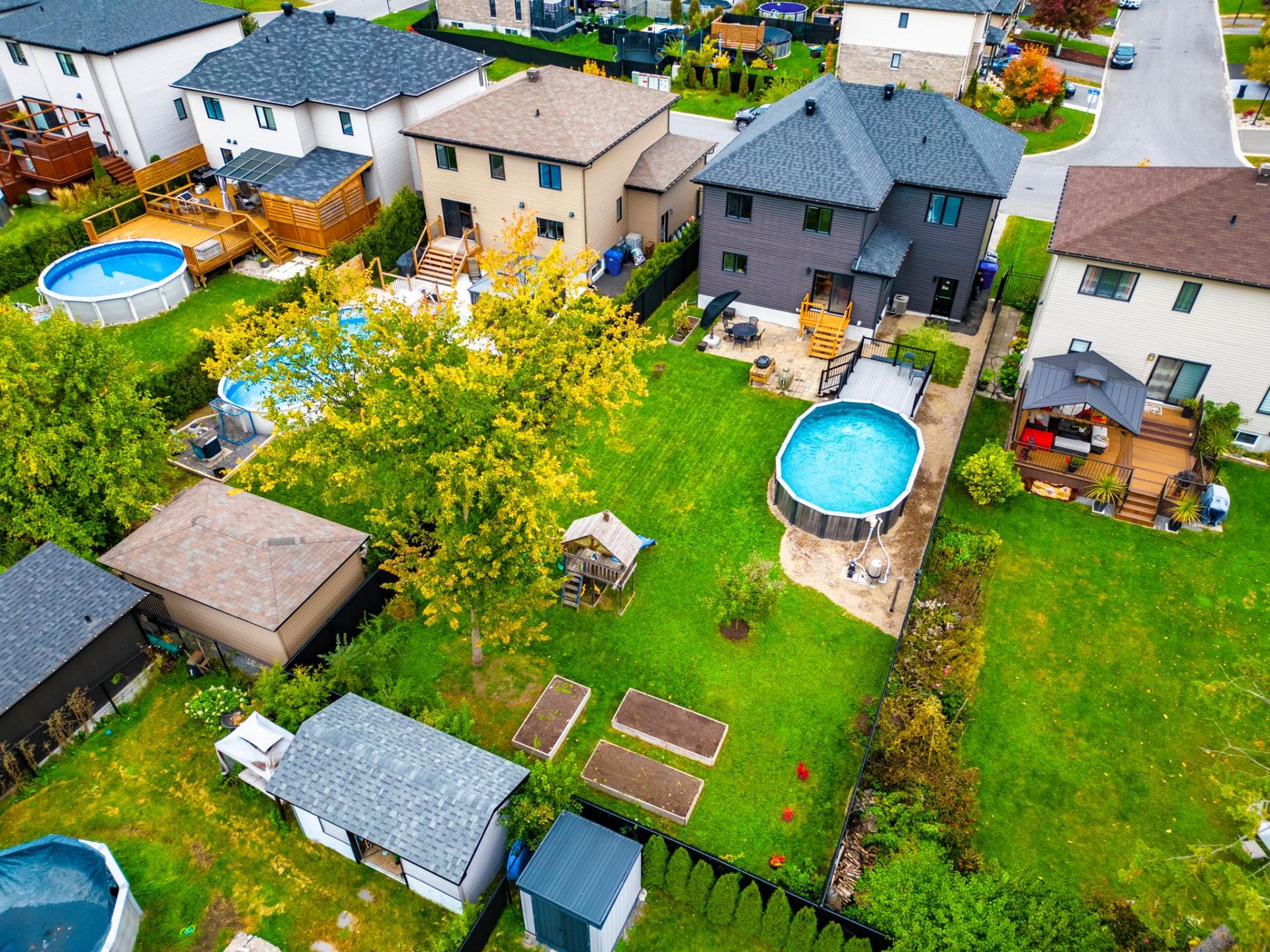 À l'extérieur, la cour arrière entièrement clôturée saura vous séduire avec son espace pavé idéal pour les repas et le BBQ, sa piscine semi-creusée avec terrasse, ainsi que plusieurs possibilités d'aménagement : coin feu, espace jeux ou jardin. Un véritable havre pour profiter pleinement de la belle saison!