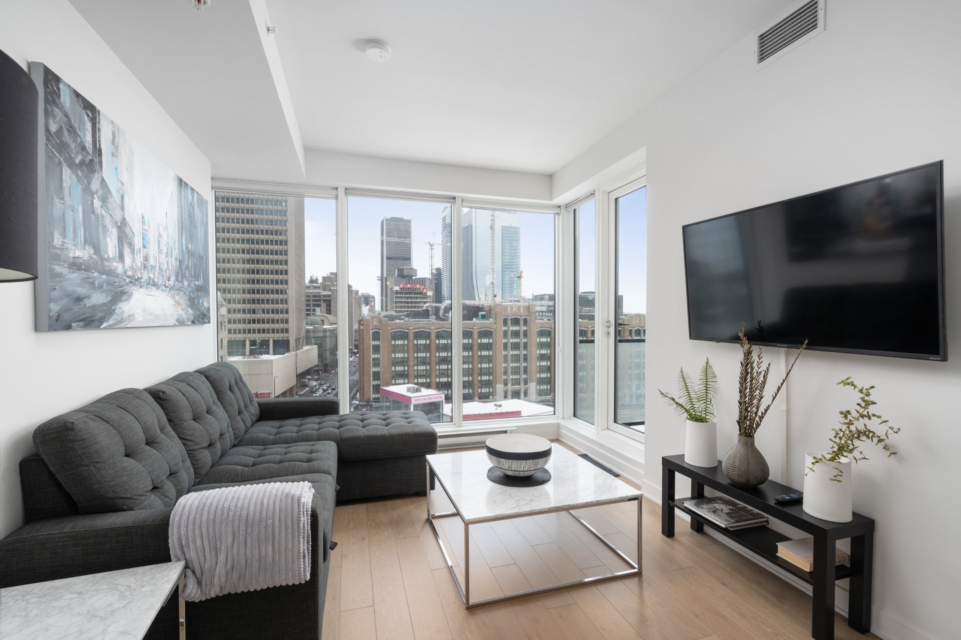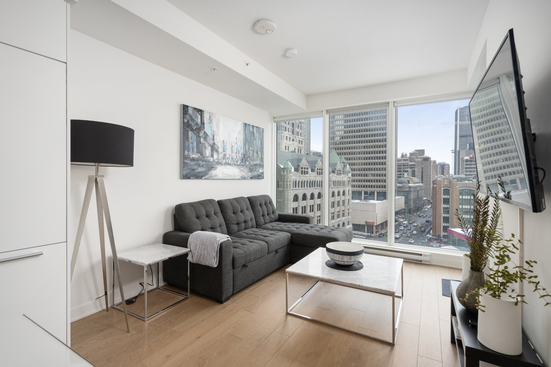 Appartement d'une chambre à coucher clé en main. Profitez du soleil matinal et détendez-vous au skylounge au coucher du soleil. Votre condo à la Tour des Canadiens offre non seulement une vie luxueuse, mais aussi des commodités fantastiques telles qu'une piscine intérieure, un sauna, un bain tourbillon, une salle de gym, une salle de jeux et un bar à vin. De plus, le passage permet d'accéder au métro (Lucien L'Allier), au train et à la ville souterraine sans avoir à sortir les jours où il fait froid.