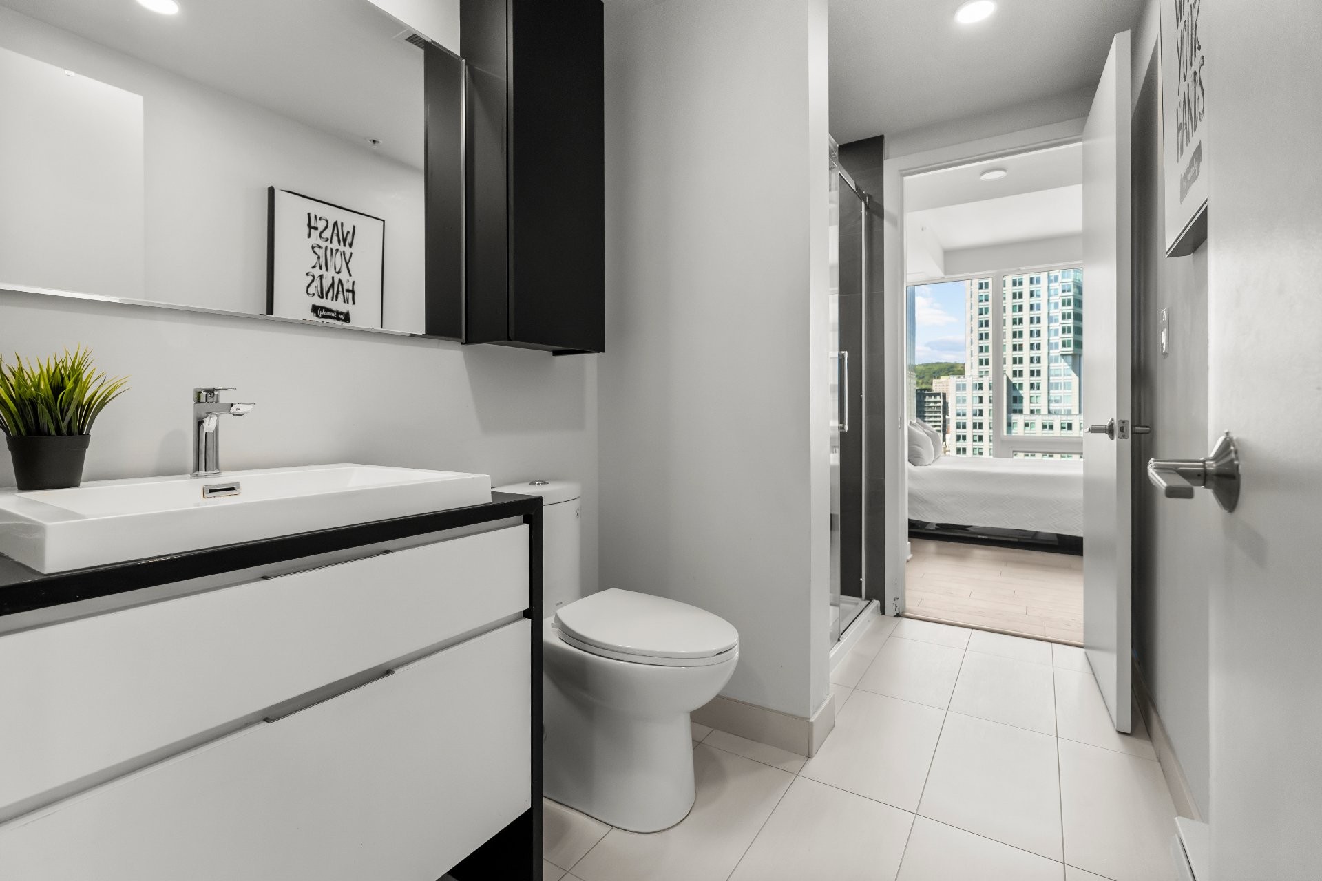 Condo haut de gamme, luxueux, 2 chambres, 2 salles de bain, unité de coin. Très lumineux et ENTIÈREMENT MEUBLÉ au milieu du centre-ville et...
