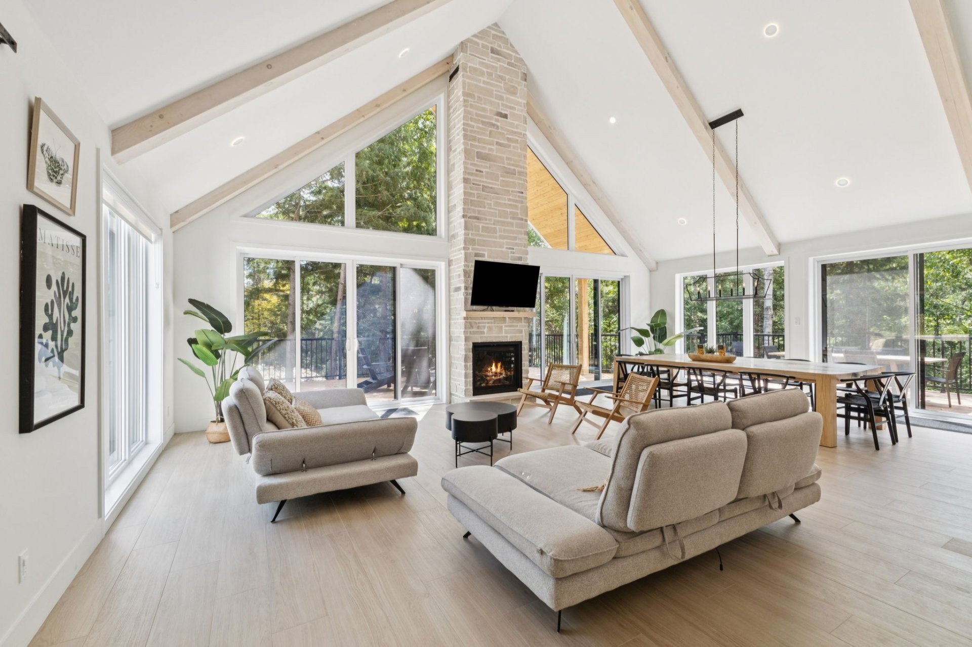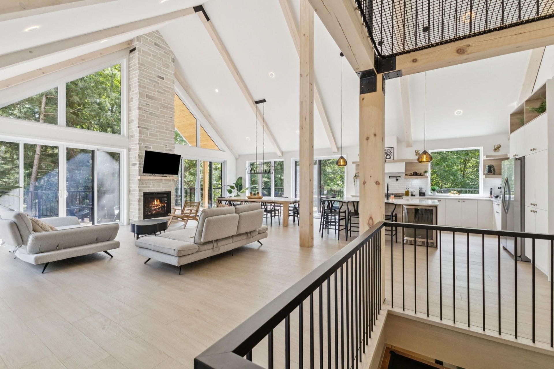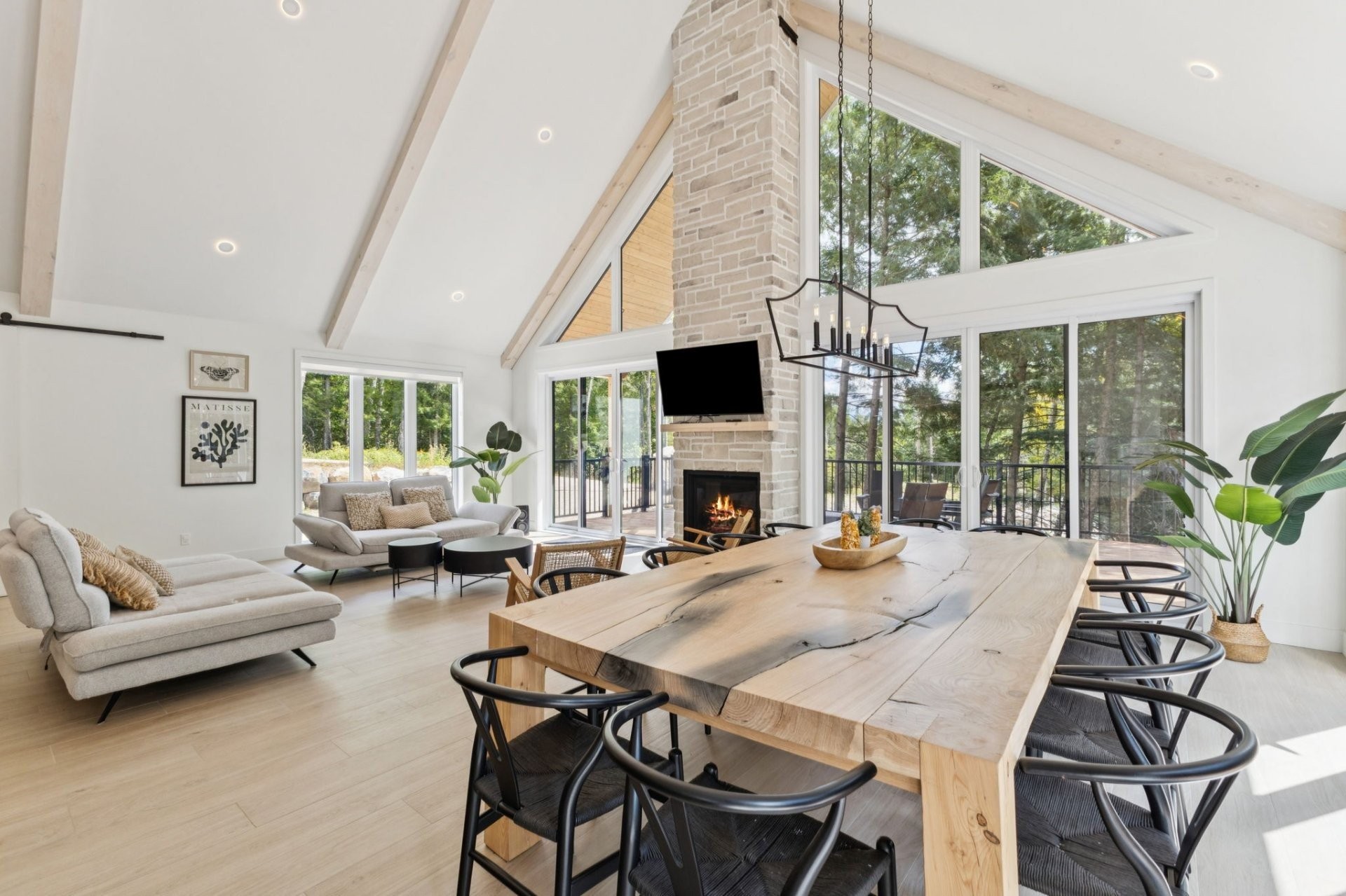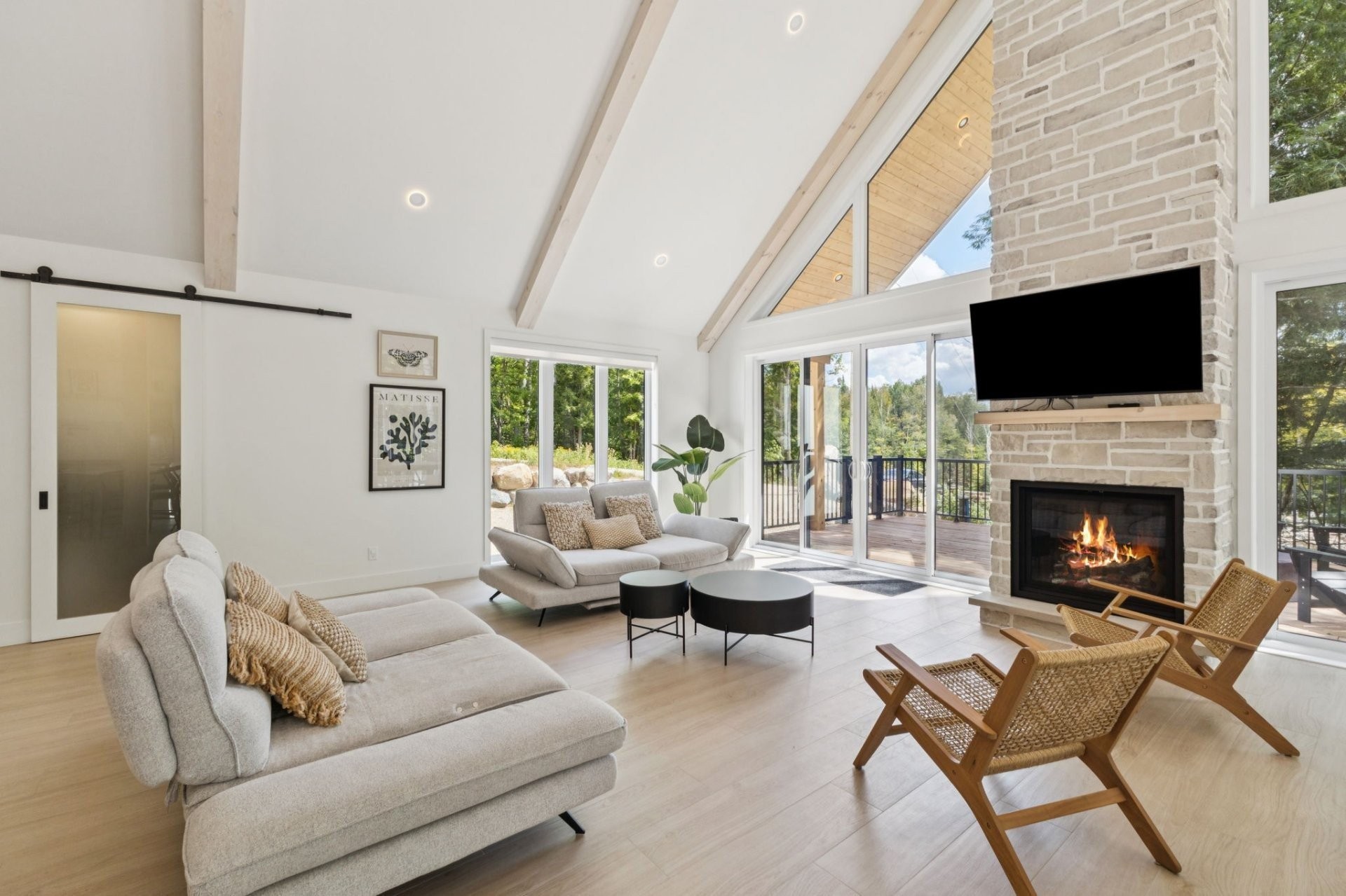 LOCATION COURT TERME AUTORISÉE. Chalet de luxe à construire offrant 5 chambres, 4 salles de bain et 1 salle d'eau, situé à environ 20 minutes de Mont-Tremblant dans le Domaine du Lac Lajeunesse. Architecture contemporaine, plafond cathédrale impressionnant, matériaux haut de gamme et planchers chauffants. Fenestration abondante et vaste terrasse avec jacuzzi pour profiter de la nature environnante. Accès au lac et environnement boisé recherché. Propriété idéale comme résidence secondaire ou investissement locatif dans un secteur touristique prisé.