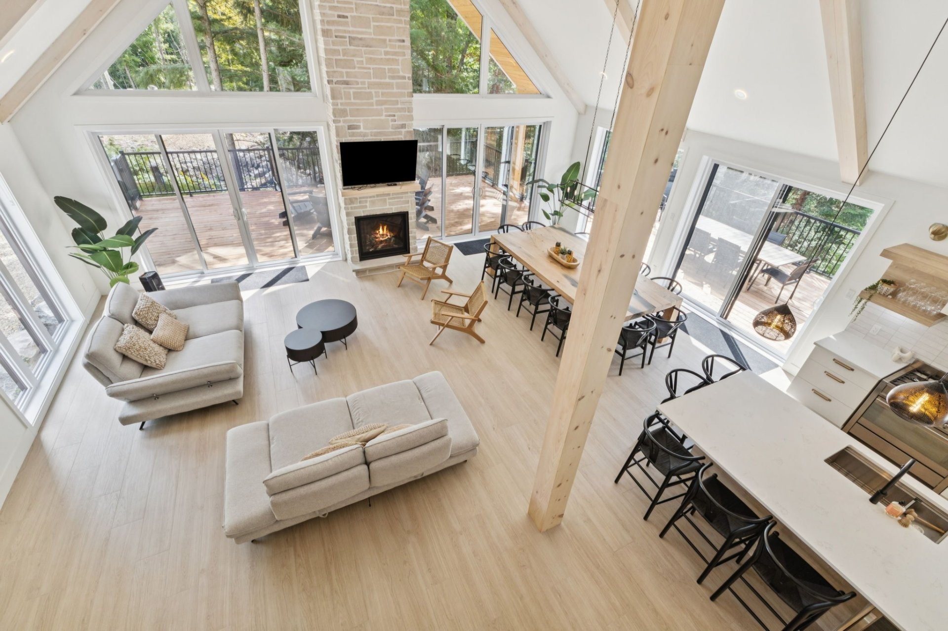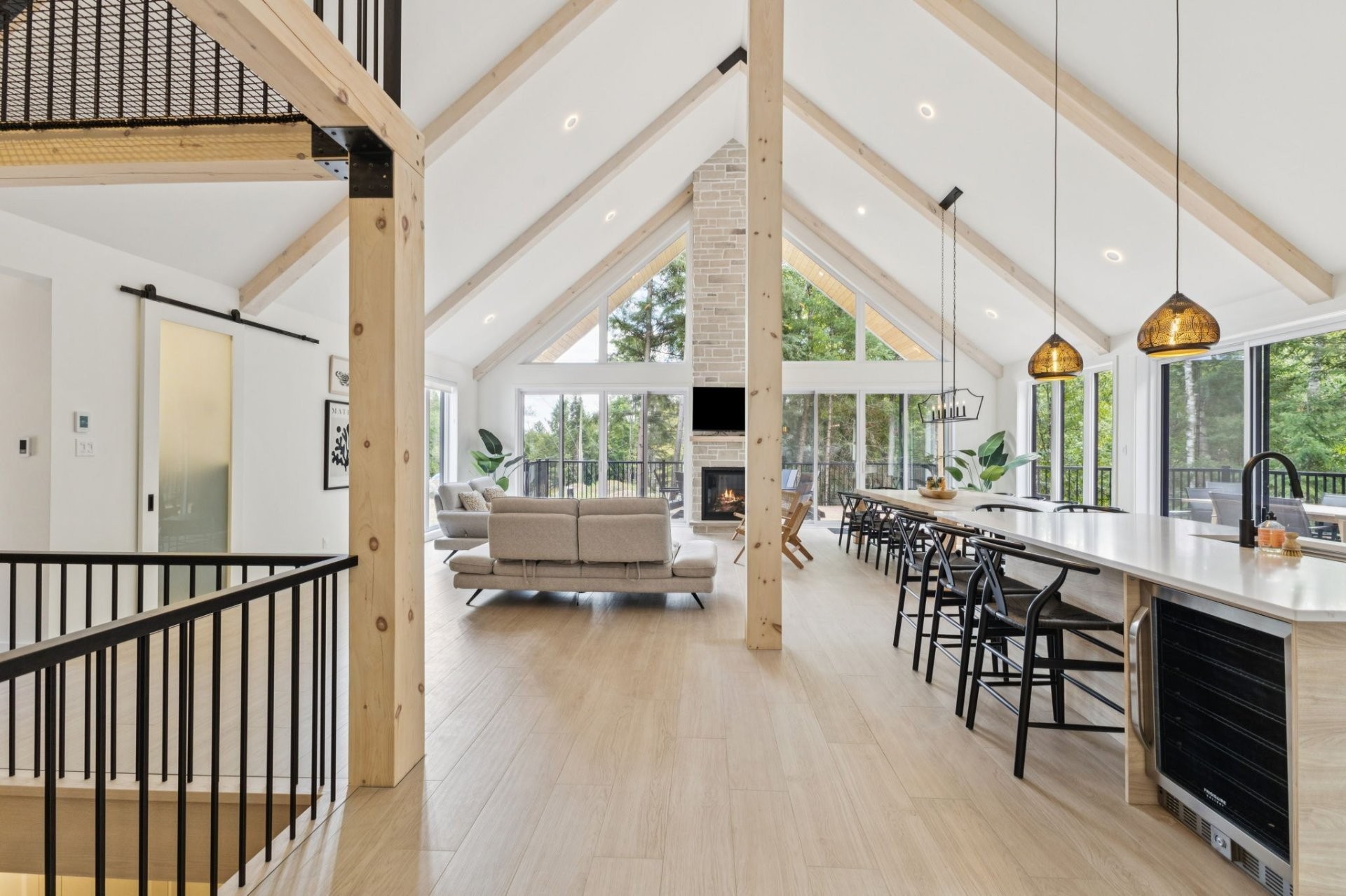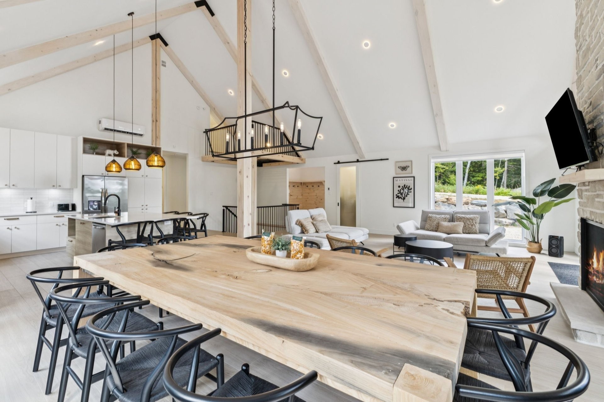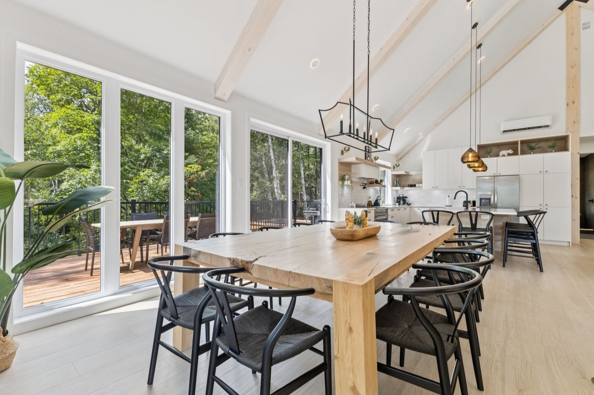 LOCATION COURT TERME AUTORISÉE. Chalet de luxe à construire offrant 5 chambres, 4 salles de bain et 1 salle d'eau, situé à environ 20 minutes de Mont-Tremblant dans le Domaine du Lac Lajeunesse. Architecture contemporaine, plafond cathédrale impressionnant, matériaux haut de gamme et planchers chauffants. Fenestration abondante et vaste terrasse avec jacuzzi pour profiter de la nature environnante. Accès au lac et environnement boisé recherché. Propriété idéale comme résidence secondaire ou investissement locatif dans un secteur touristique prisé.