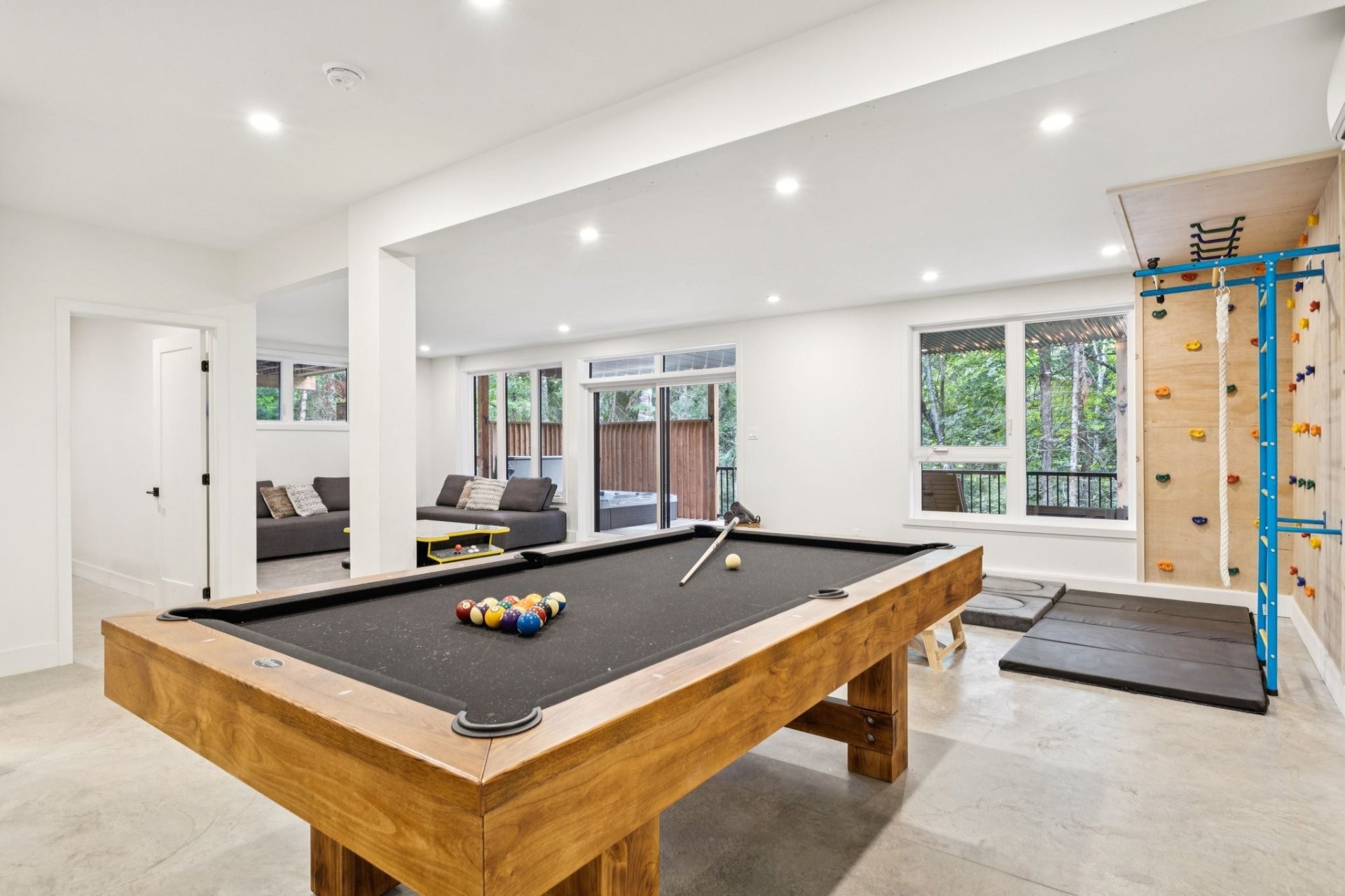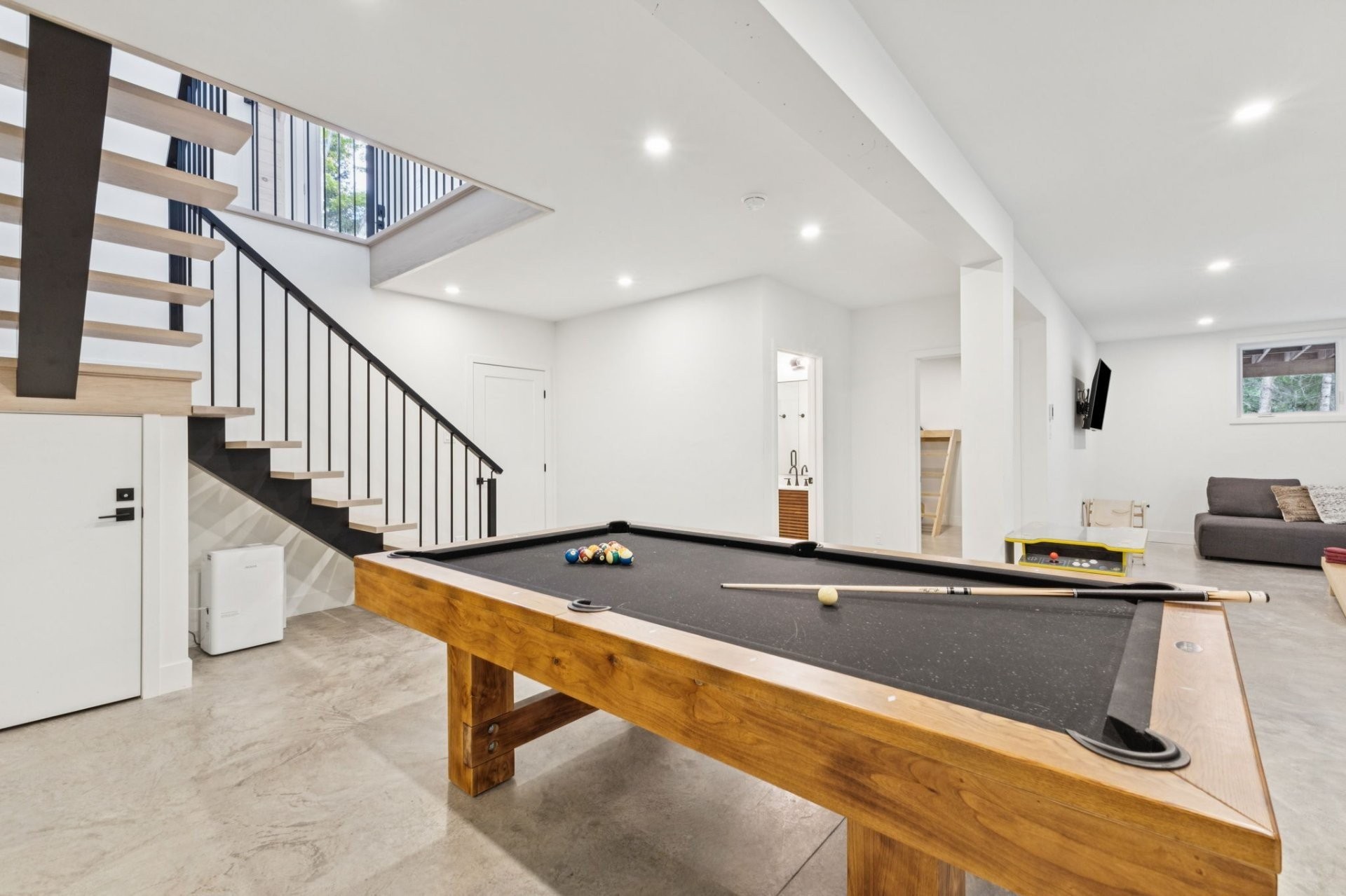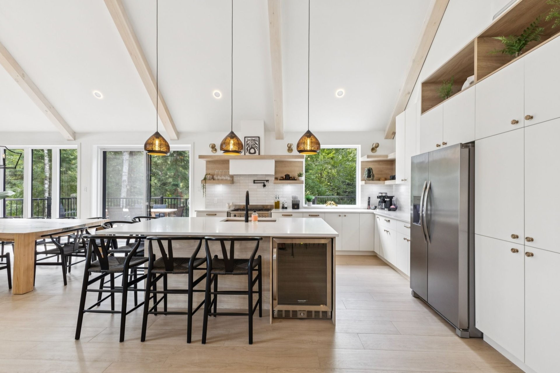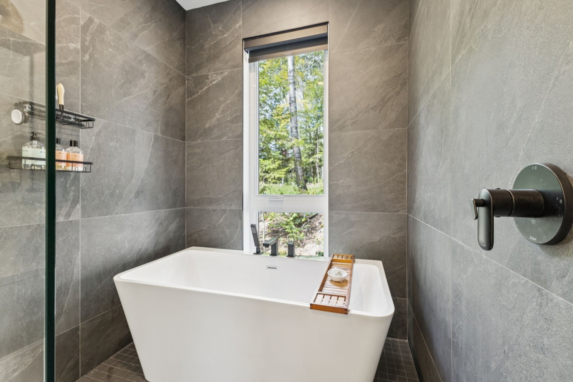 LOCATION COURT TERME AUTORISÉE. Chalet de luxe à construire offrant 5 chambres, 4 salles de bain et 1 salle d'eau, situé à environ 20 minutes de Mont-Tremblant dans le Domaine du Lac Lajeunesse. Architecture contemporaine, plafond cathédrale impressionnant, matériaux haut de gamme et planchers chauffants. Fenestration abondante et vaste terrasse avec jacuzzi pour profiter de la nature environnante. Accès au lac et environnement boisé recherché. Propriété idéale comme résidence secondaire ou investissement locatif dans un secteur touristique prisé.