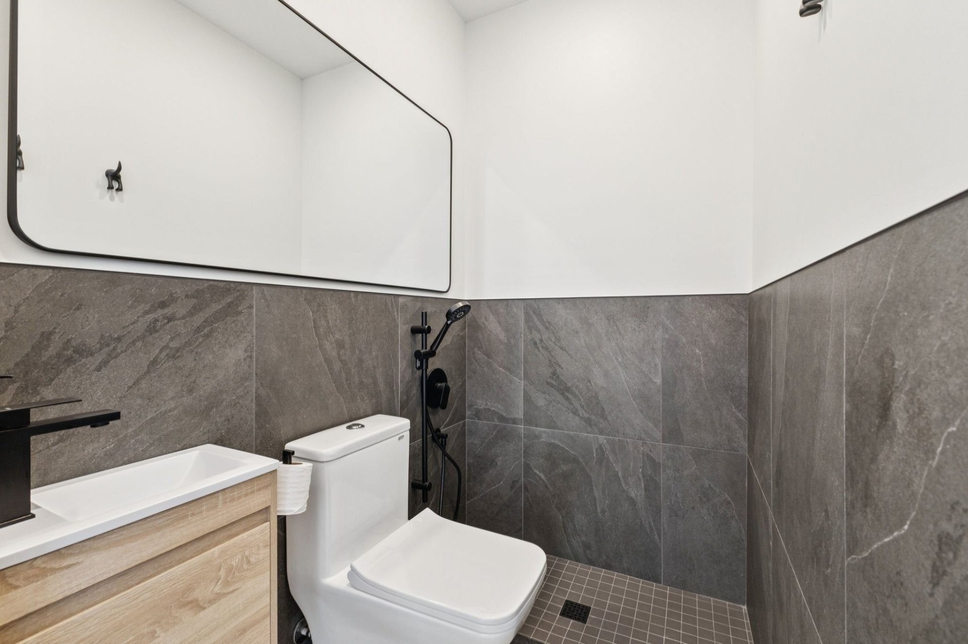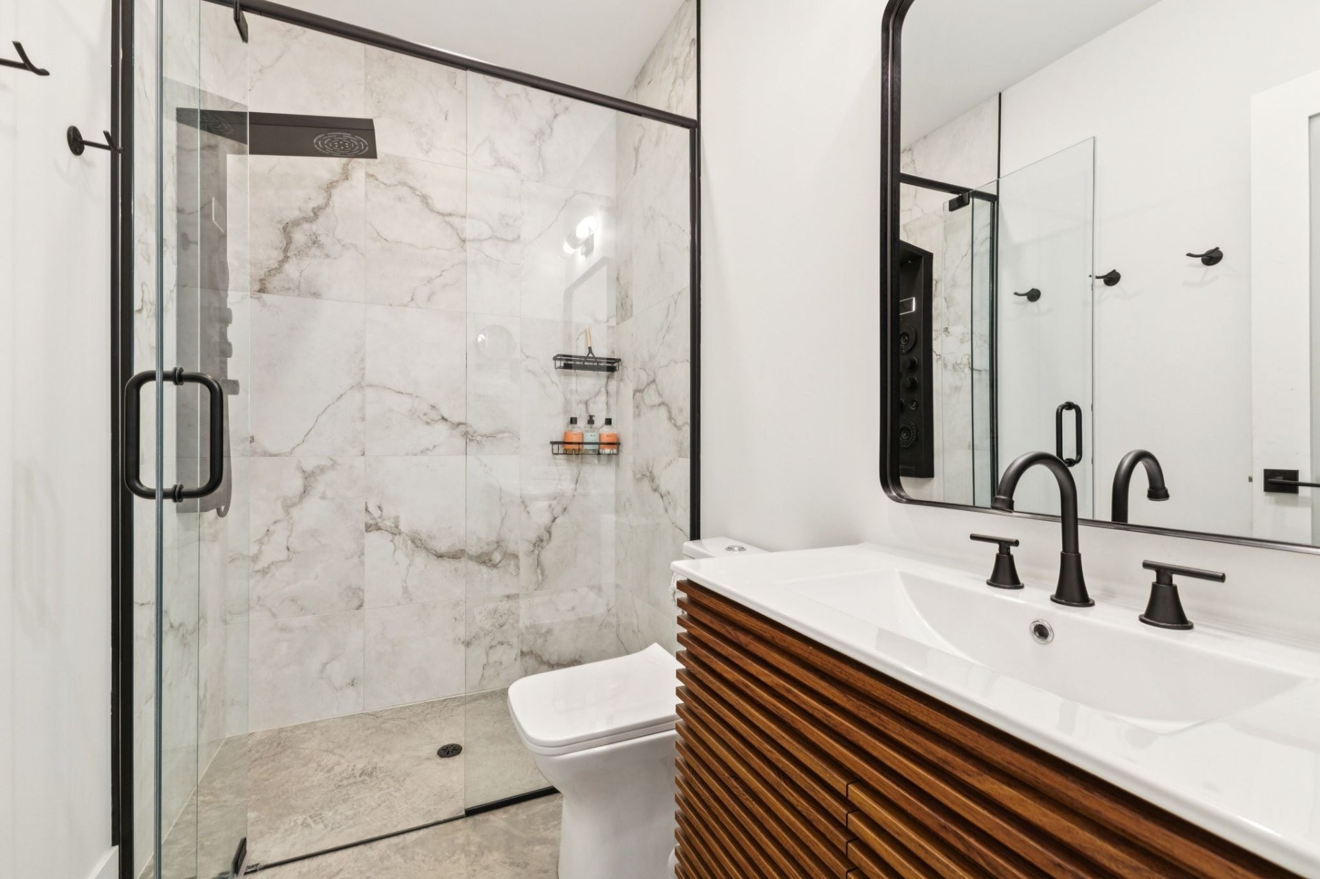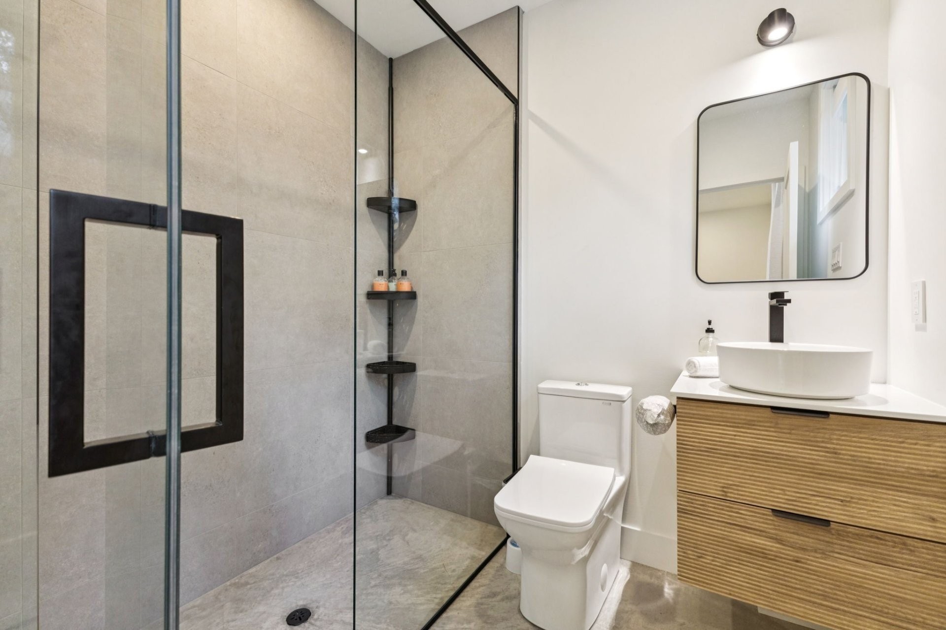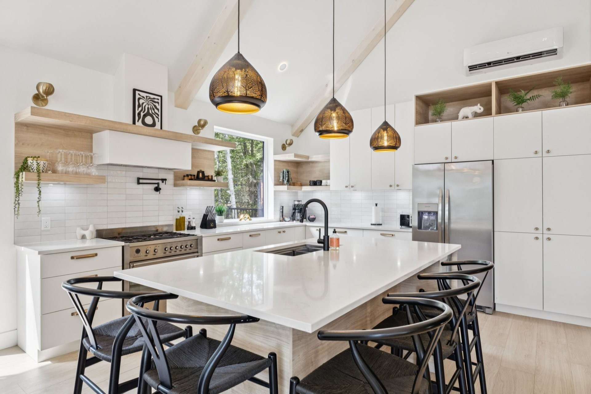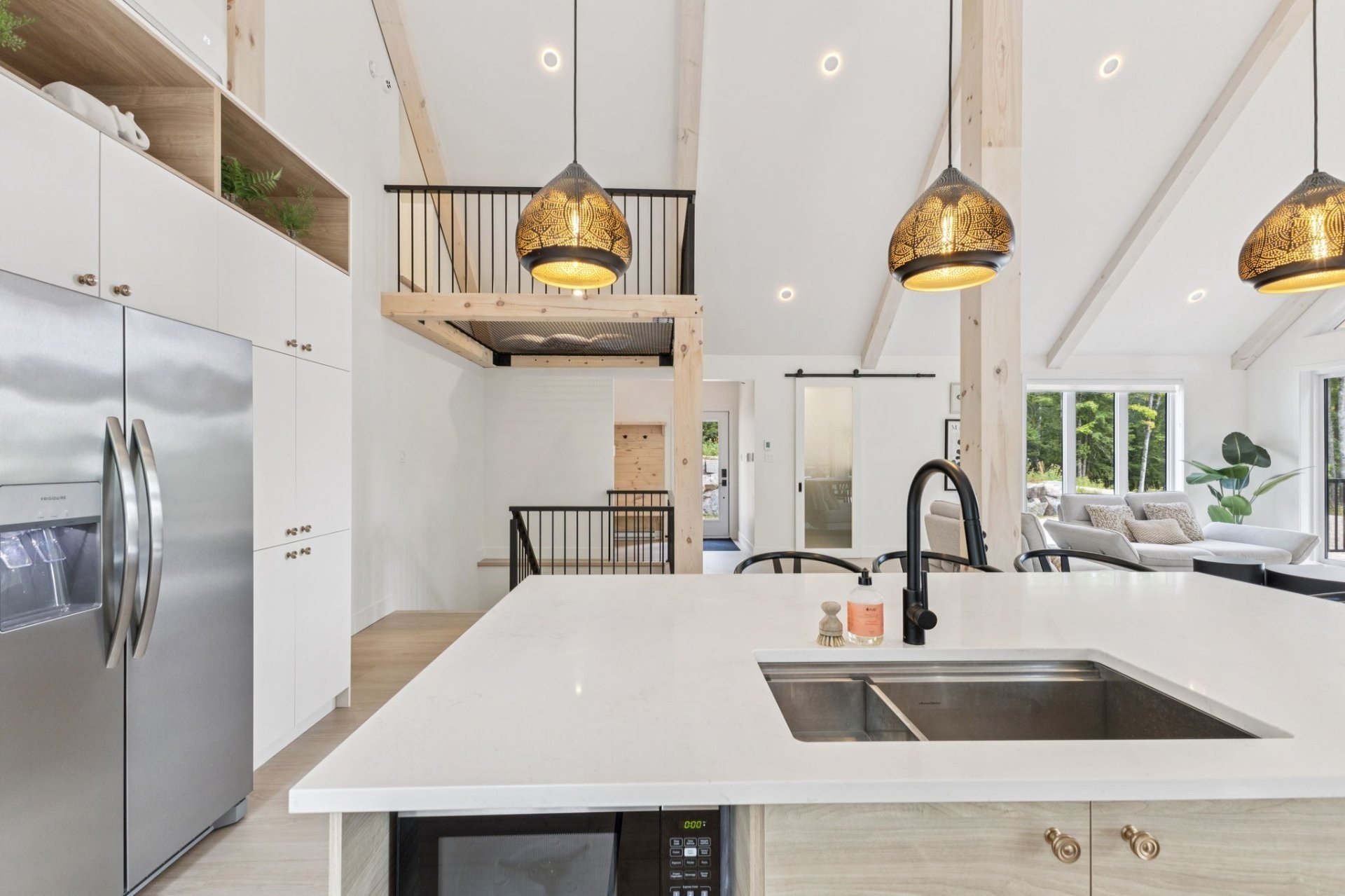 * Comptoirs de quartz et planchers de béton chauffants (au rez-de-jardins)