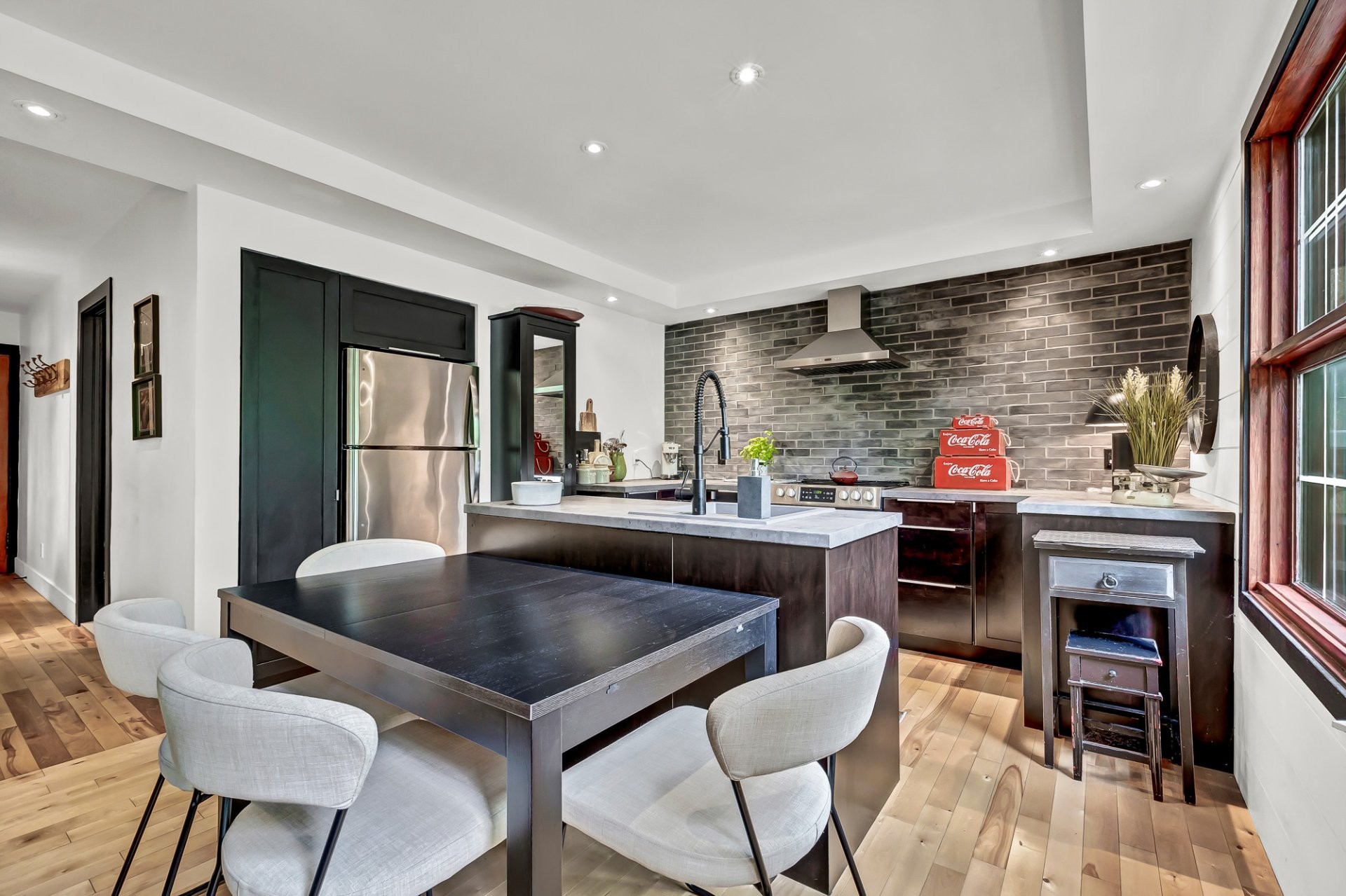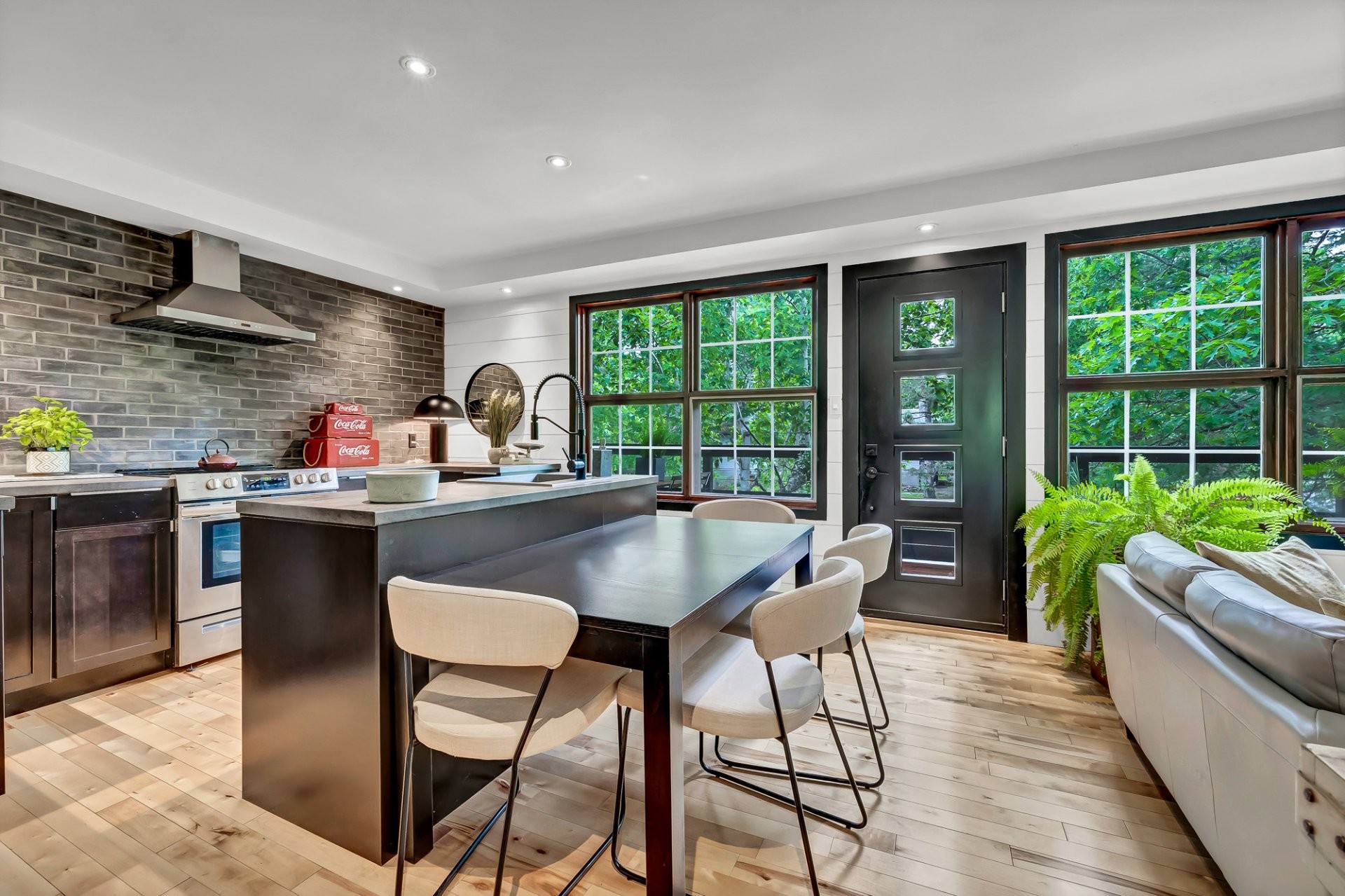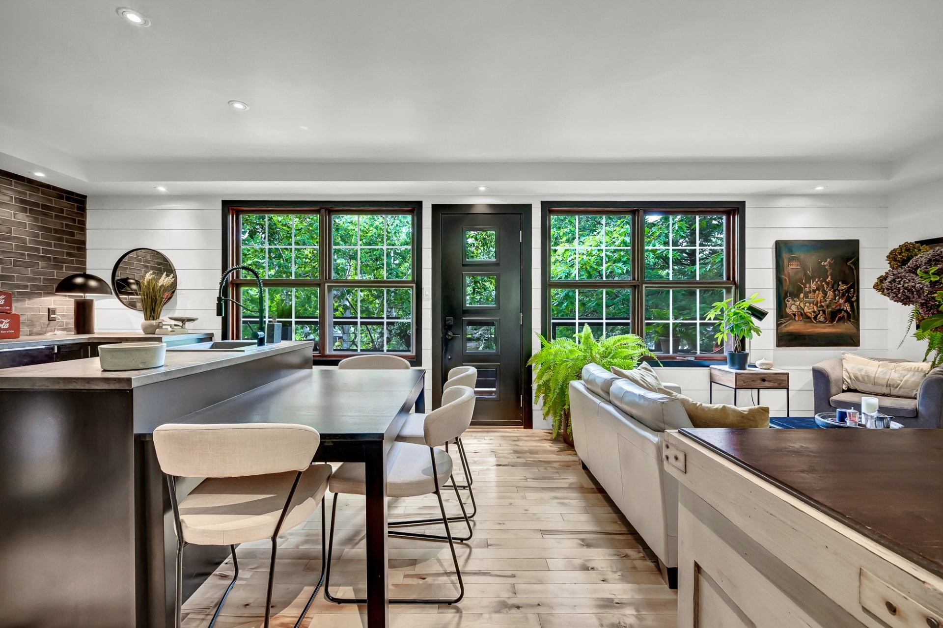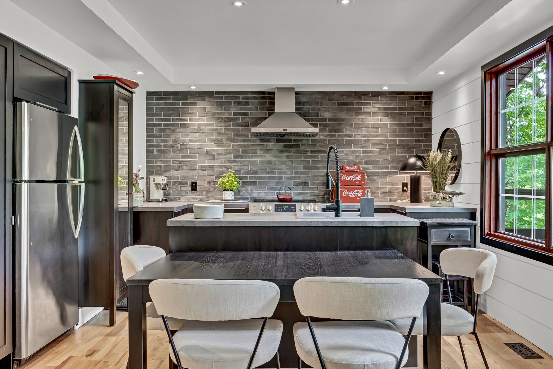 Le deuxième étage accueille également le logement intergénérationnel, qui propose une cuisine au caractère unique avec mur de pierre et îlot central, ouverte sur la salle à manger et le salon. Ce logement comprend aussi une chambre à coucher ainsi qu'une salle de bain complète, offrant autonomie et confort.