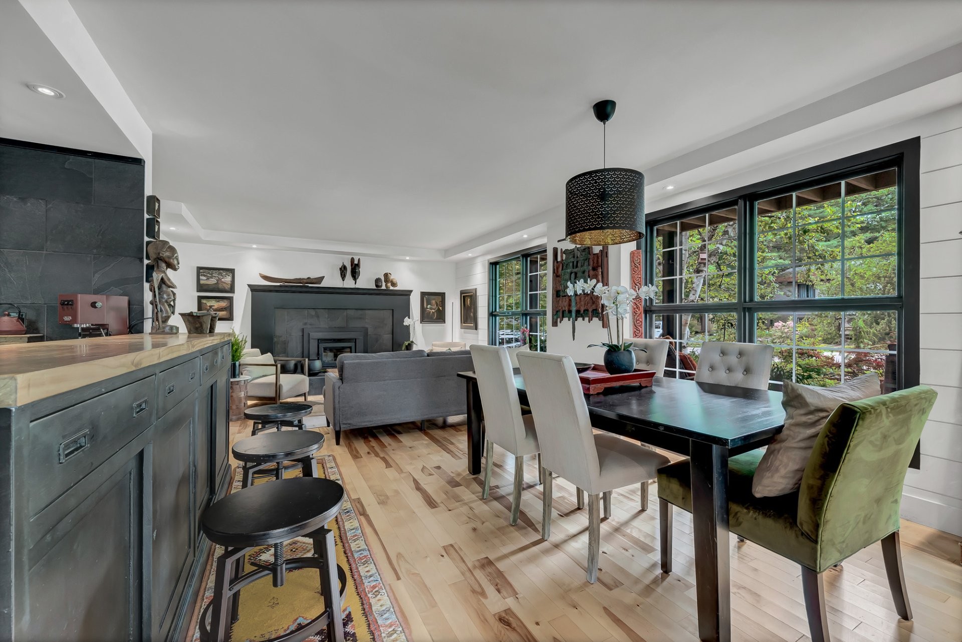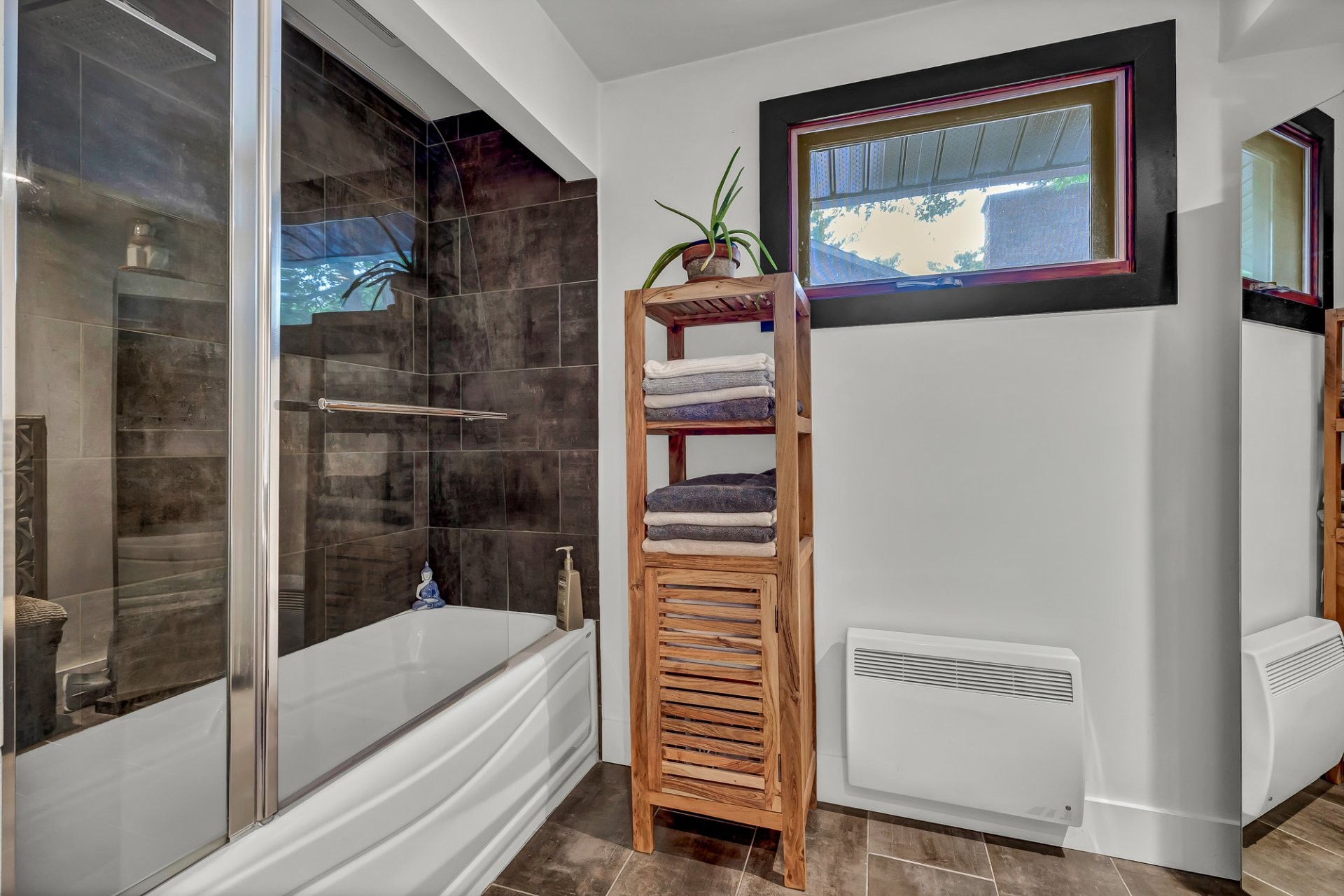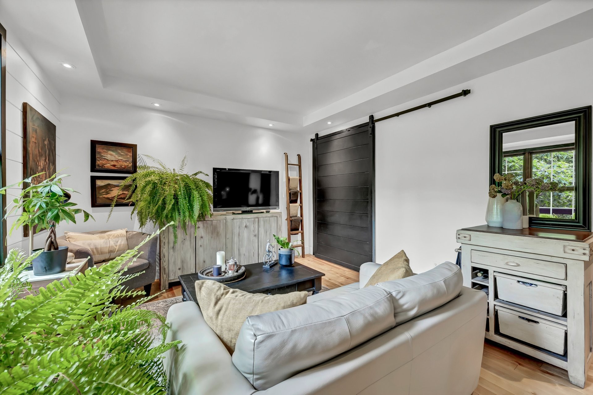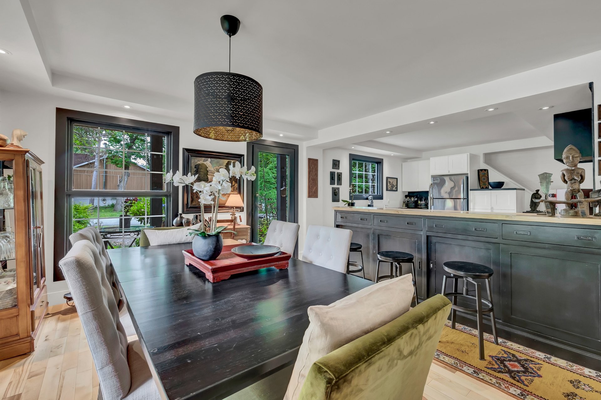 Le deuxième étage accueille également le logement intergénérationnel, qui propose une cuisine au caractère unique avec mur de pierre et îlot central, ouverte sur la salle à manger et le salon. Ce logement comprend aussi une chambre à coucher ainsi qu'une salle de bain complète, offrant autonomie et confort.