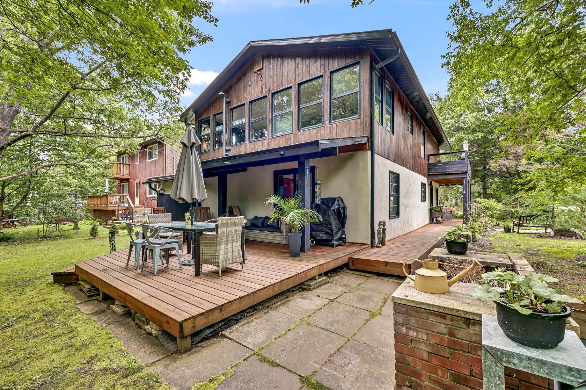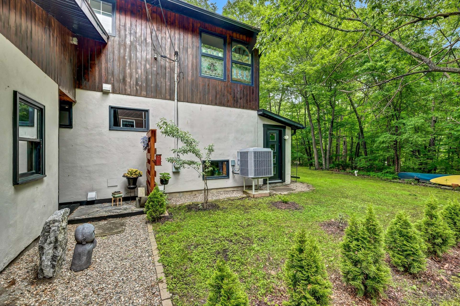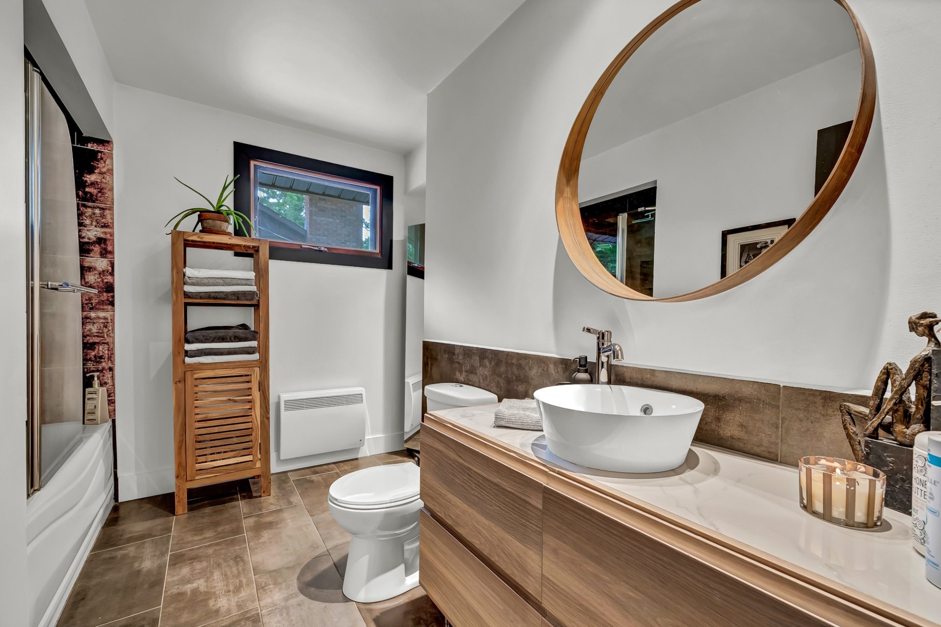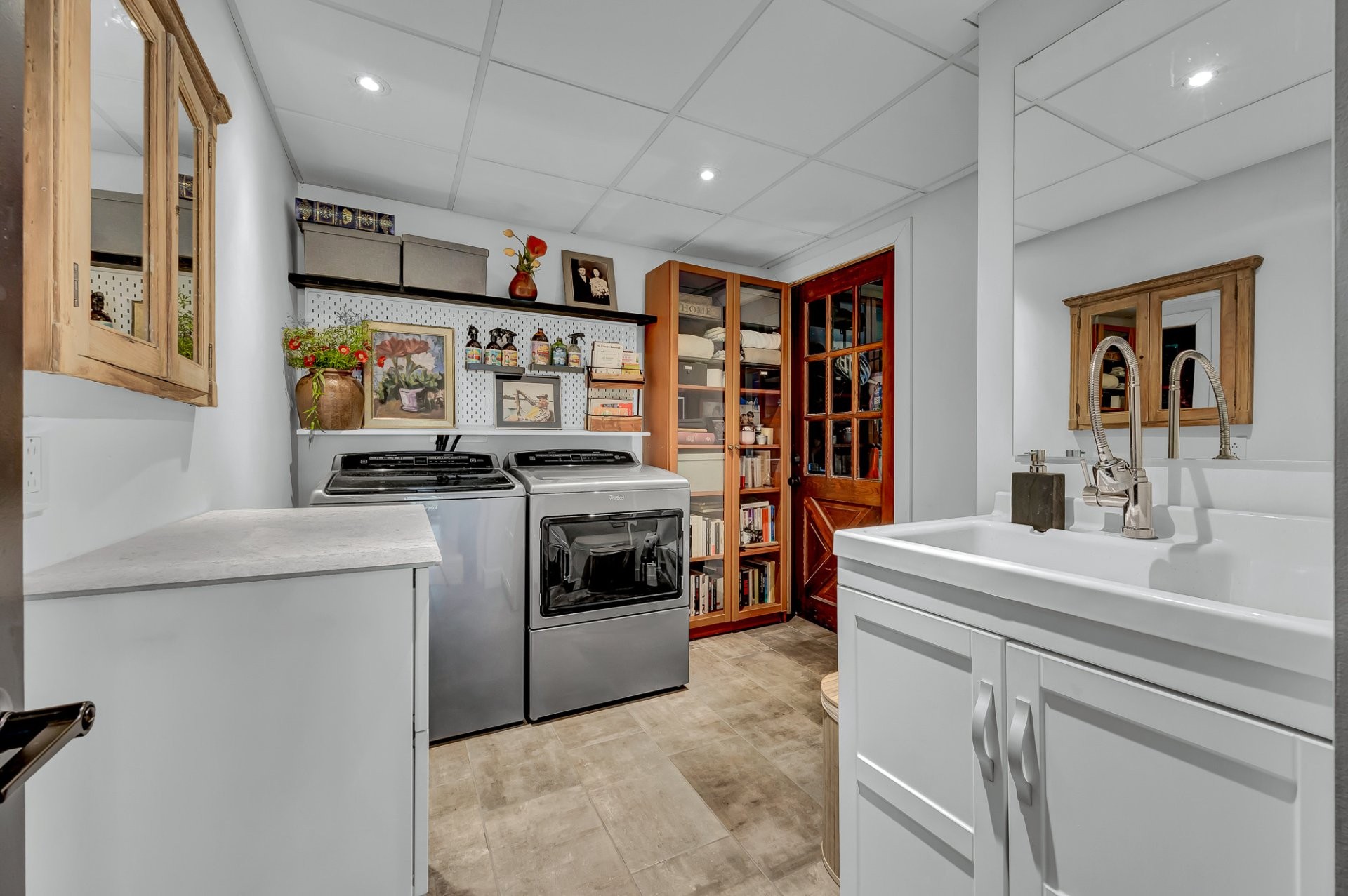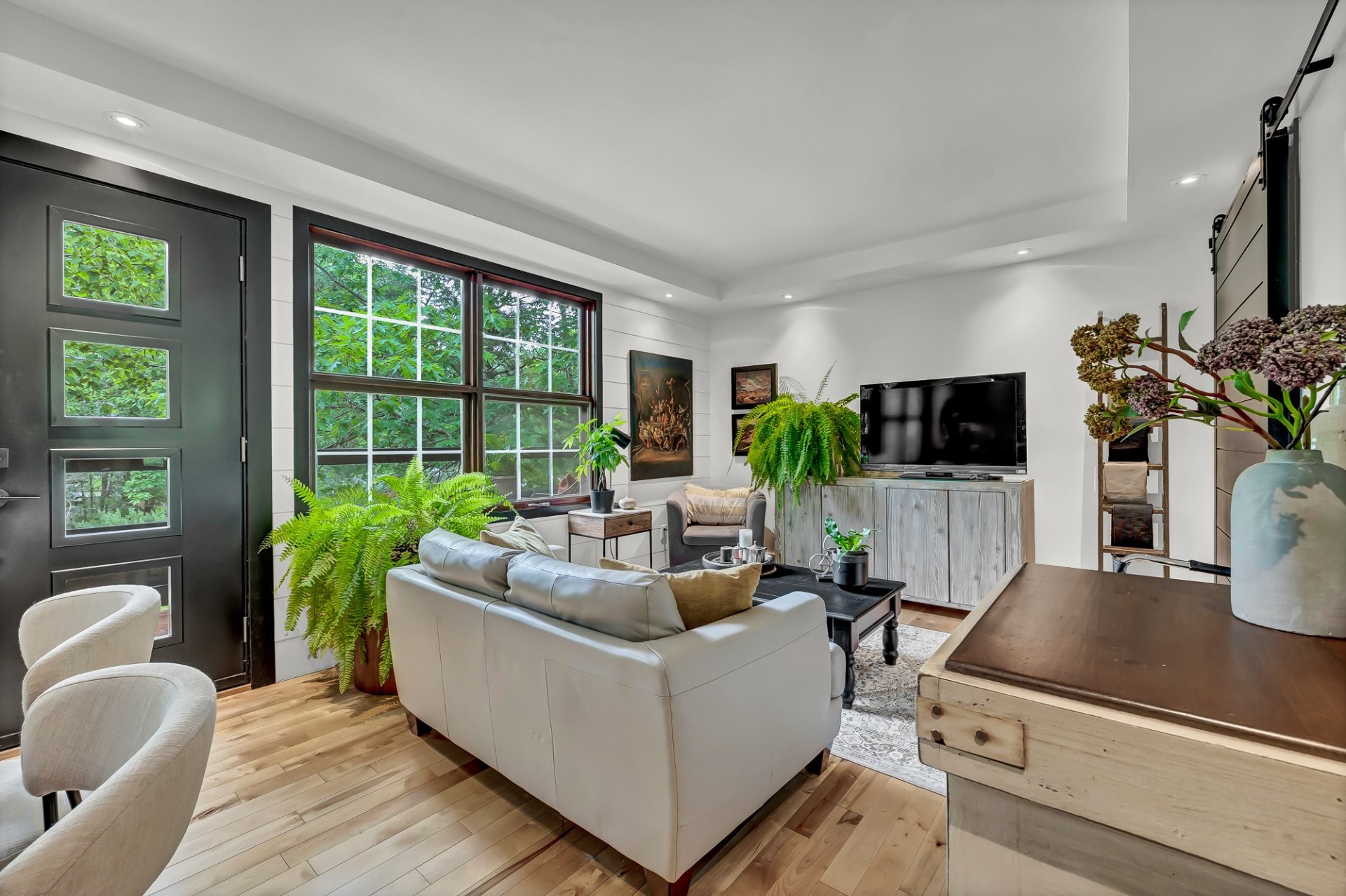 À l'extérieur, la cour arrière est aménagée avec une grande terrasse pouvant accueillir un espace repas, de vastes espaces verts et un accès à de grands balcons à l'étage. Un véritable havre de paix où nature, confort et polyvalence se rencontrent.