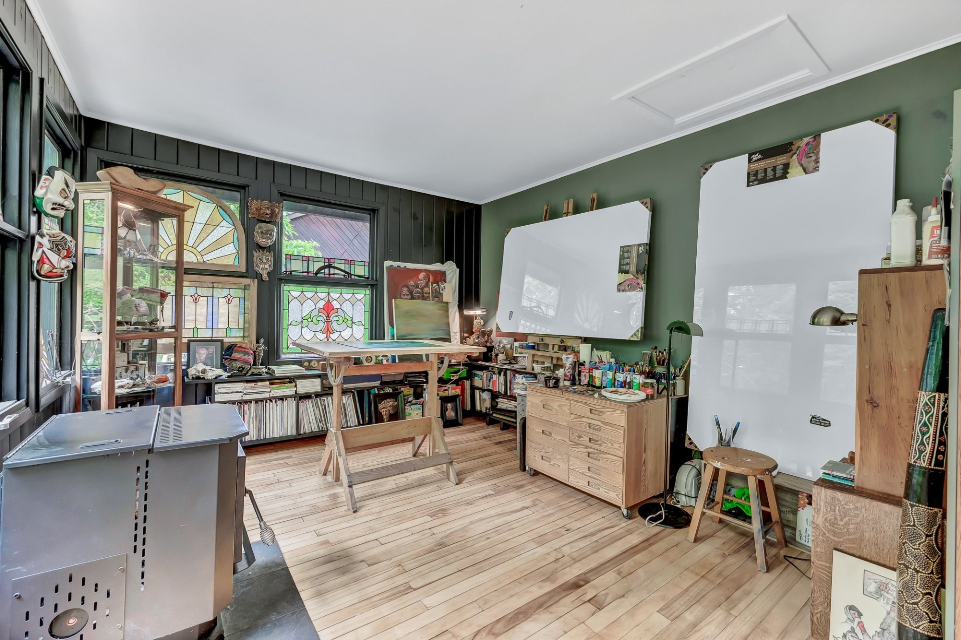 Une portion du deuxième niveau fait partie du logement principal et offre un vaste espace lumineux et polyvalent, idéal comme salon supplémentaire, bureau à domicile ou atelier créatif selon les besoins.
