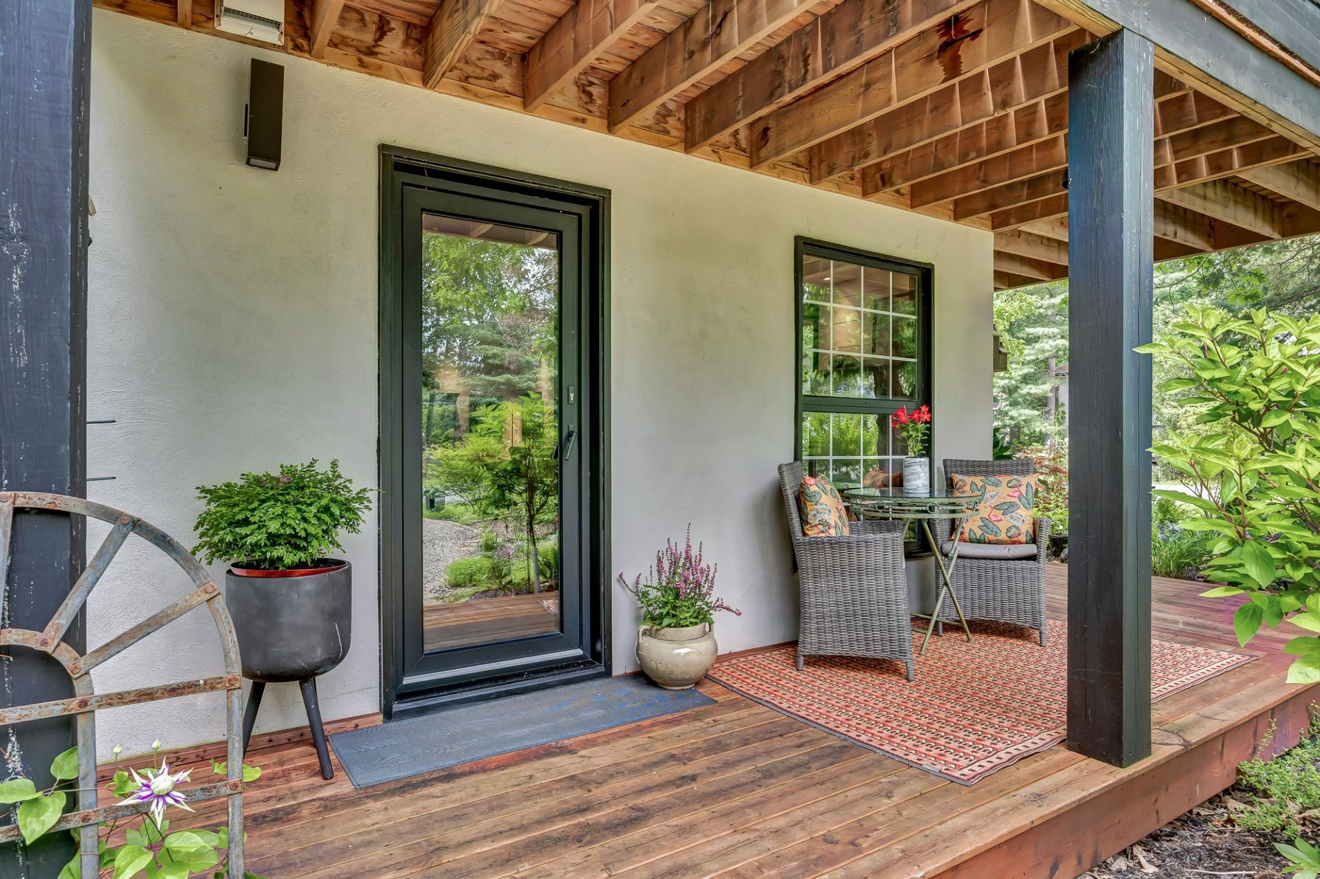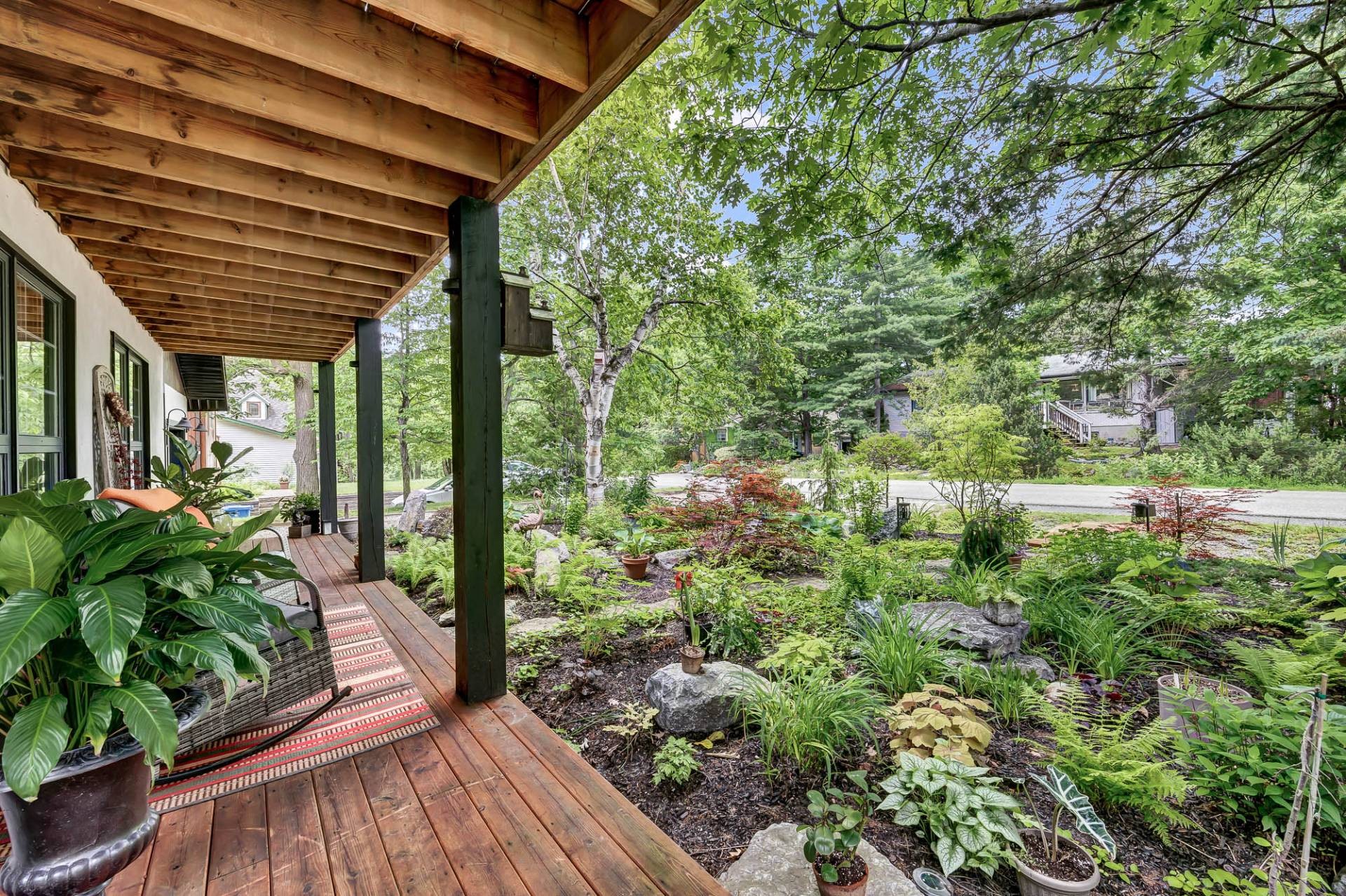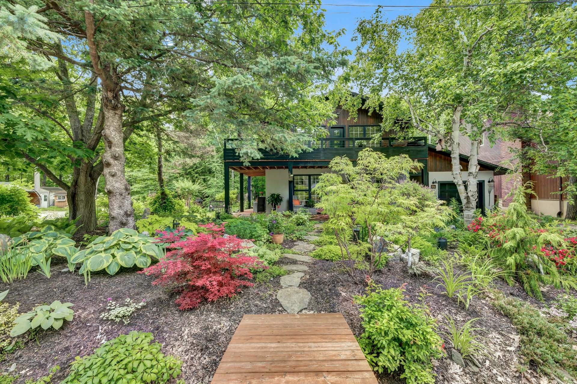 Maison intergénérationnelle avec logement à l'étage située sur un coin de rue, avec grandes fenêtres tant à l'étage qu'au rez-de-chaussée. Magnifiques galeries en façade et sur le côté permettant aux résidants de profiter pleinement de la nature et du jardin. Le jardin aménagé est de toute beauté et facile d'entretien puisque l'ensemble est composé de vivaces.