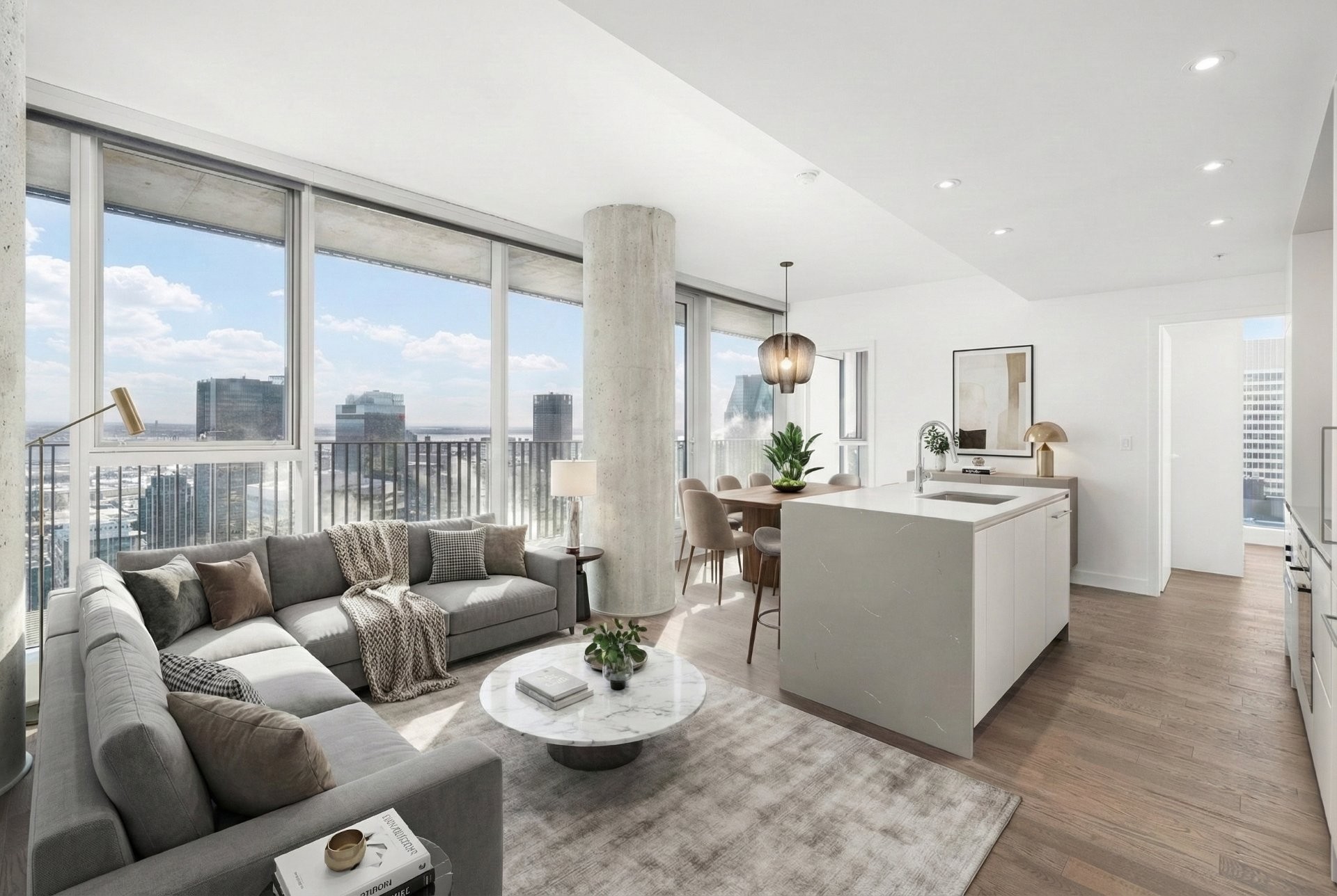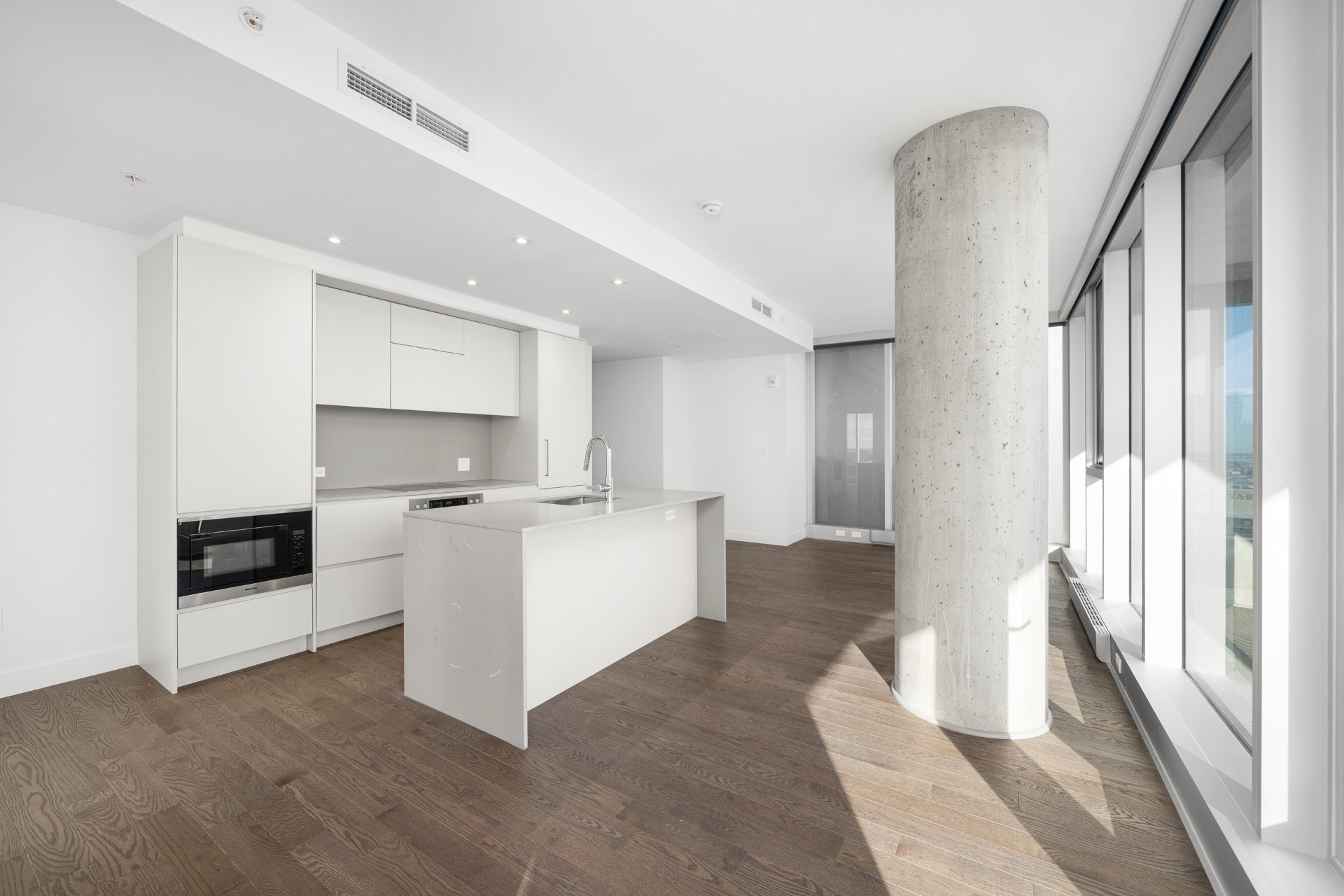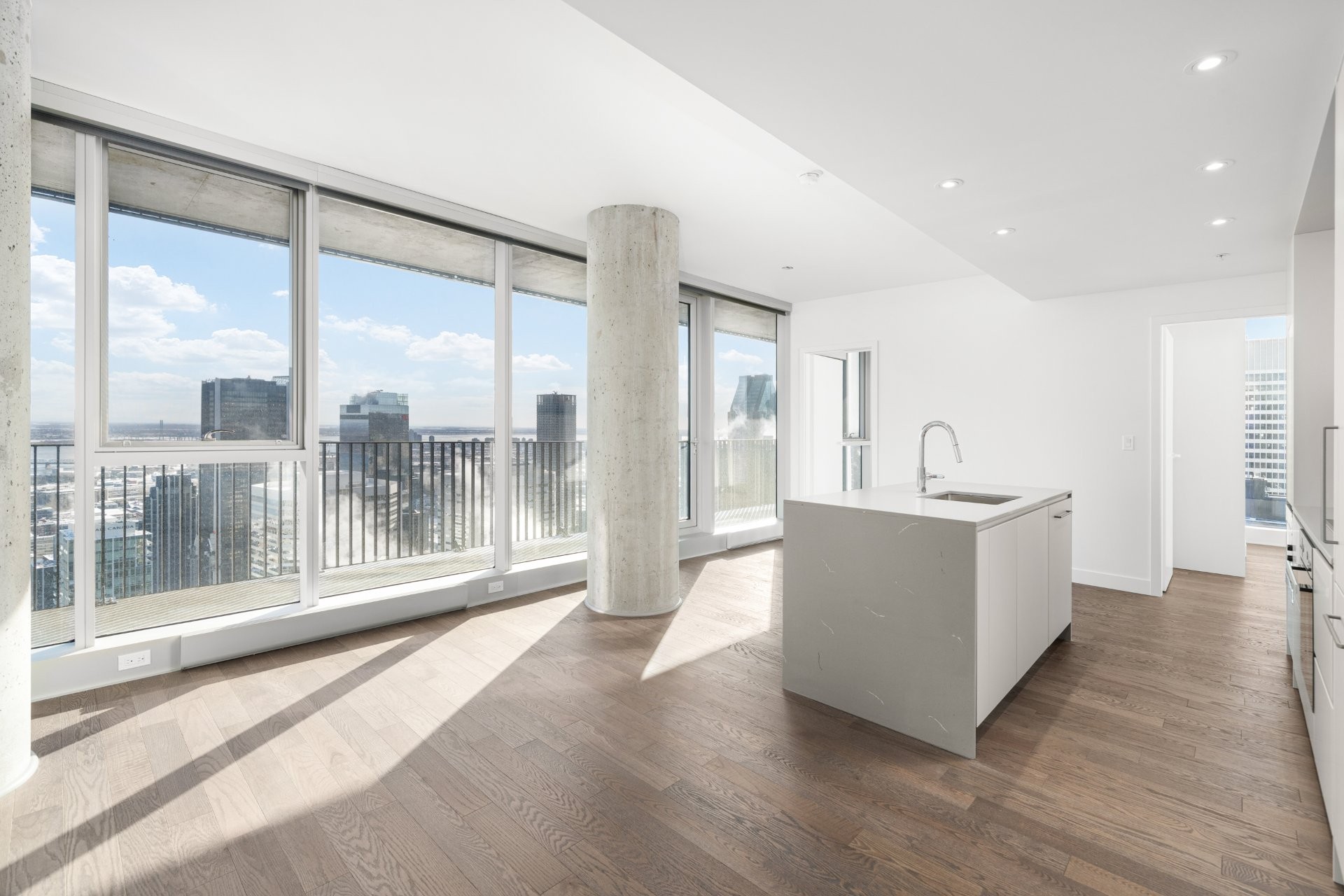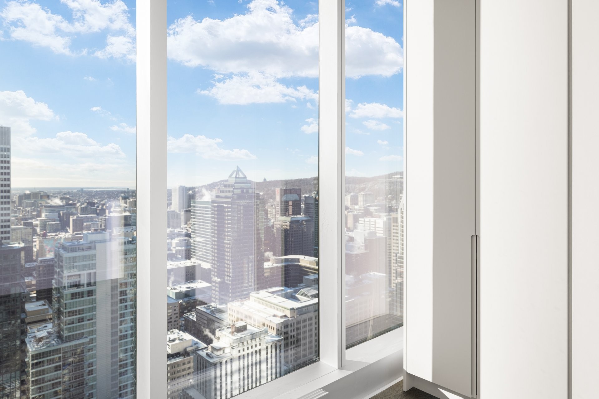 Conçue par la célèbre architecte Anik Shooner, associée senior chez MSDL Architectes, ce condo incarne l'élégance moderne avec de hauts plafonds et des fenêtres du sol au plafond qui offrent des vues panoramiques à couper le souffle sur la ville. La cuisine, moderne et élégante, est équipée d'appareils Miele et de comptoir en quartz.