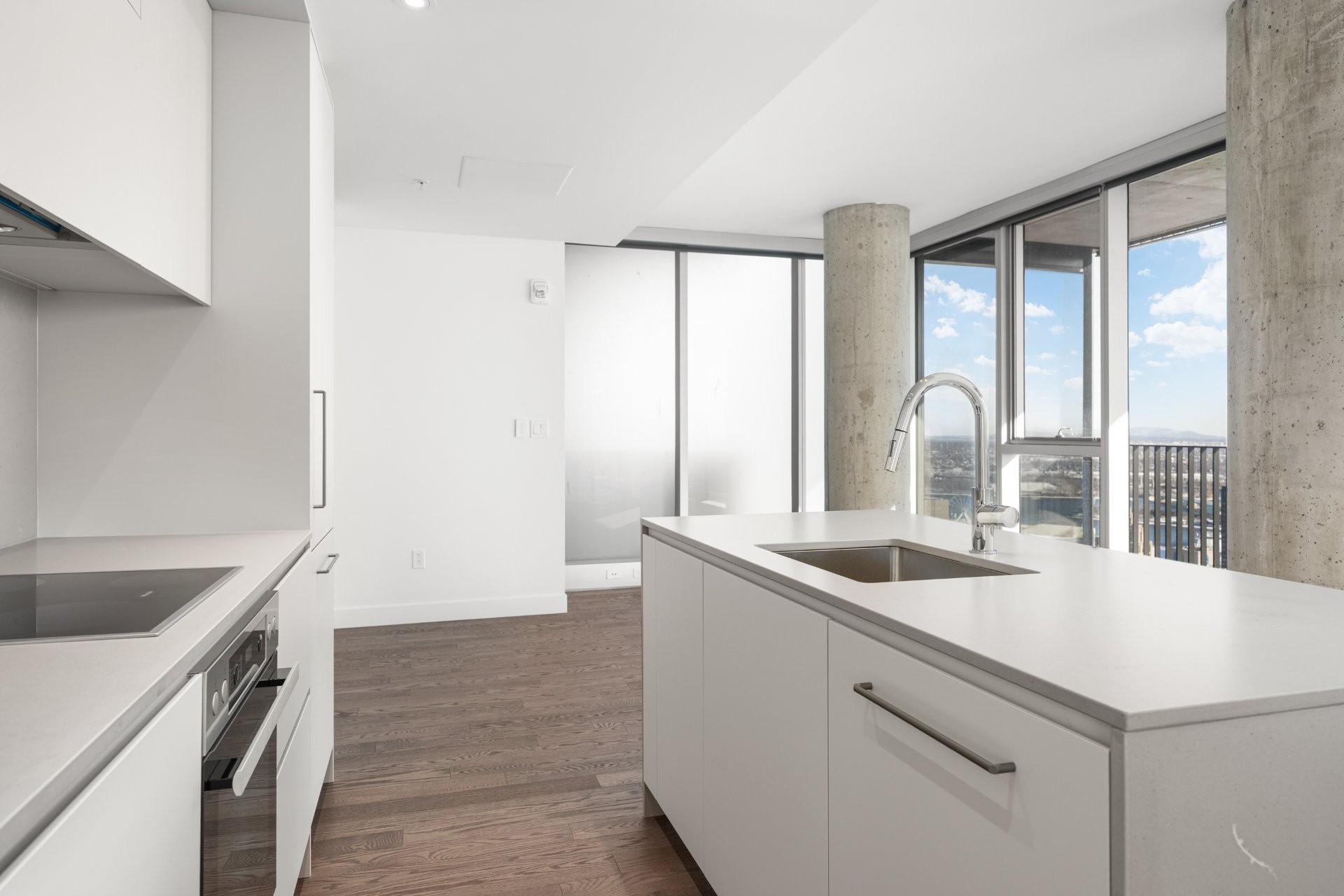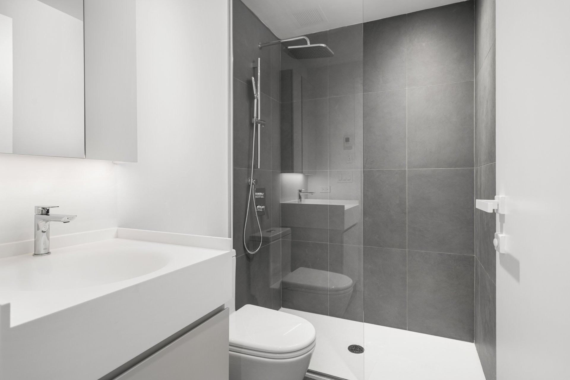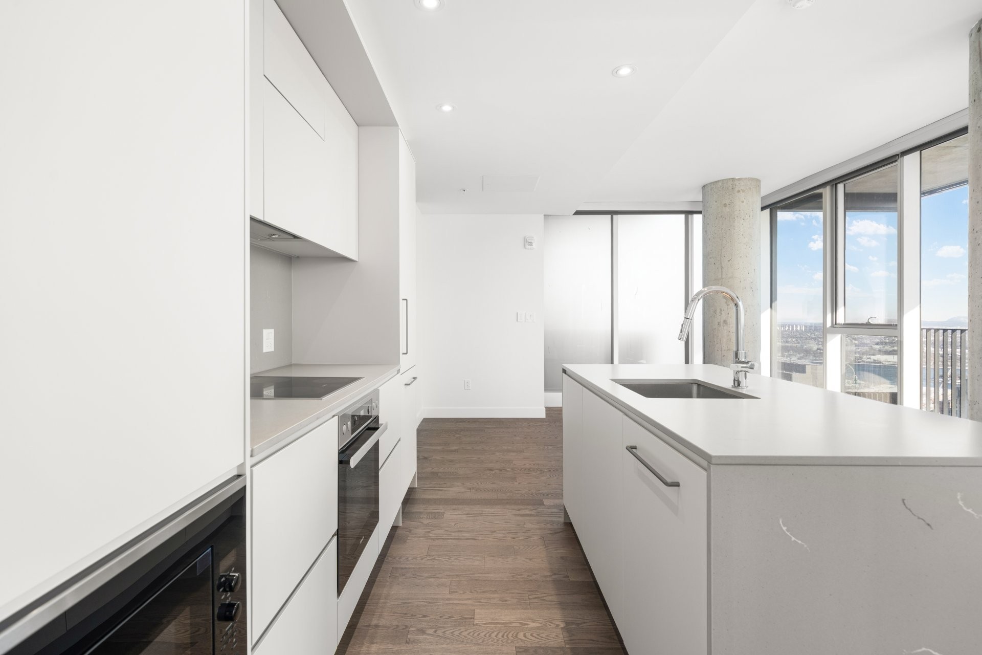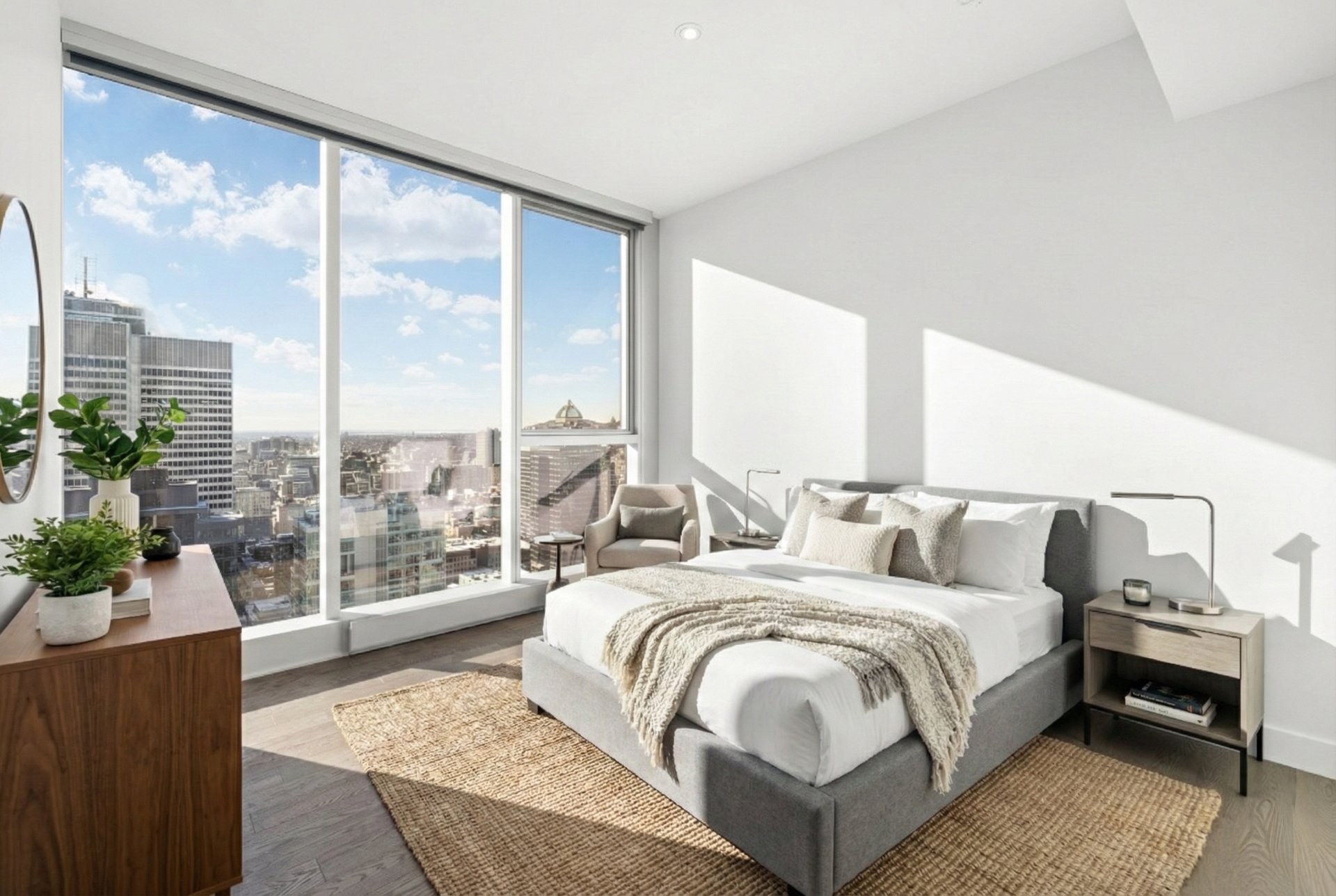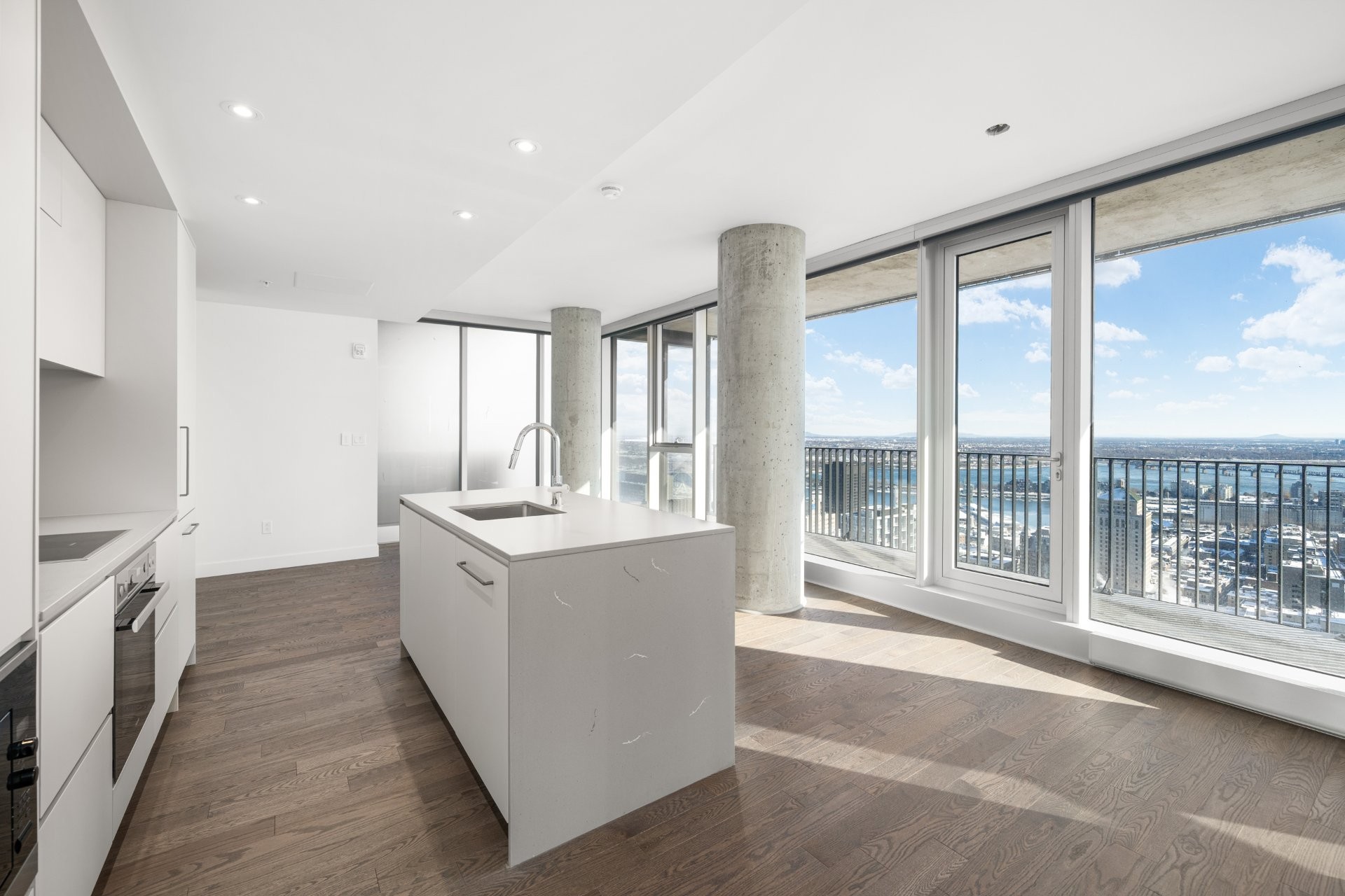 Conçue par la célèbre architecte Anik Shooner, associée senior chez MSDL Architectes, ce condo incarne l'élégance moderne avec de hauts plafonds et des fenêtres du sol au plafond qui offrent des vues panoramiques à couper le souffle sur la ville. La cuisine, moderne et élégante, est équipée d'appareils Miele et de comptoir en quartz.