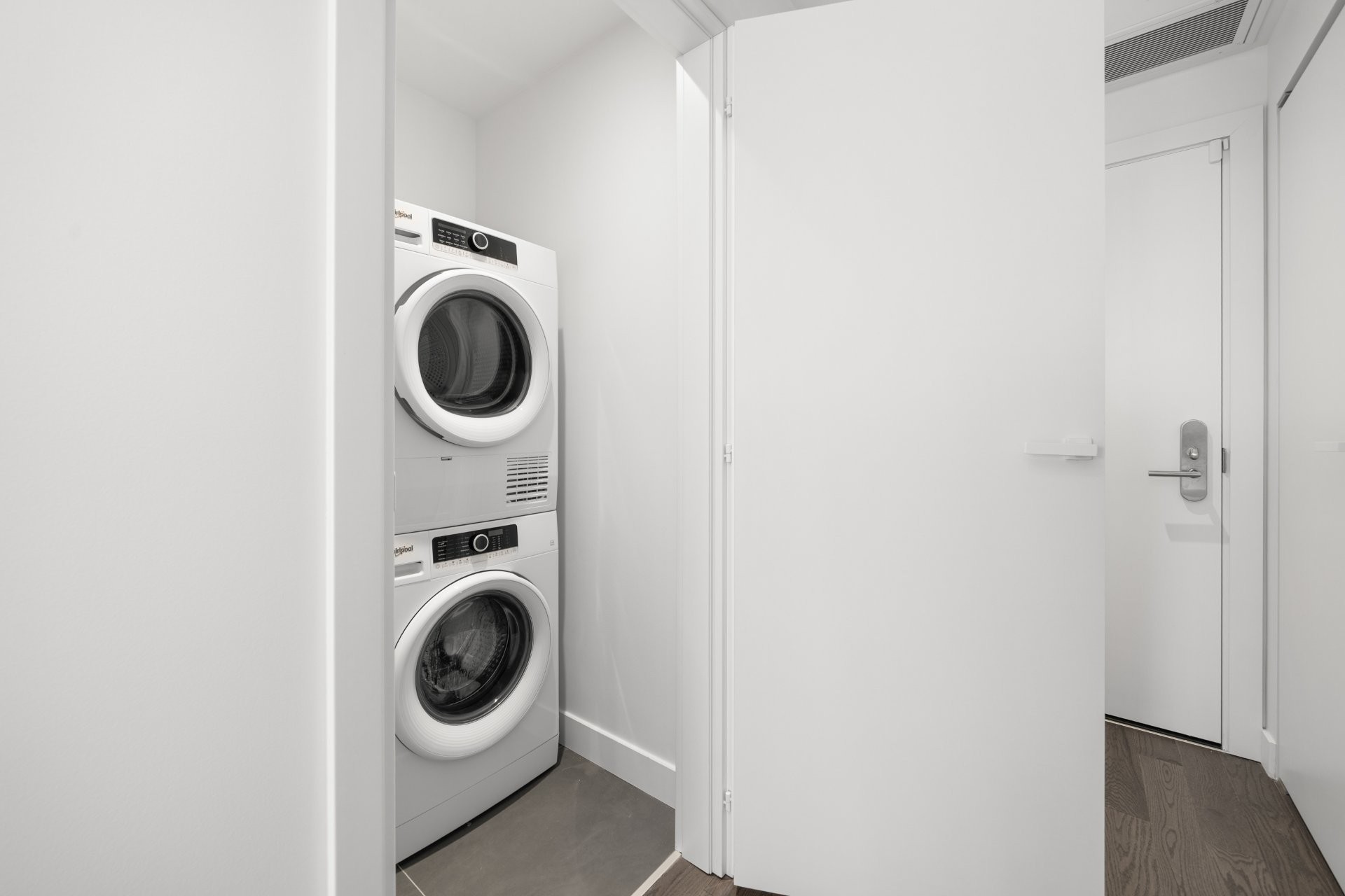Réfrigérateur, four, micro-ondes, lave-vaisselle, laveuse et sécheuse, eau chaude, couvre-fenêtres, entrée électrique par application ou porte à clé