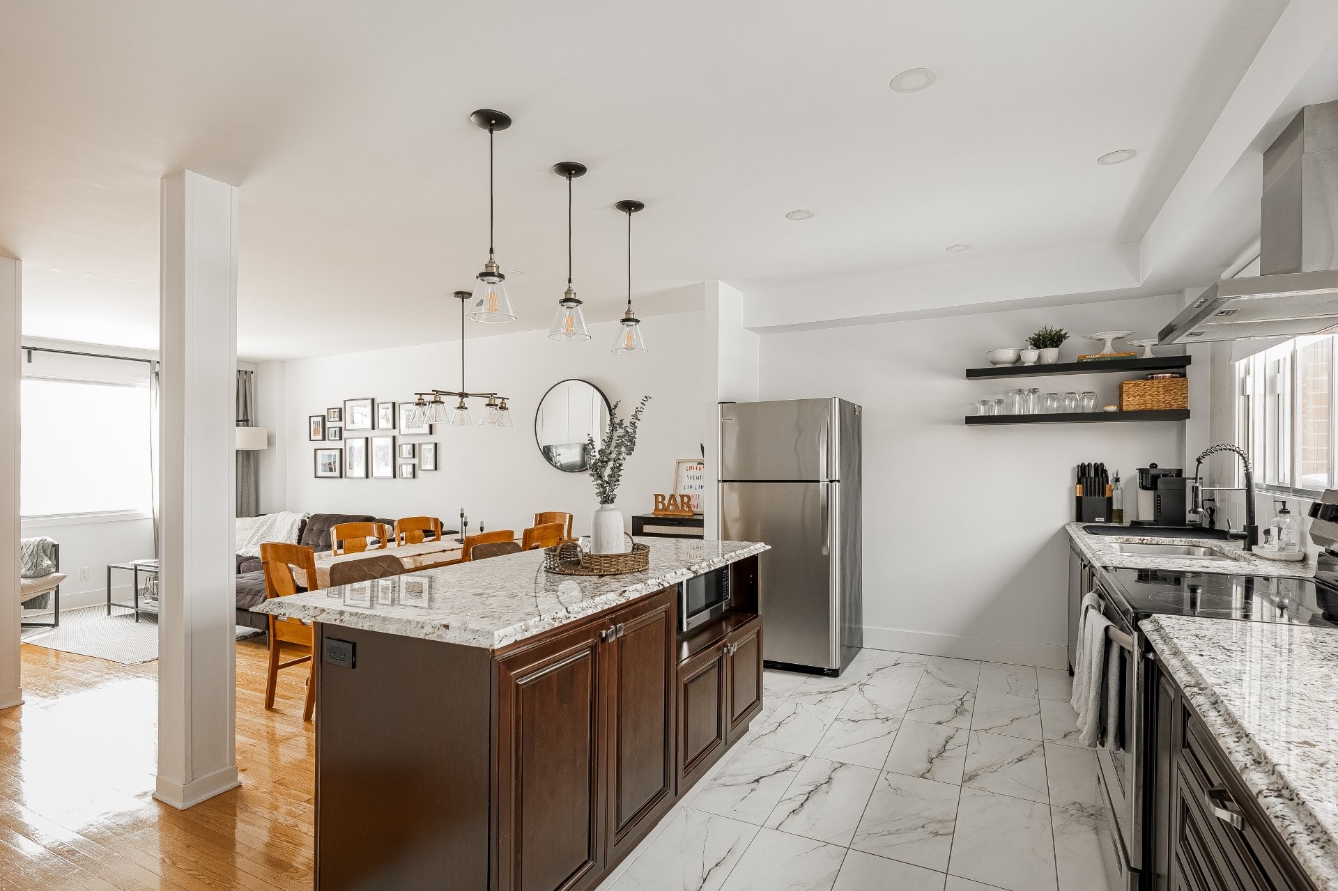 Le rez-de-chaussée est un espace familial à aire ouverte.