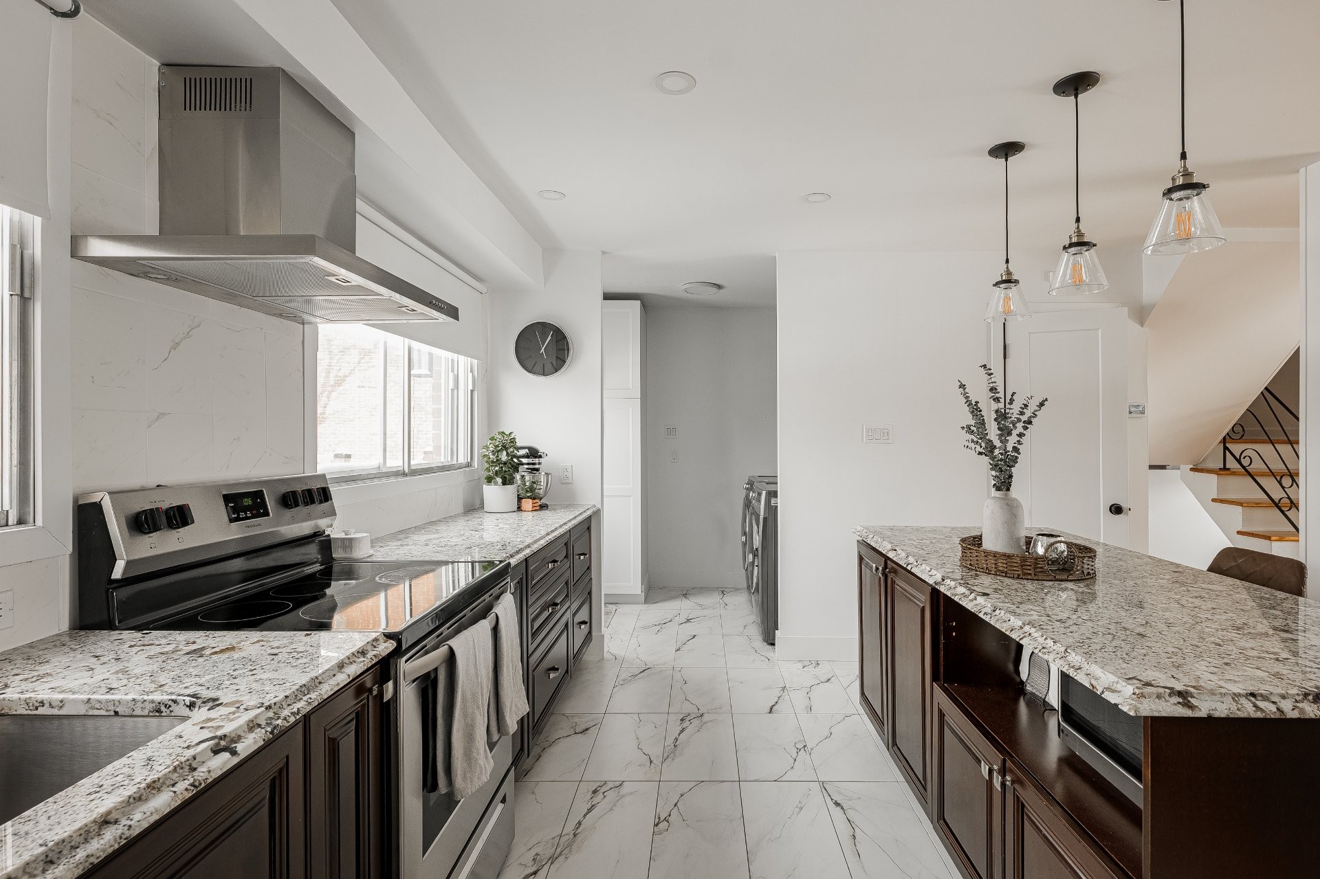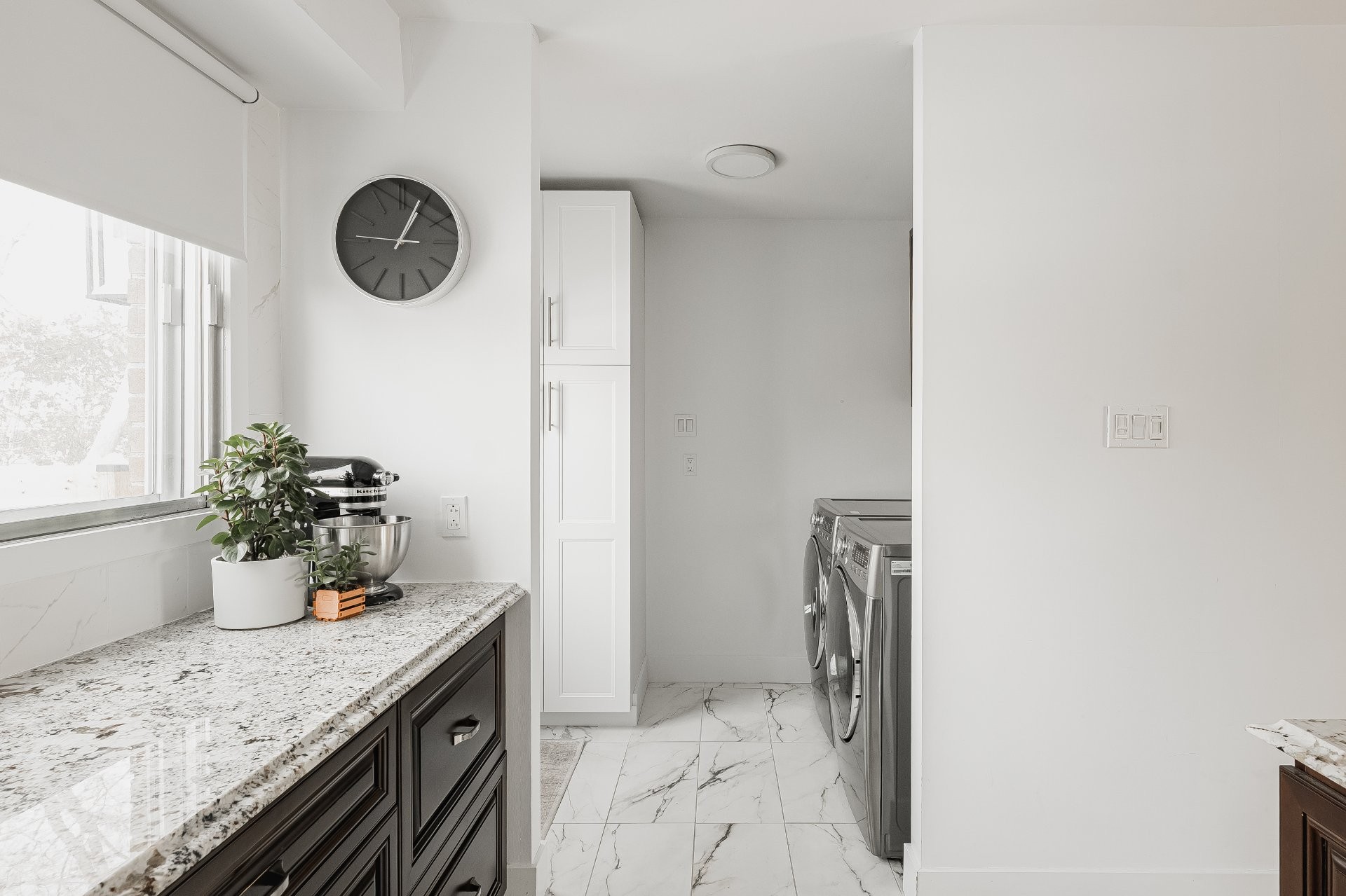 Ouvert sur la buanderie et la porte sur la nouvelle terrasse et cour arrière.