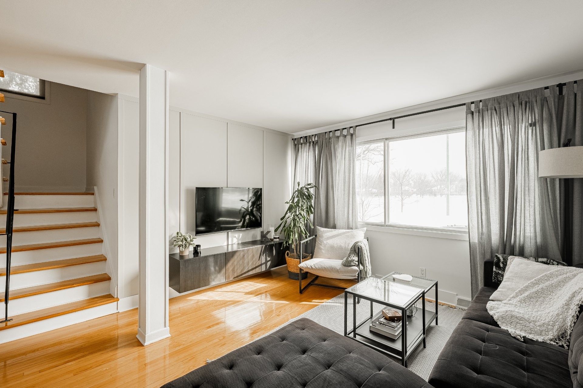 Washer and Dryer. Microwave. Bedrooms and living room curtains. Light fixtures (2) -one in the entrance and one in the staircase to bedrooms. 2 TV wall mounts - 1 in the living room and 1 in the bedroom.
