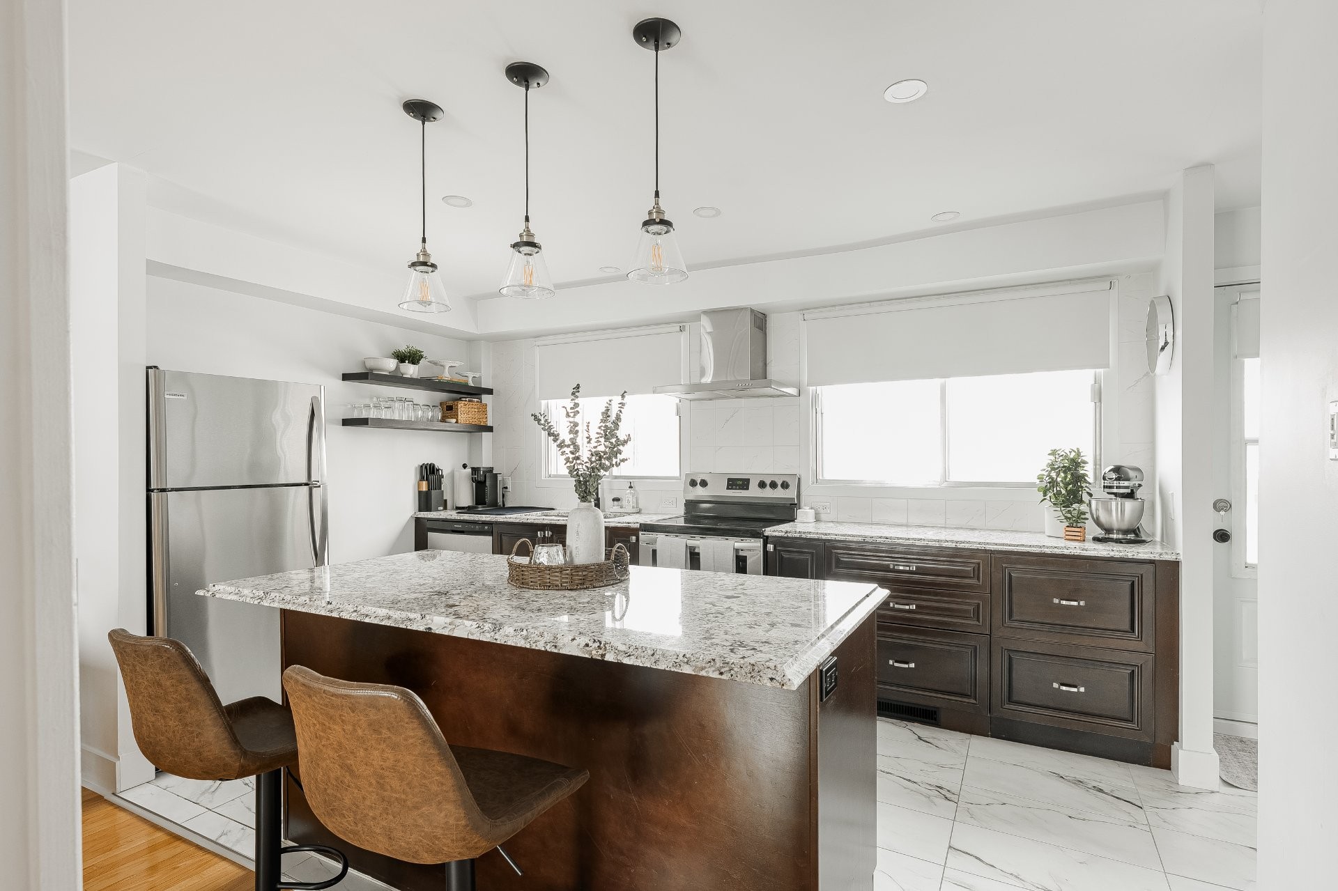 Des comptoirs en granit et des étagères supplémentaires ont été ajoutés.