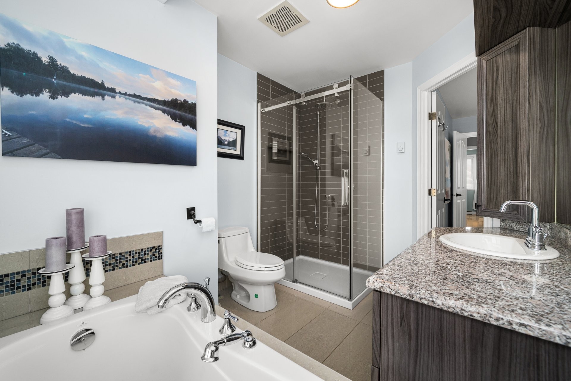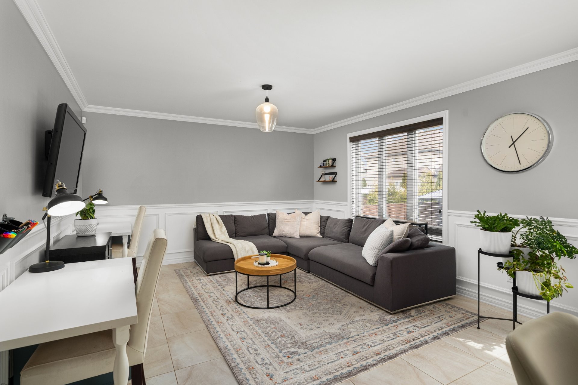La propriété, élégante et clé en main, a été pensée pour répondre aux besoins d'une famille. Lumineuse et spacieuse, elle propose une configuration bien divisée, alliant confort et fonctionnalité. Le rez-de-chaussée comprend deux espaces de vie distincts, parfaits pour le quotidien et la réception, dont un salon chaleureux avec foyer au propane, idéal pour les soirées cocooning.