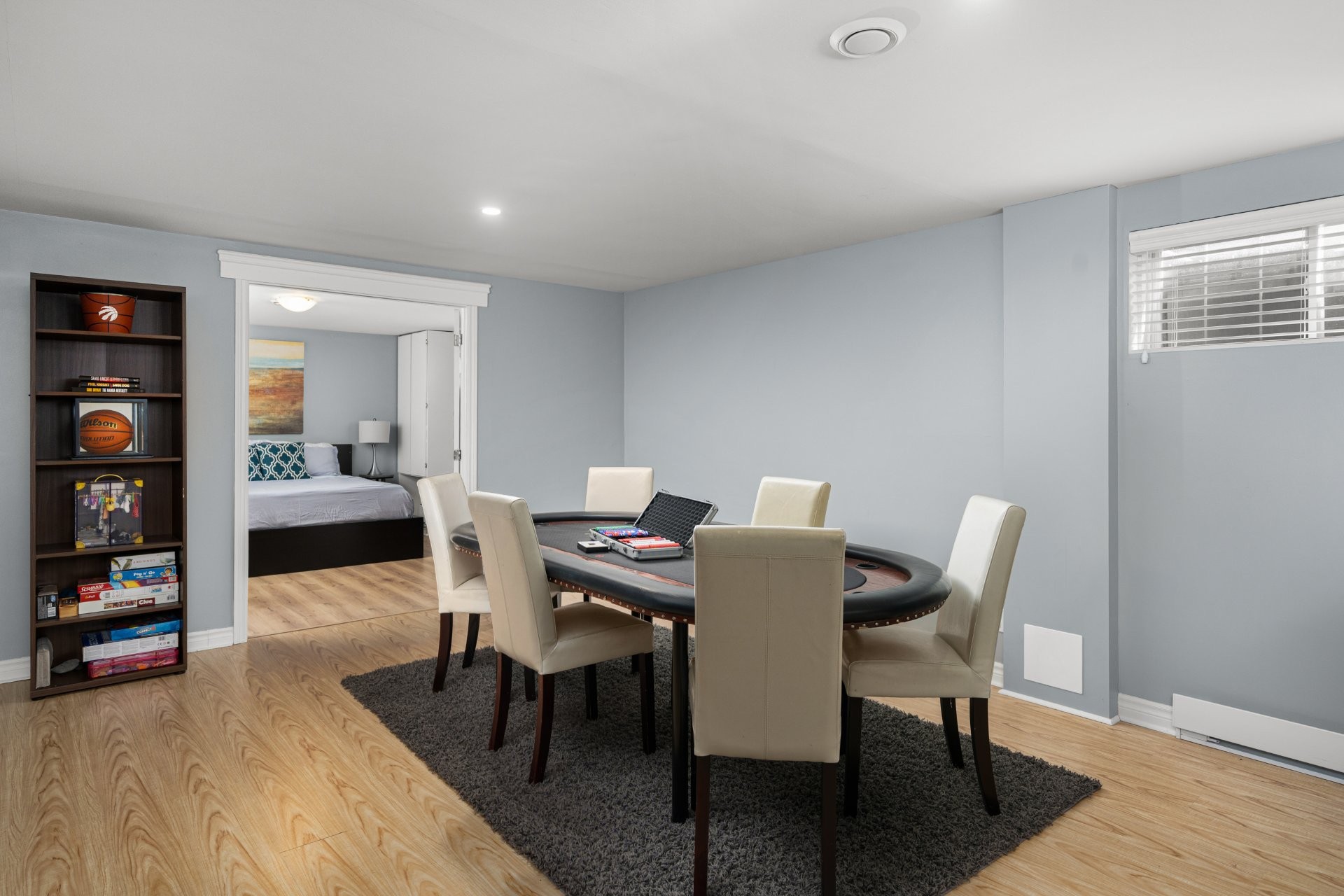 Le sous-sol entièrement aménagé ajoute une grande polyvalence avec un vaste espace ouvert, une cinquième chambre et une troisième salle de bains complète -- parfait pour recevoir, pour les adolescents ou pour la famille élargie.