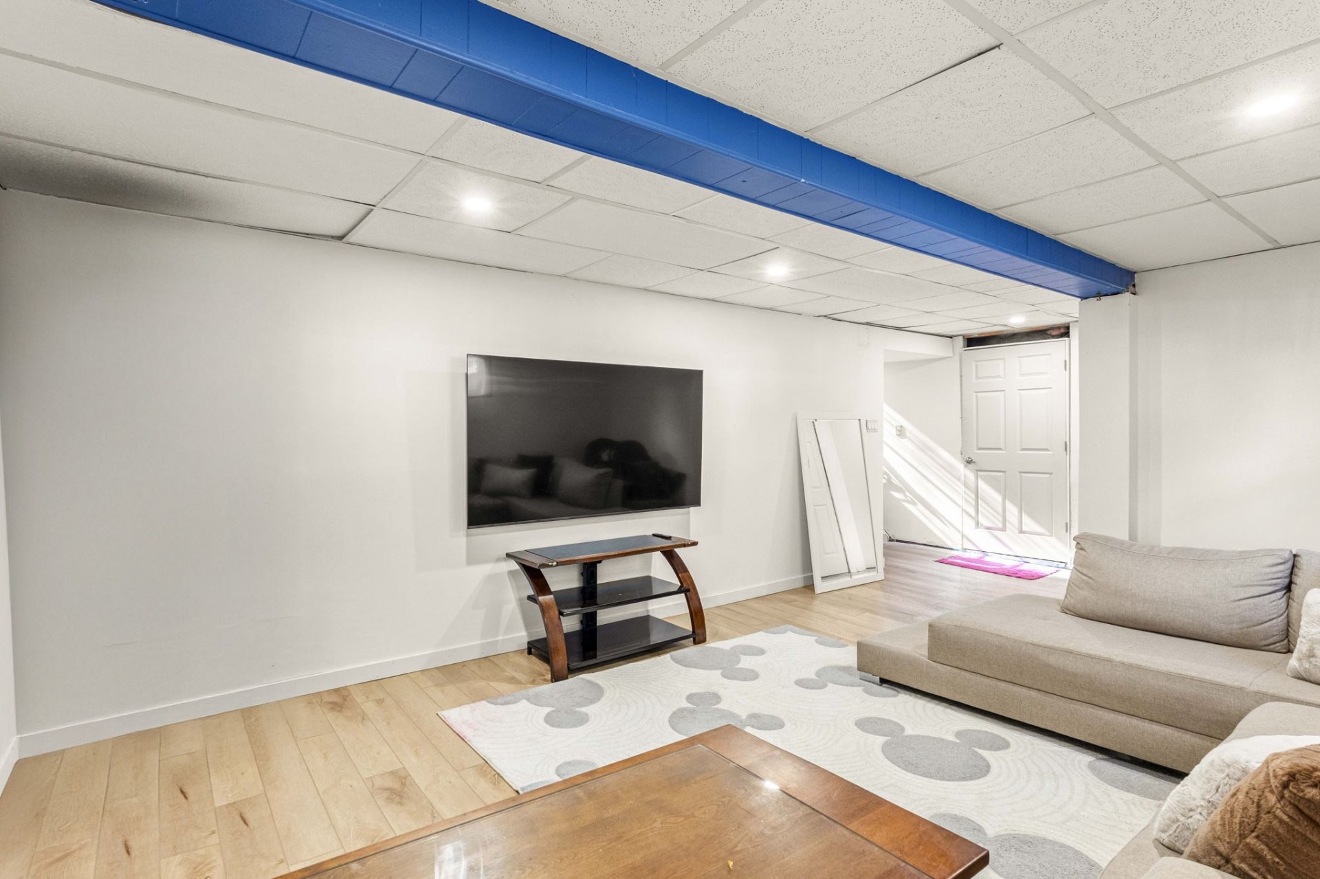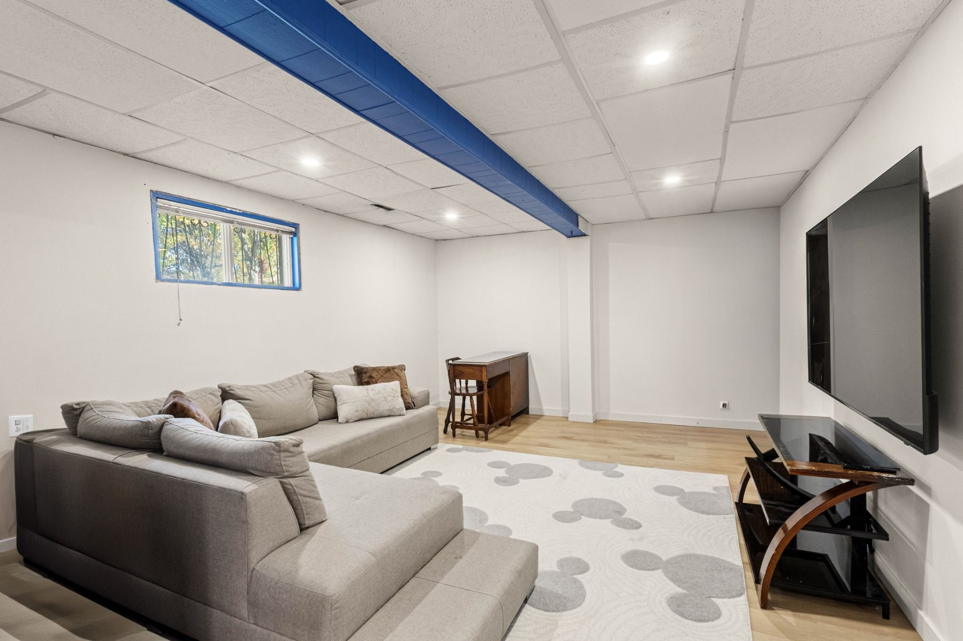 Le sous-sol entièrement aménagé comprend une chambre supplémentaire, une salle d'eau et une grande salle familiale ou salle de jeux, offrant une belle flexibilité pour recevoir ou se détendre.