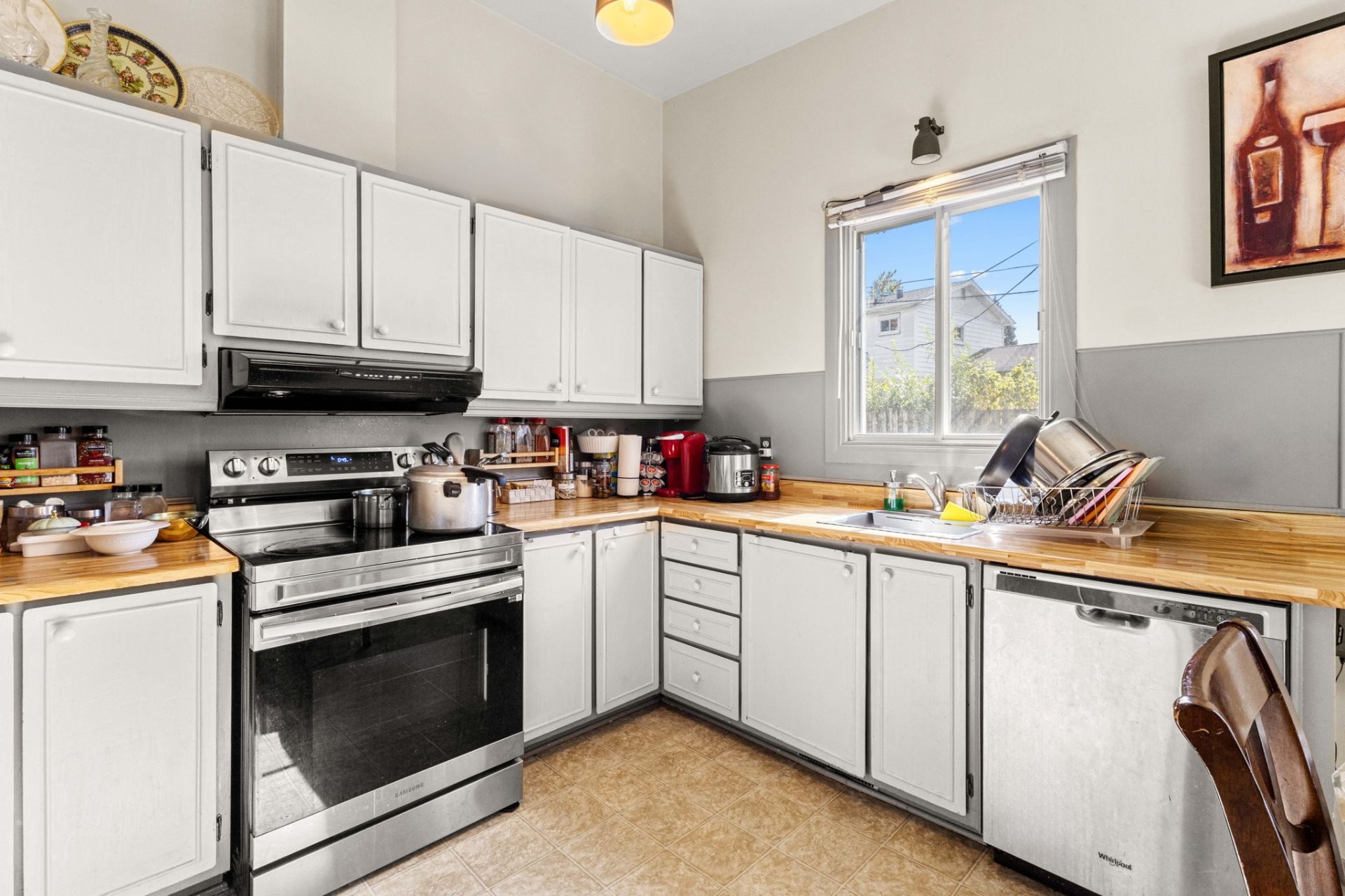 Le rez-de-chaussée propose un espace de vie lumineux et accueillant comprenant trois chambres, une salle de bain complète, ainsi qu'une cuisine et une salle à manger fonctionnelles -- parfaites pour le confort quotidien.