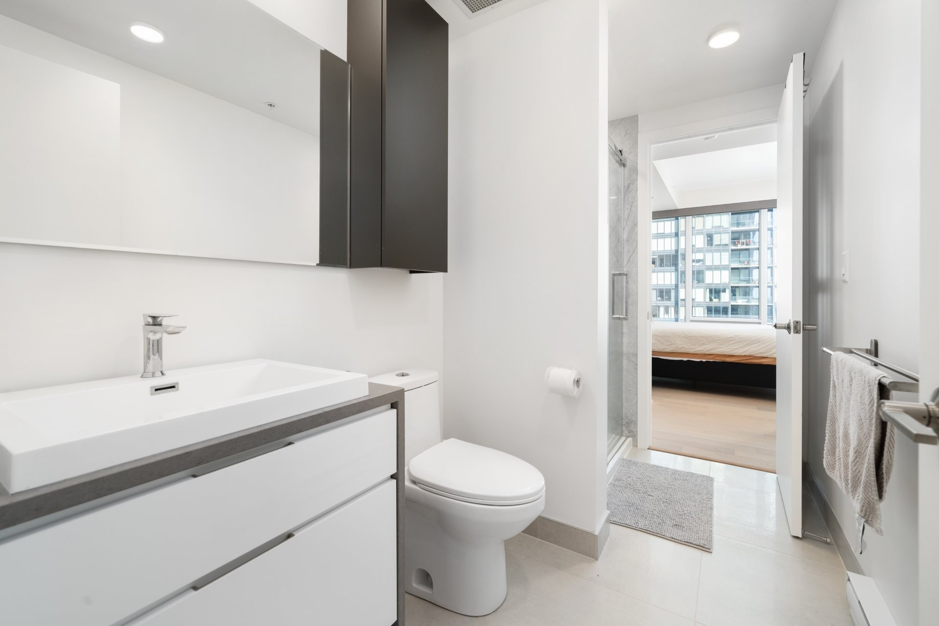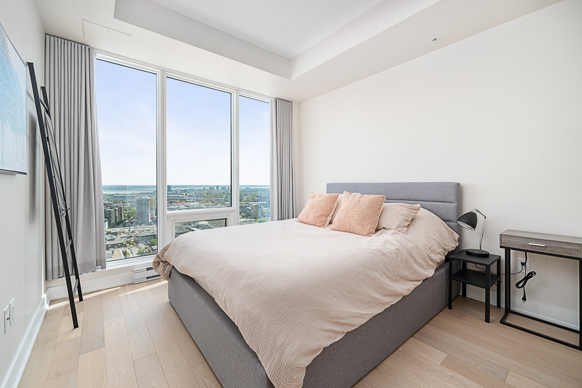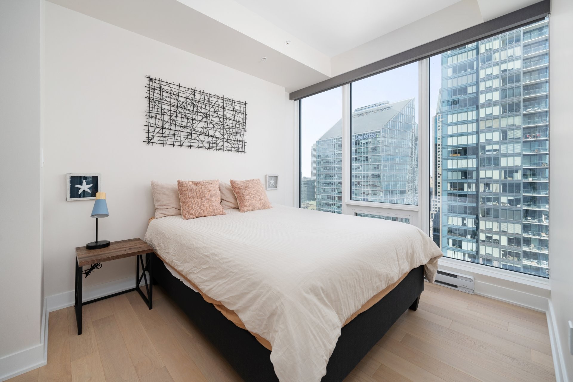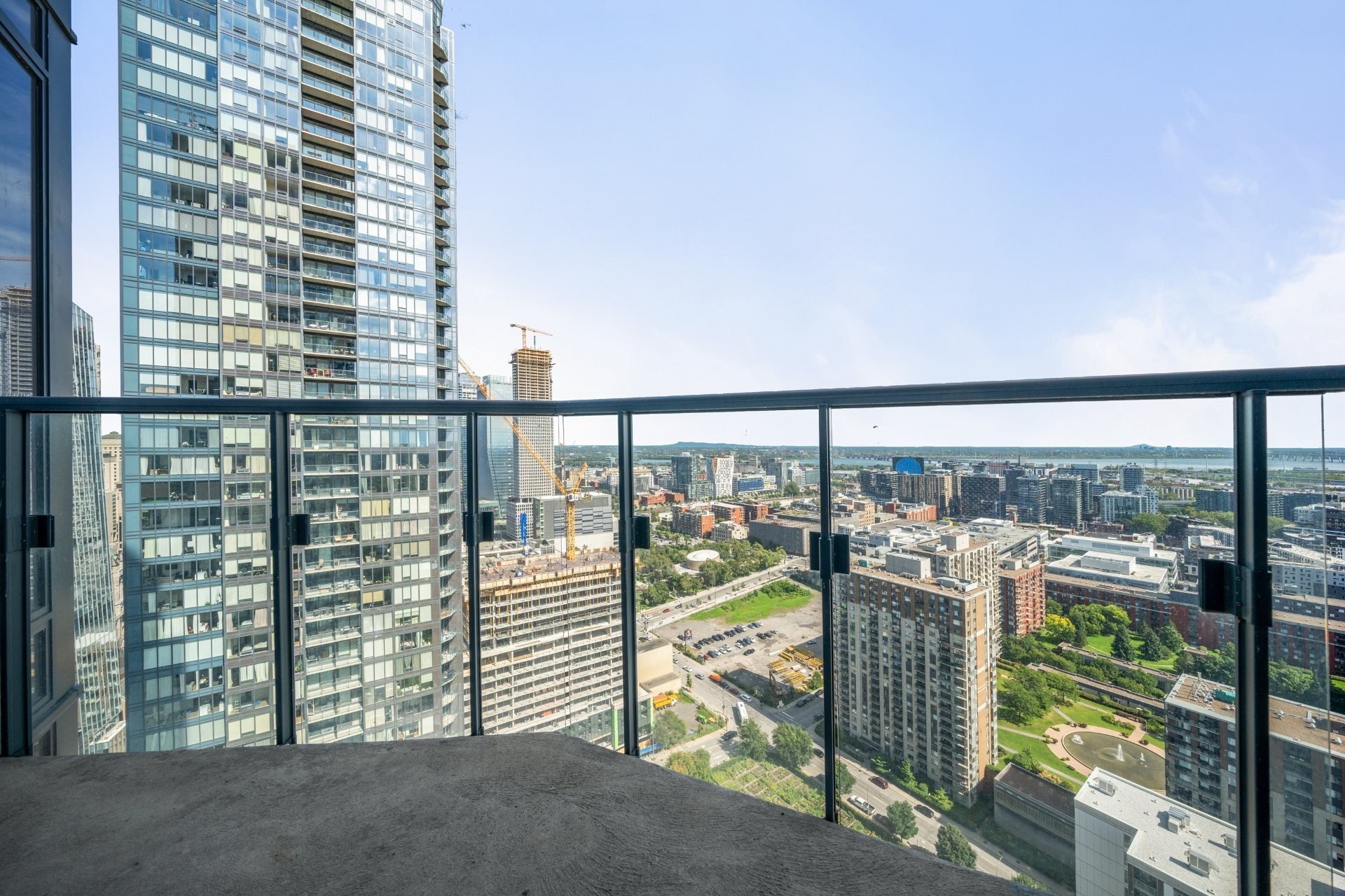 Les résidents bénéficient d'installations exceptionnelles : piscine intérieure, salle d'exercice, sauna, spa, terrasse avec BBQ, ainsi qu'un Skylounge au 54e étage offrant une vue imprenable sur le centre-ville. Sécurité 24h/24, accès à la ville souterraine et connexion directe au réseau RESO. Vous êtes à quelques minutes des stations de métro Lucien-L'Allier, Bonaventure, ainsi que de la Gare Windsor.