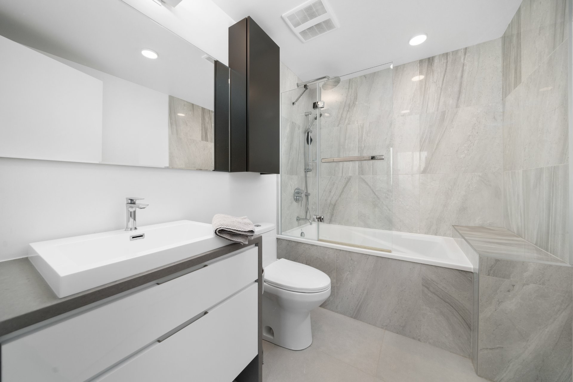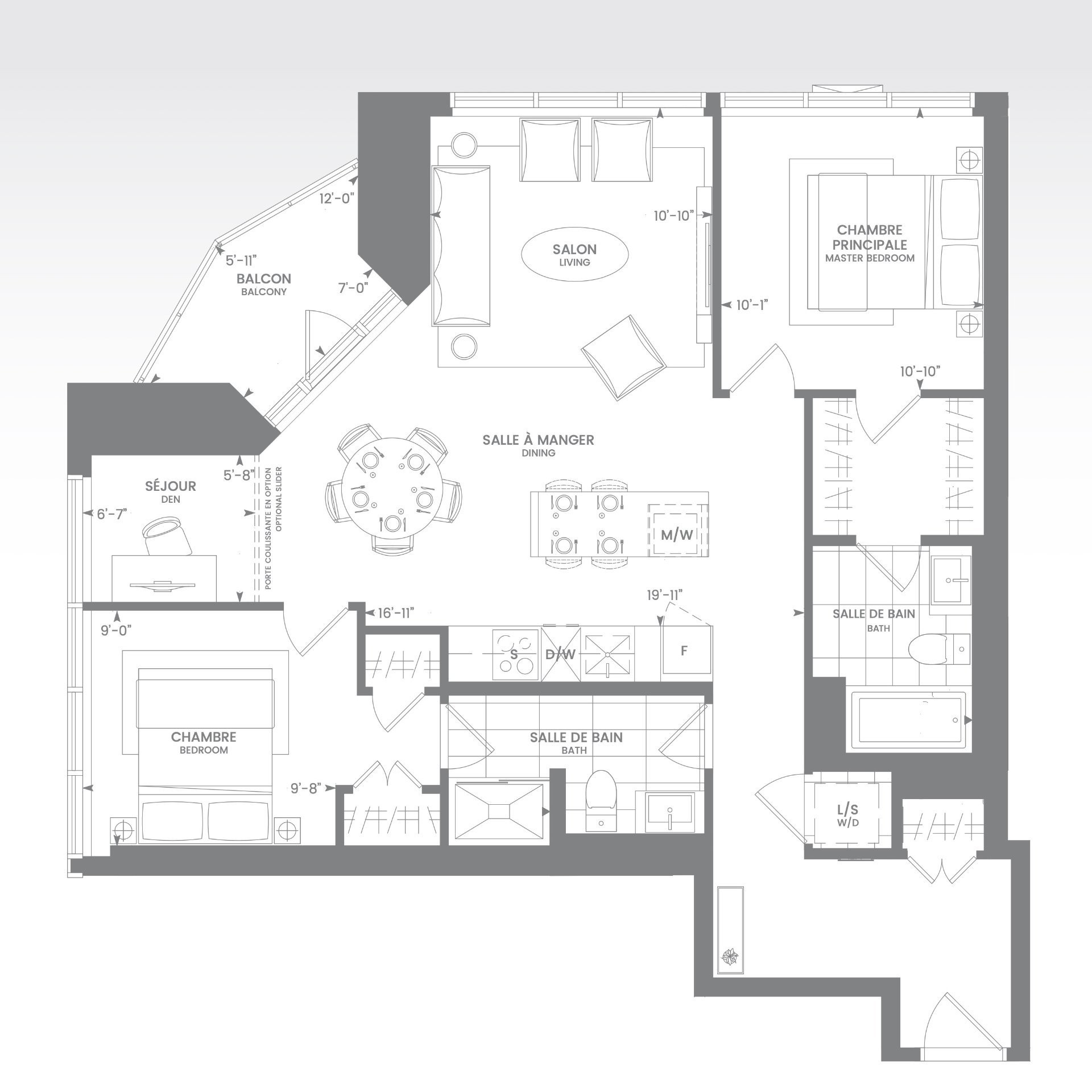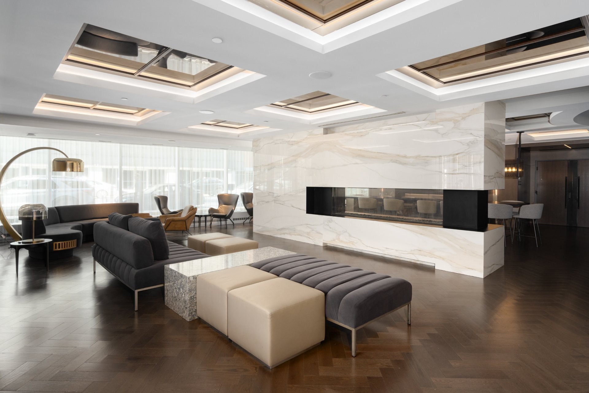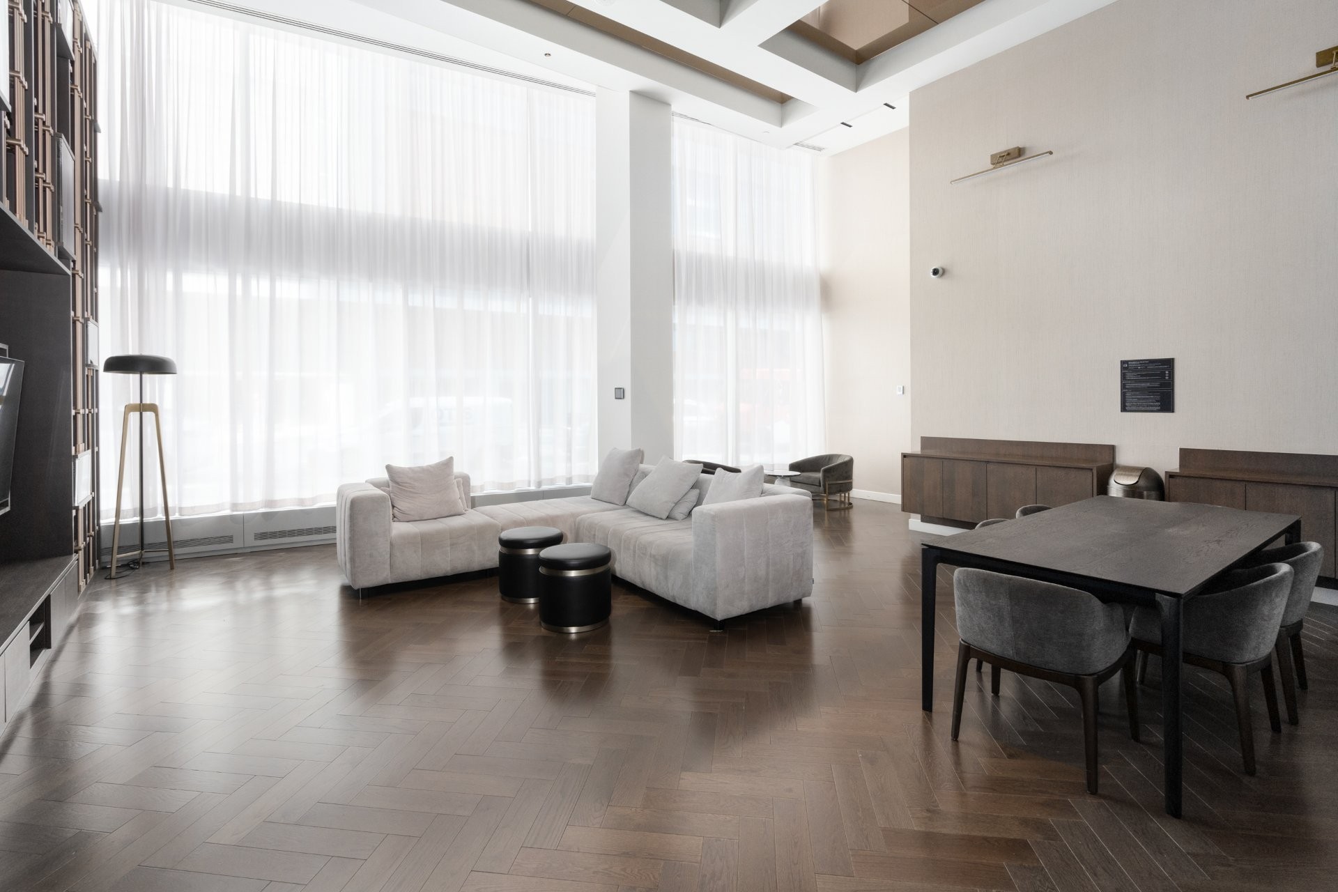 Les résidents bénéficient d'installations exceptionnelles : piscine intérieure, salle d'exercice, sauna, spa, terrasse avec BBQ, ainsi qu'un Skylounge au 54e étage offrant une vue imprenable sur le centre-ville. Sécurité 24h/24, accès à la ville souterraine et connexion directe au réseau RESO. Vous êtes à quelques minutes des stations de métro Lucien-L'Allier, Bonaventure, ainsi que de la Gare Windsor.