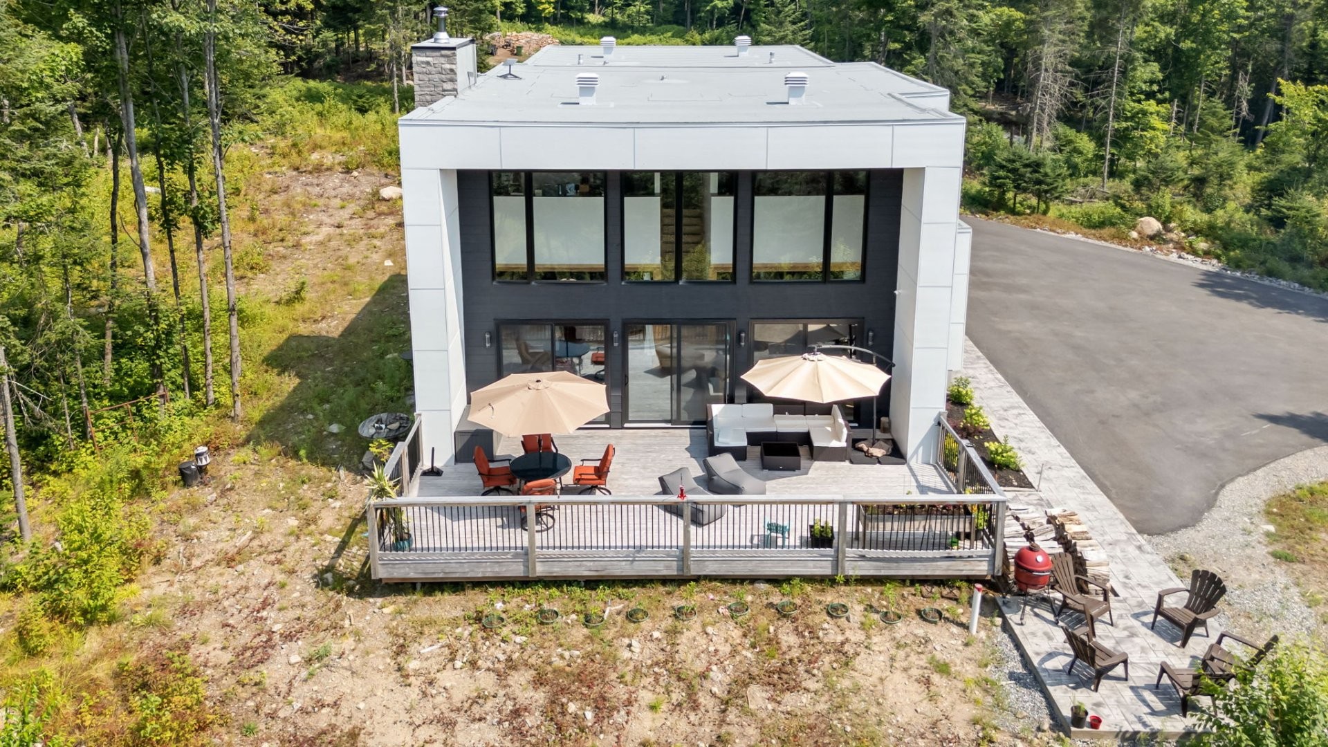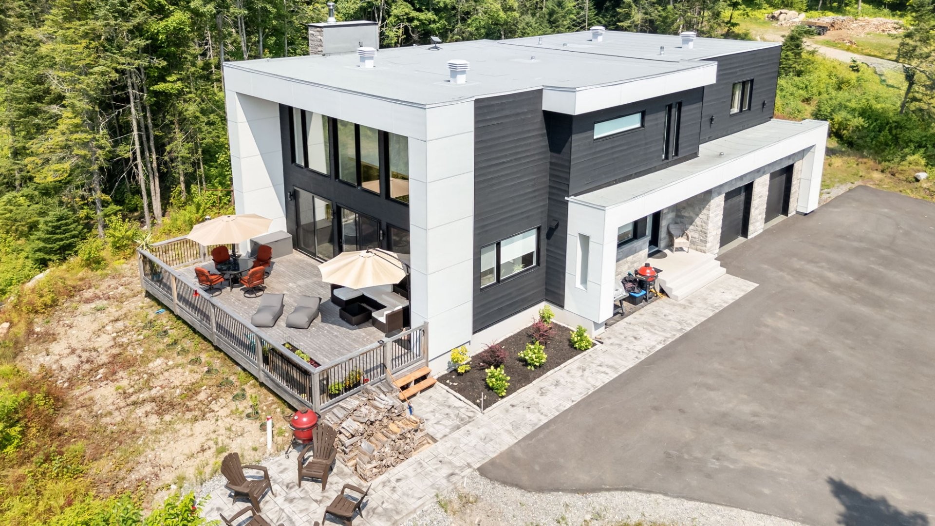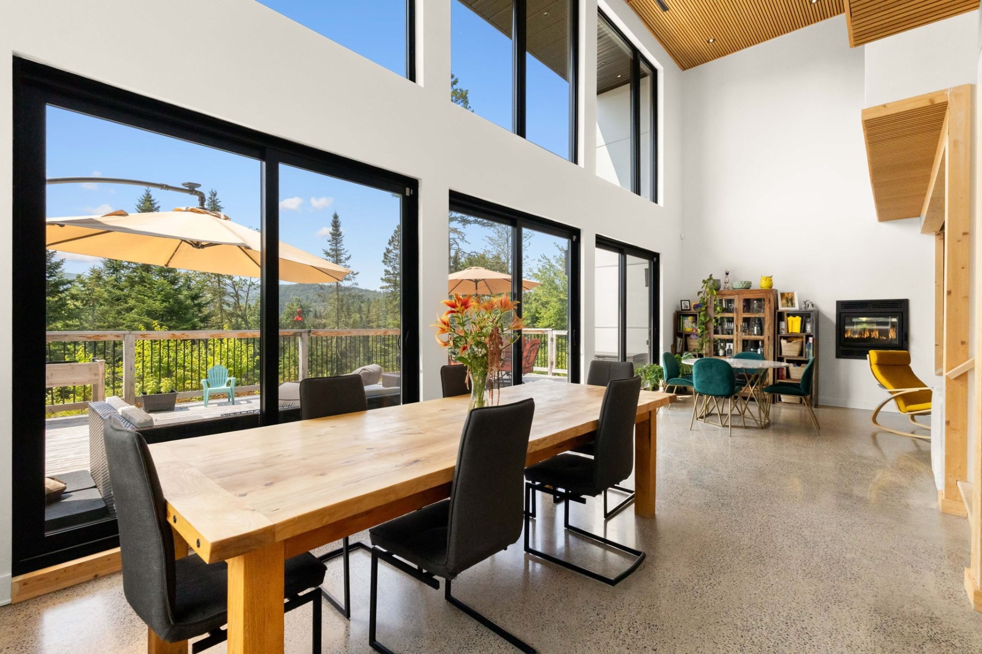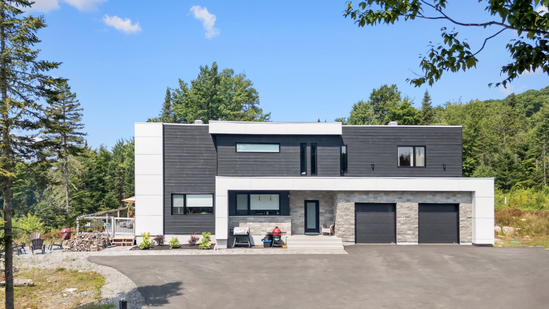 Cette maison d'architecte de près de 370 m² allie luxe moderne et beauté naturelle. Elle comprend 4 chambres, des planchers de béton chauffants, des plafonds acoustiques Akupanel et un système de ventilation Lennox. Profitez de la vue sur les montagnes depuis la façade vitrée orientée plein sud et la terrasse de 55 m². Une allée pavée de 720 m² peut accueillir jusqu'à 10 véhicules. Située sur un terrain protégé près de Mont-Tremblant, la maison offre calme et intimité, ainsi qu'un accès facile aux sentiers, aux écoles, aux pistes de ski et au lac Quenouille, à seulement 15 minutes de la route 117.
