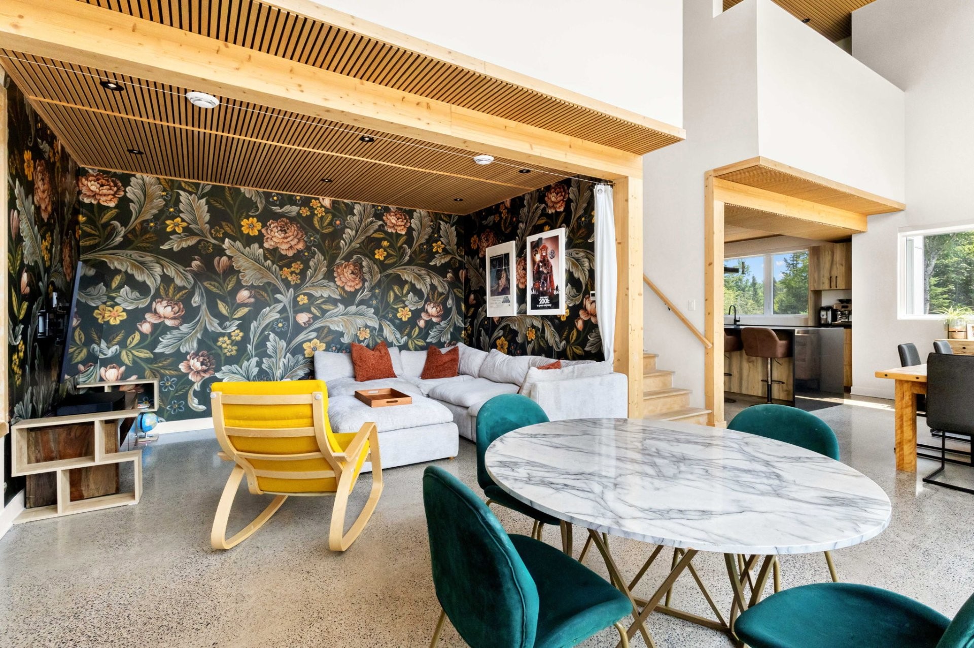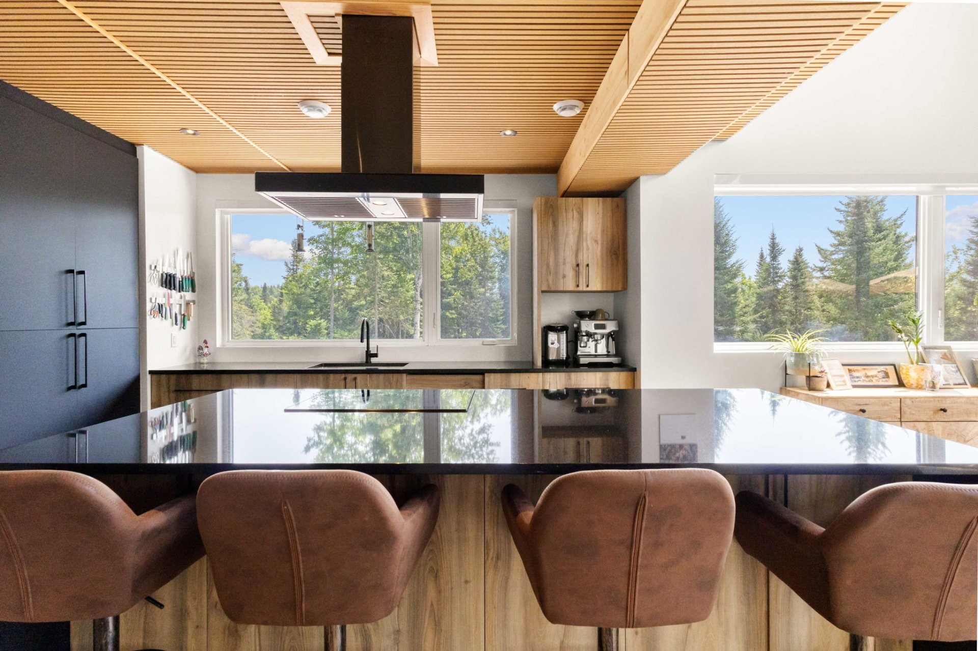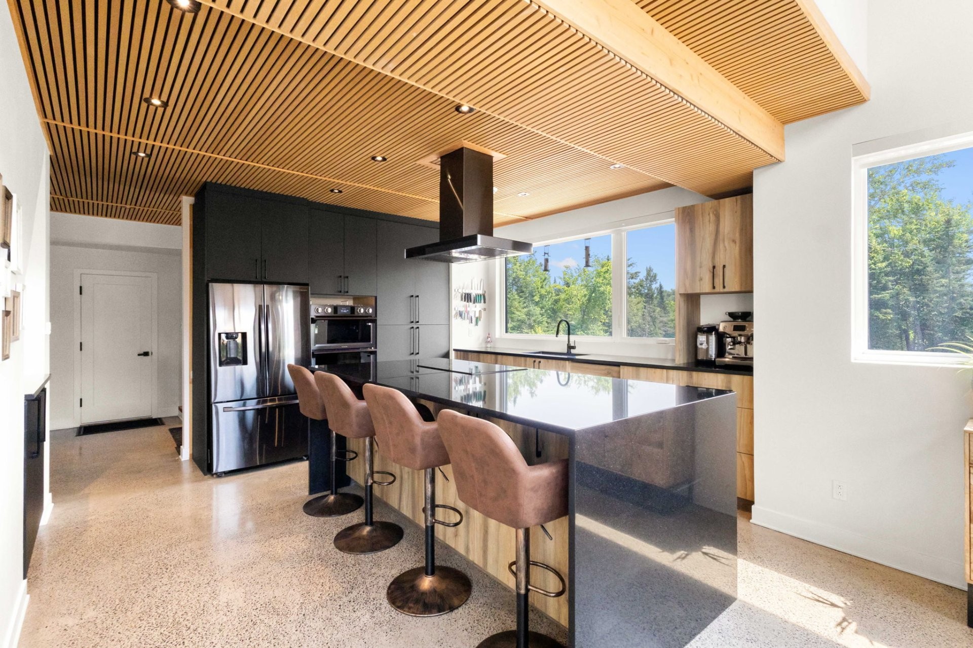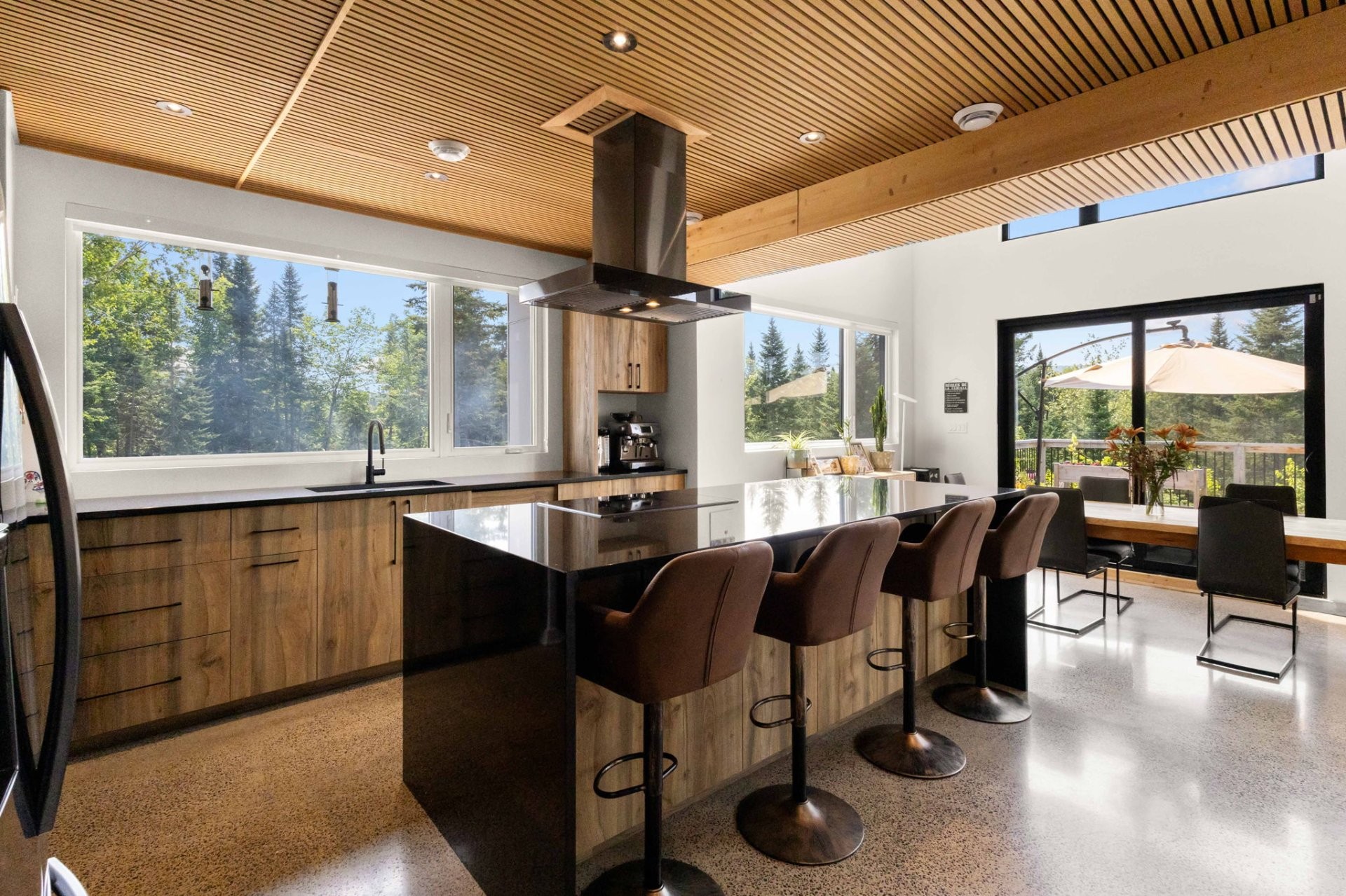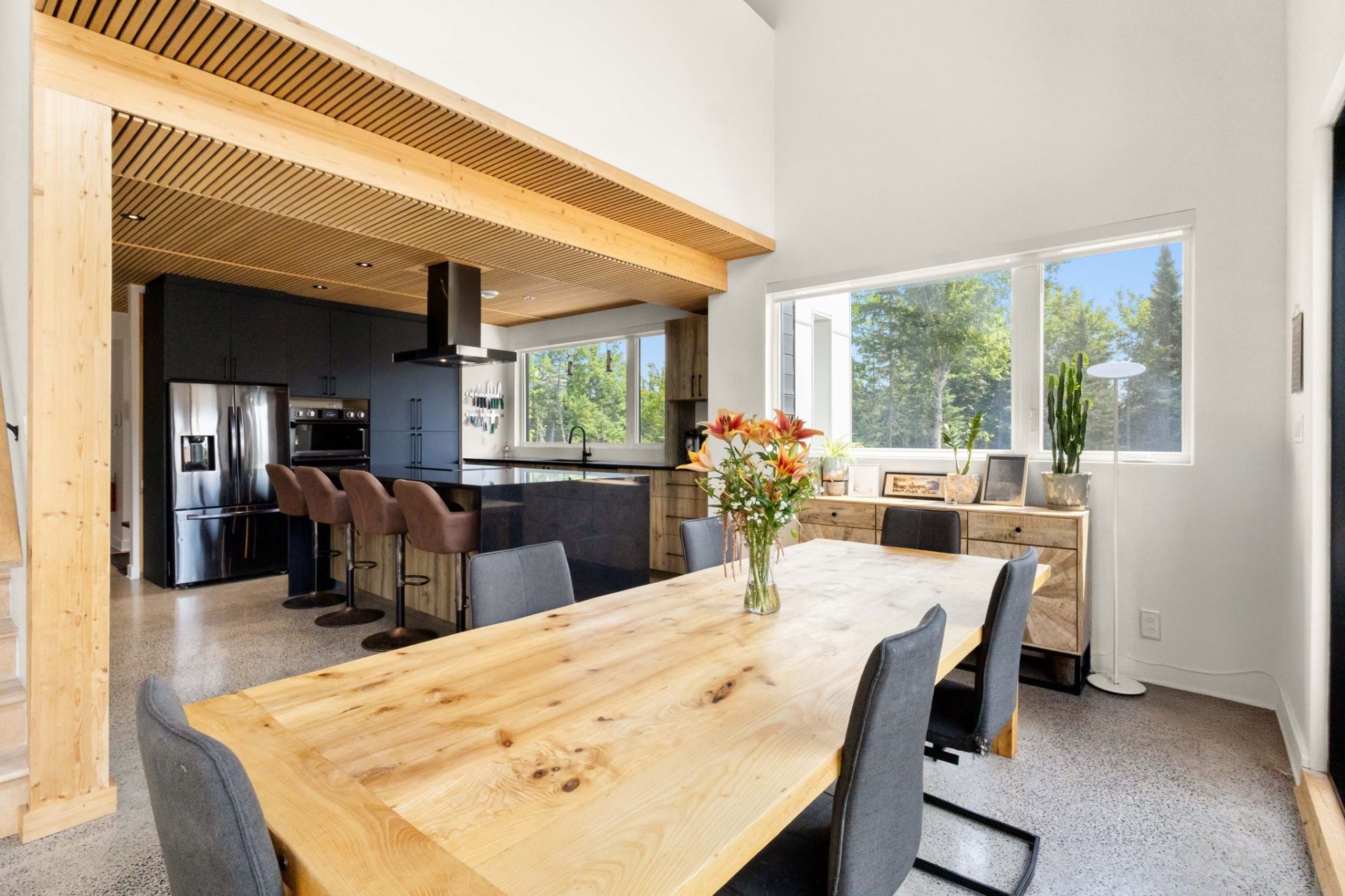 Cette maison d'architecte de près de 370 m² allie luxe moderne et beauté naturelle. Elle comprend 4 chambres, des planchers de béton chauffants, des plafonds acoustiques Akupanel et un système de ventilation Lennox. Profitez de la vue sur les montagnes depuis la façade vitrée orientée plein sud et la terrasse de 55 m². Une allée pavée de 720 m² peut accueillir jusqu'à 10 véhicules. Située sur un terrain protégé près de Mont-Tremblant, la maison offre calme et intimité, ainsi qu'un accès facile aux sentiers, aux écoles, aux pistes de ski et au lac Quenouille, à seulement 15 minutes de la route 117.