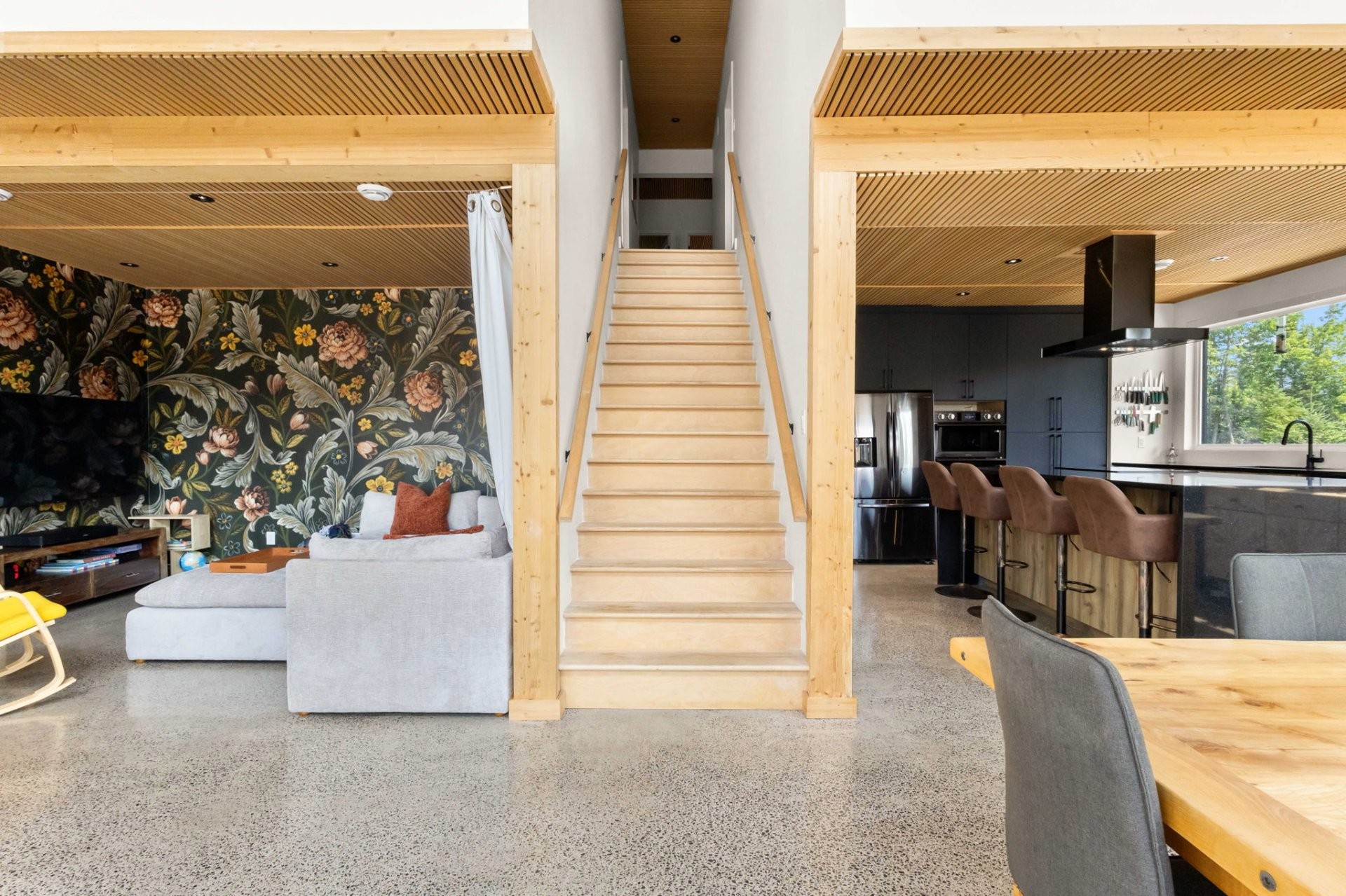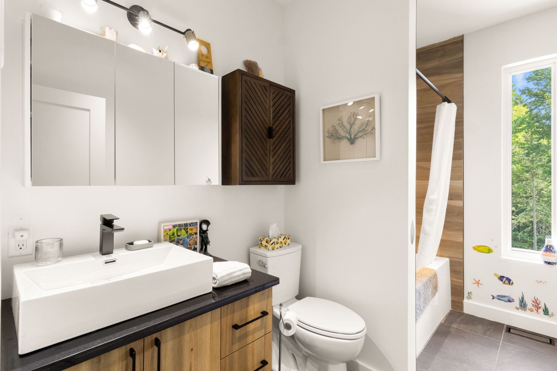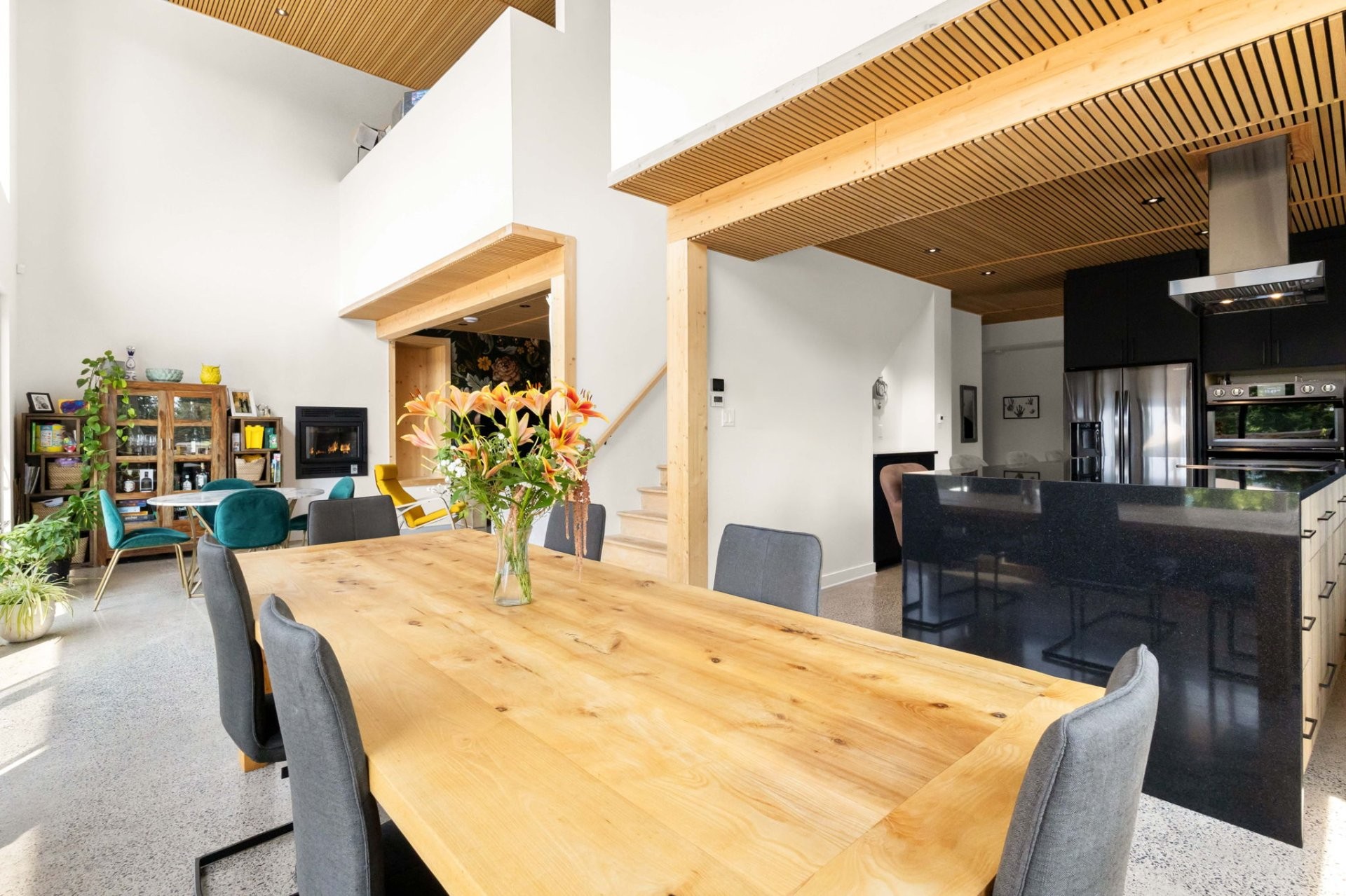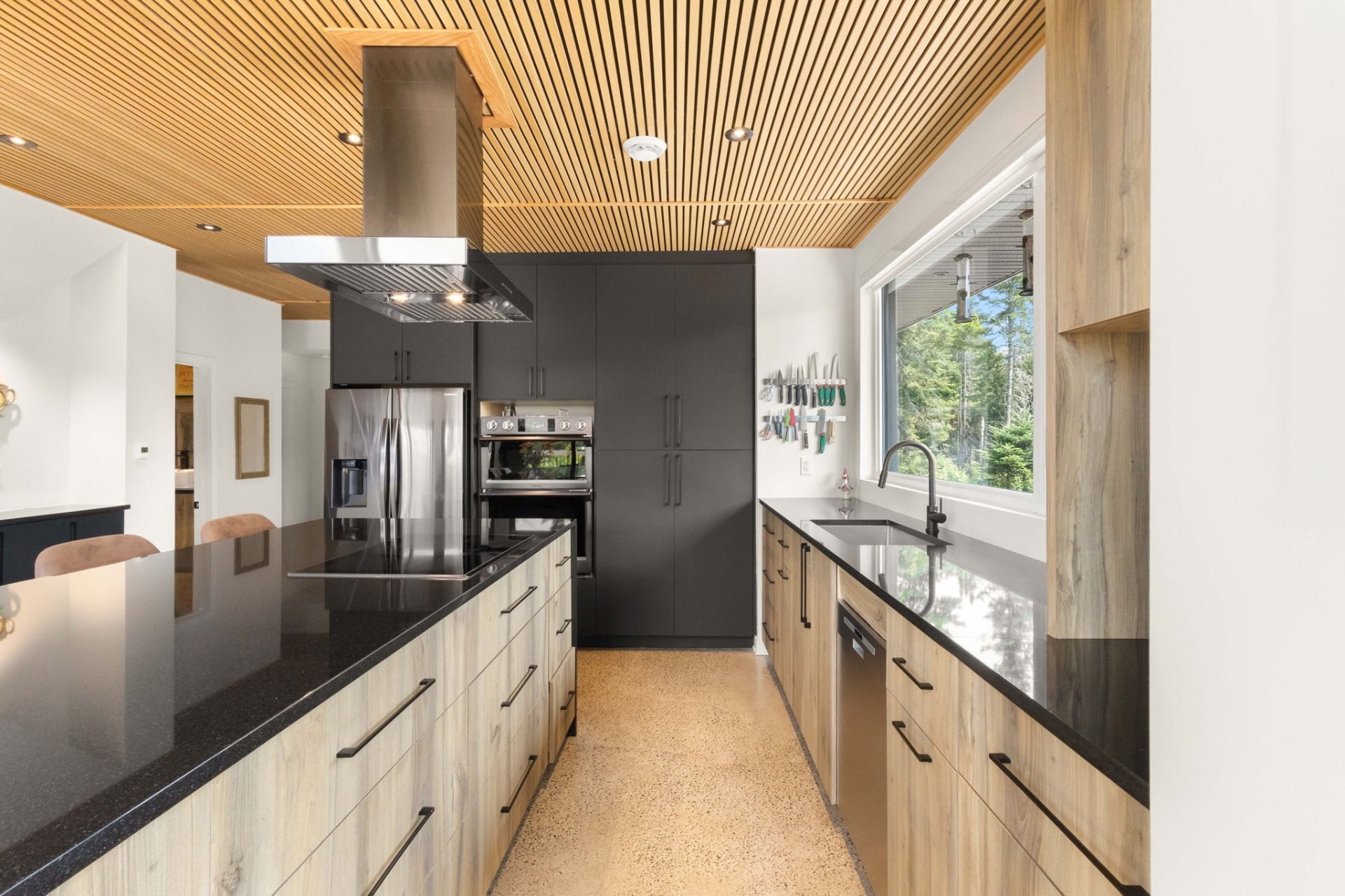 Cette maison d'architecte de près de 370 m² allie luxe moderne et beauté naturelle. Elle comprend 4 chambres, des planchers de béton chauffants, des plafonds acoustiques Akupanel et un système de ventilation Lennox. Profitez de la vue sur les montagnes depuis la façade vitrée orientée plein sud et la terrasse de 55 m². Une allée pavée de 720 m² peut accueillir jusqu'à 10 véhicules. Située sur un terrain protégé près de Mont-Tremblant, la maison offre calme et intimité, ainsi qu'un accès facile aux sentiers, aux écoles, aux pistes de ski et au lac Quenouille, à seulement 15 minutes de la route 117.