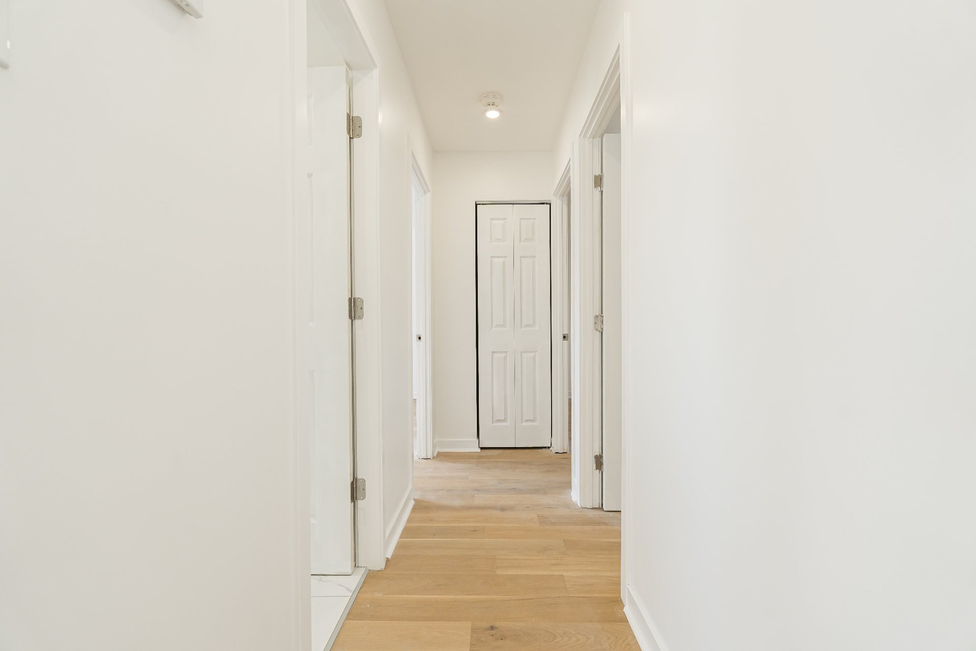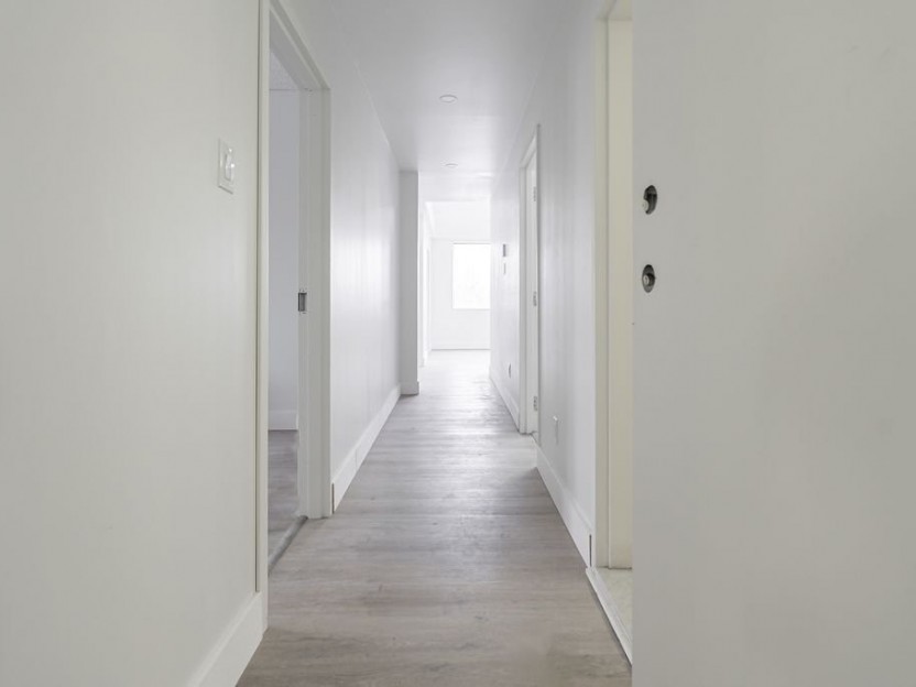 * Nouveau revêtement de sol, plancher de bois ingénieur au rez-de-chaussée, vinyle au sous-sol