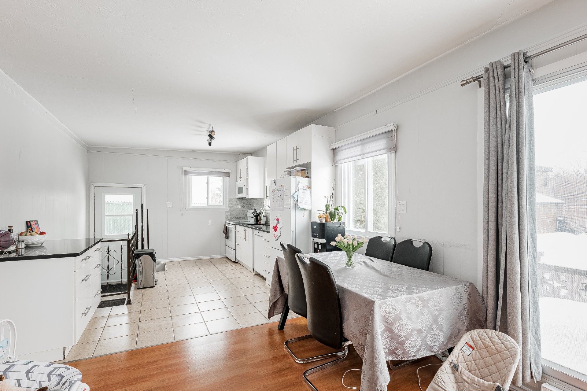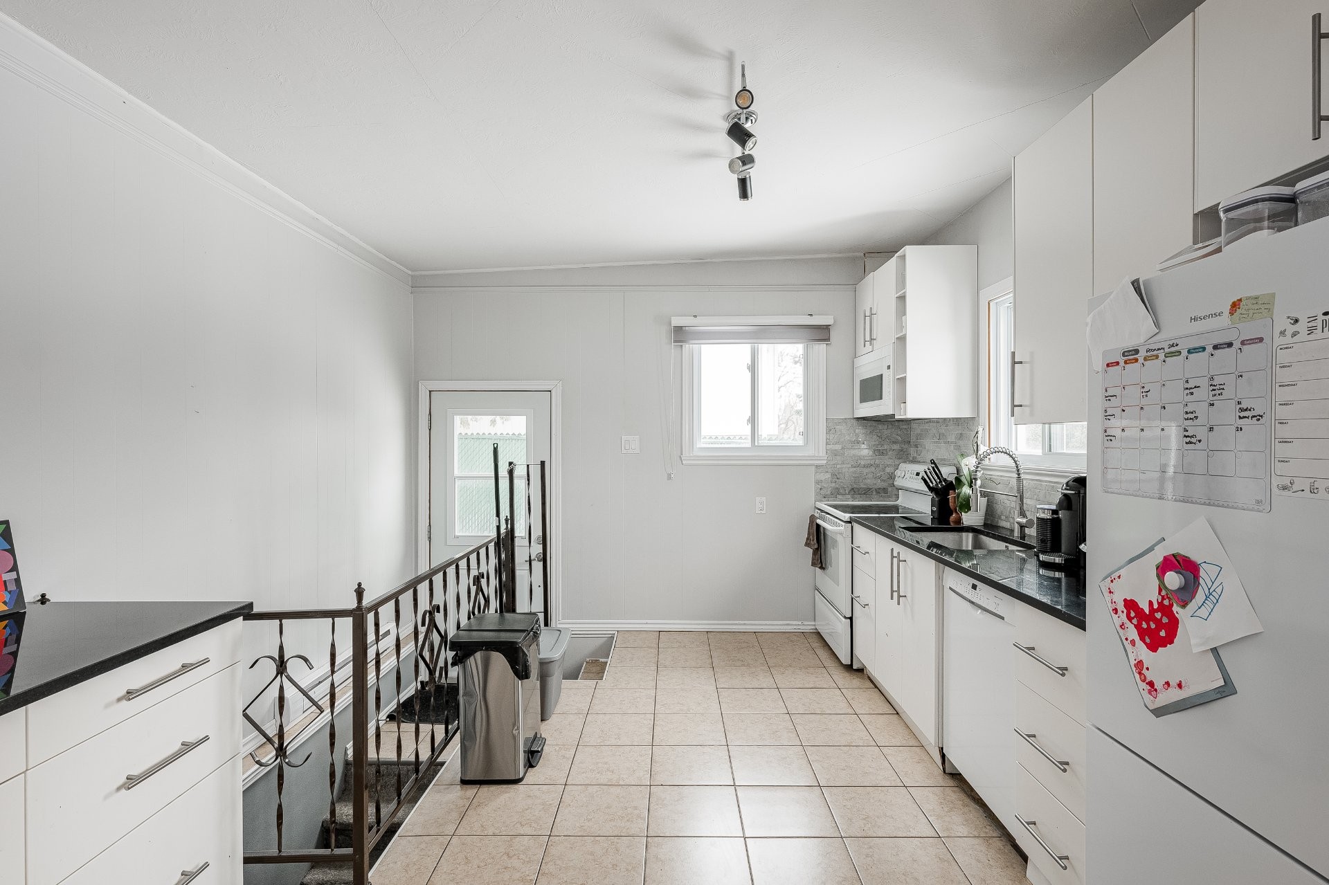 Cuisinière, micro-ondes, lave-vaisselle, tous les rideaux, garde-robe autoportante dans la chambre.