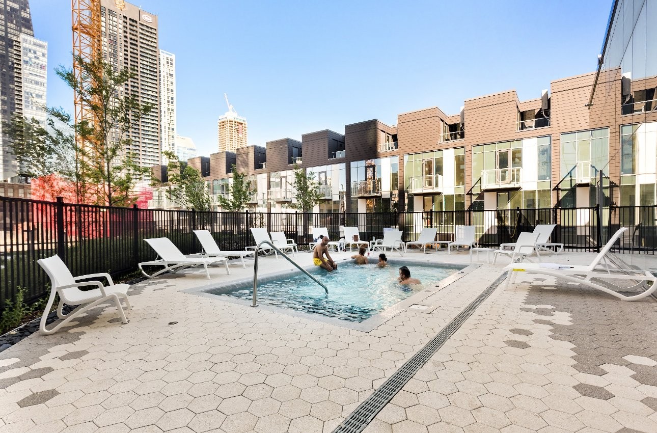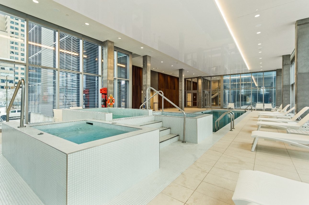 Les aires communes exceptionnelles, aménagées par Armani/Casa, comprennent un Sky Lounge au 38e étage, une spectaculaire terrasse sur le toit, une cave à vin privée, ainsi qu'un accès exclusif à un jardin intérieur paysager avec piscines, gym et spa. Les tours résidentielles audacieuses et les maisons de ville luxueuses définissent un style de vie urbain unique à Montréal, idéalement situé entre l'effervescence du Quartier des spectacles et Griffintown.