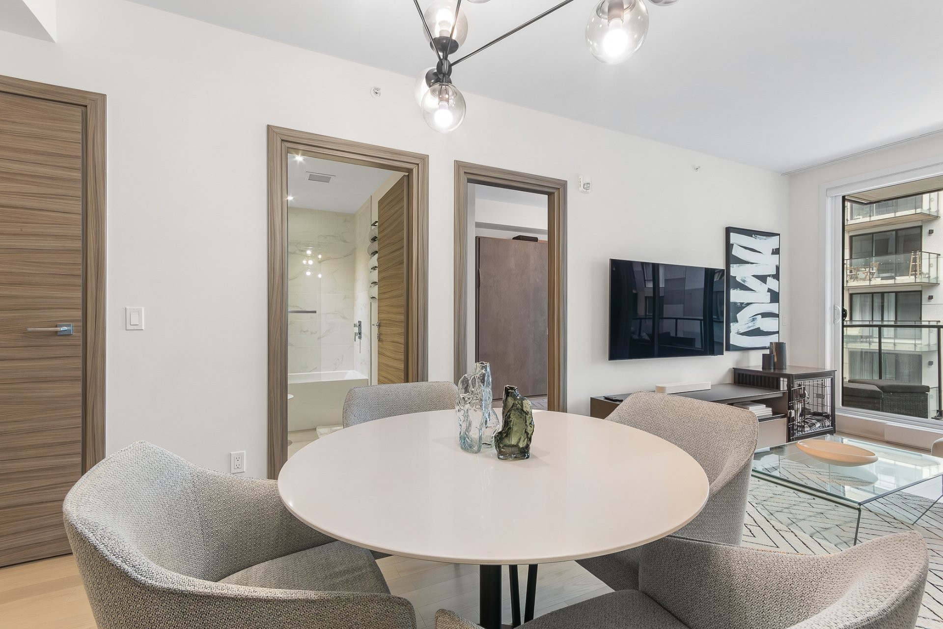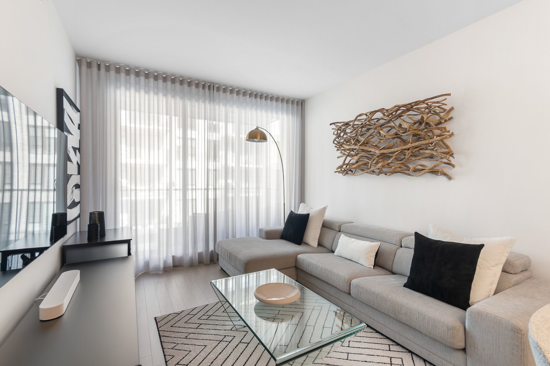 L'esthétique moderne de cette unité se marie harmonieusement avec les équipements élégants de l'immeuble. Chaque détail a été méticuleusement choisi par le propriétaire pour un maximum de confort et d'attrait.