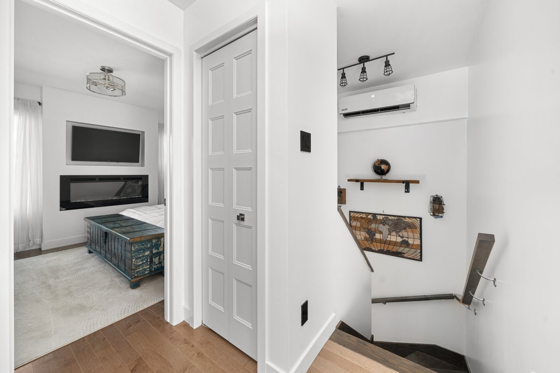 Foyers électriques intégrés avec meubles et murs en céramique décorative. Nouvelles armoires de cuisine et salle de bain. Comptoirs de cuisine et salle de bain en quartz. Planchers de bois franc (rez-de-chaussée et étage). Planchers de céramique dans cuisine, entrée et salles de bain. Rénovation complète des salles de bain (sous-sol 2023, étage 2024).