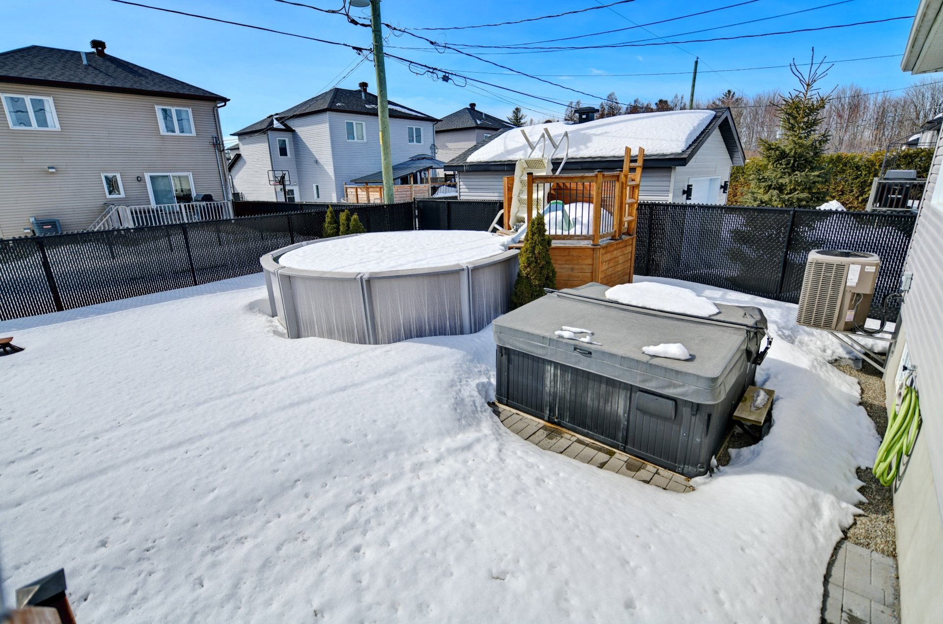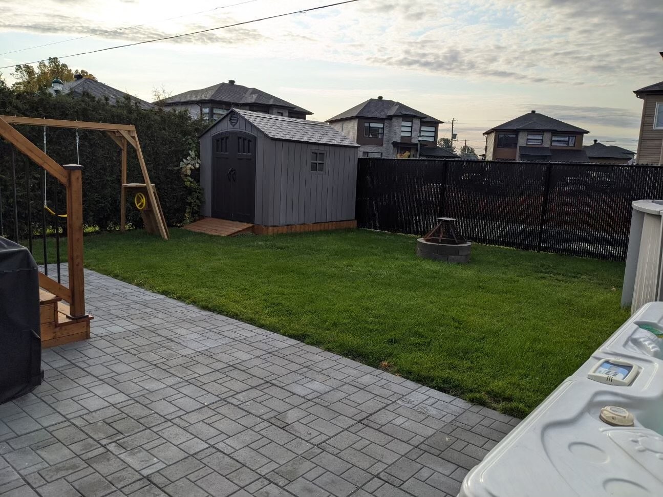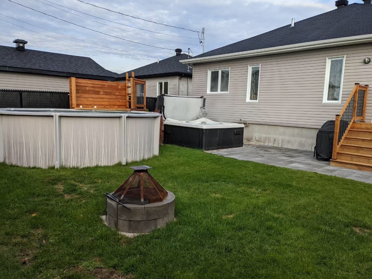 Grande cour arrière entièrement clôturée, idéale pour les enfants, les animaux et le jardinage. Piscine hors terre et spa (jacuzzi) pour profiter pleinement des beaux moments à la maison.