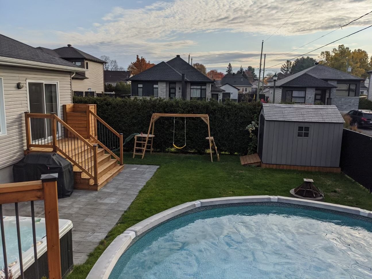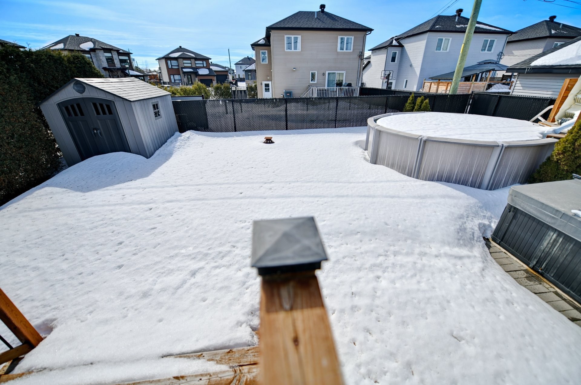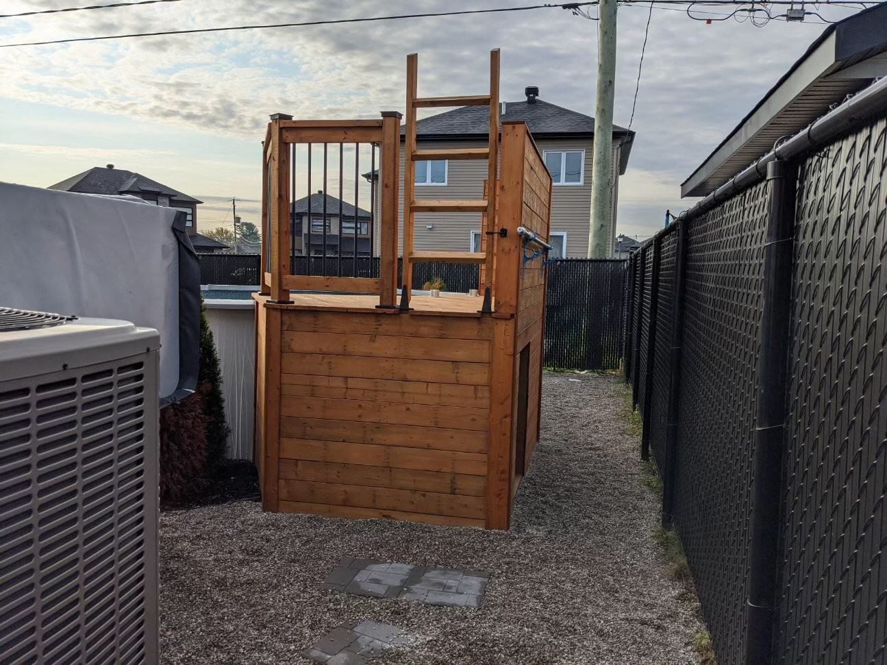 Grande cour arrière entièrement clôturée, idéale pour les enfants, les animaux et le jardinage. Piscine hors terre et spa (jacuzzi) pour profiter pleinement des beaux moments à la maison.