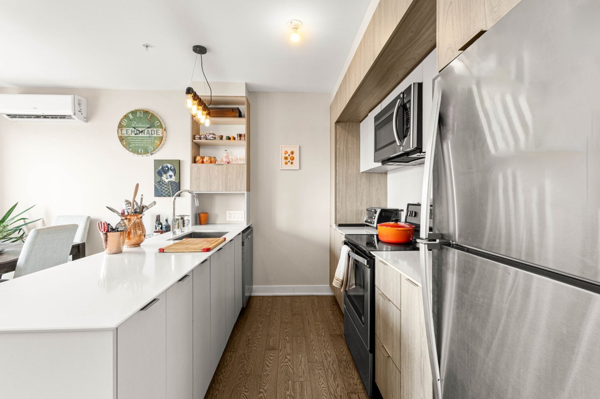 Unité lumineuse et bien pensée au 2e étage à Espace MV3, avec aire salon-salle à manger ouverte, chambre confortable avec walk-in et salle d...