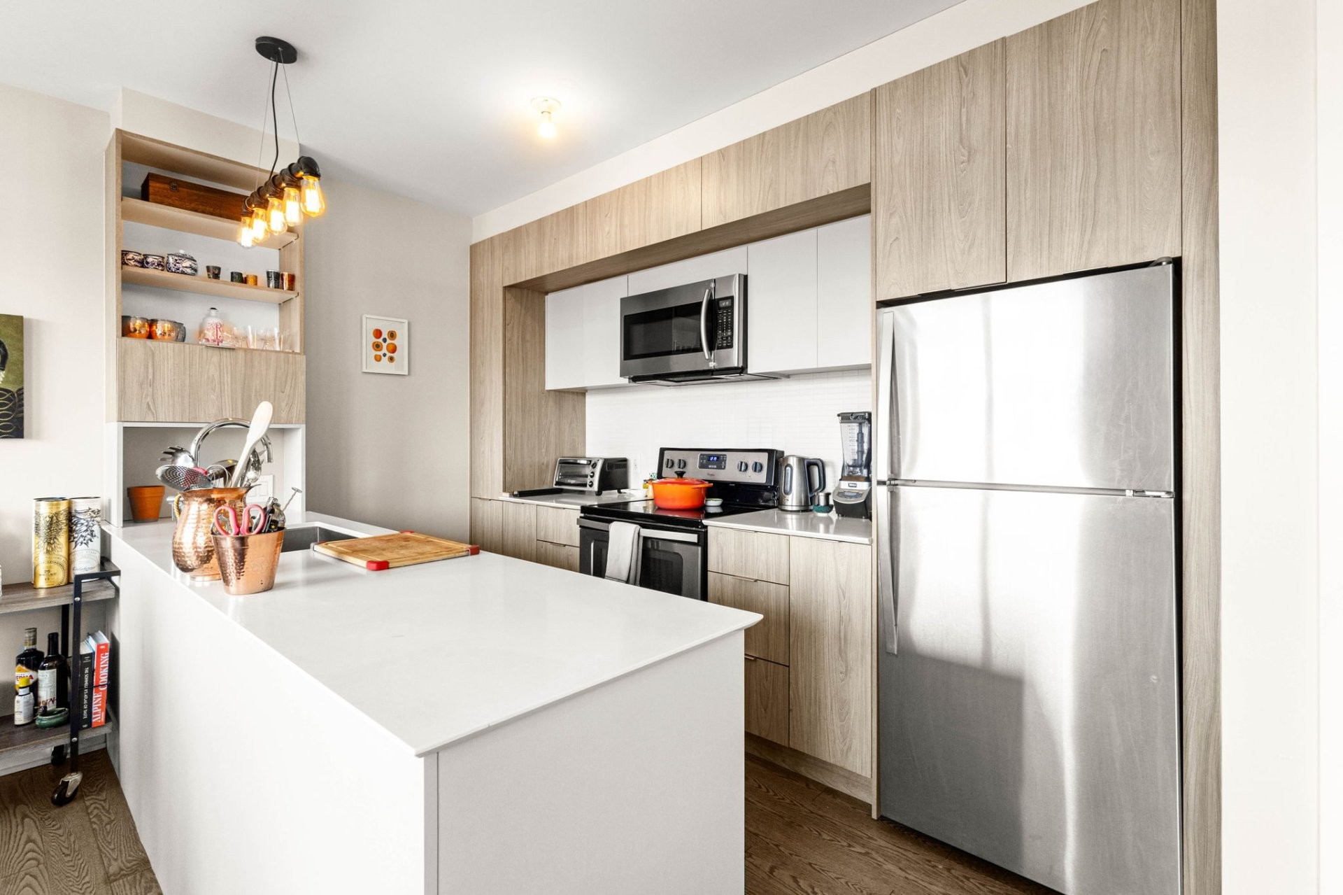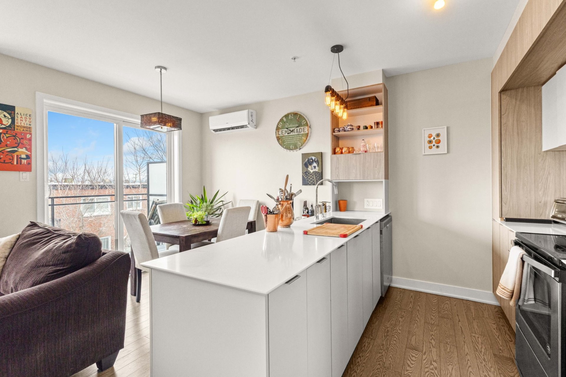 Condo clé en main d'une chambre et une salle de bain dans le prestigieux projet MV3 Collection à Dorval. Unité impeccablement entretenue et très lumineuse avec fenêtres pleine hauteur et grand balcon. L'aire ouverte allie style moderne et élégance, avec planchers de bois, cuisine contemporaine avec comptoirs en quartz, chambre principale spacieuse, garde-robe et salle de bain complète moderne. Inclus : 5 électroménagers, 1 stationnement intérieur et un espace de rangement. Près de tous les services, autoroutes, transports en commun, épiceries, écoles et parcs.