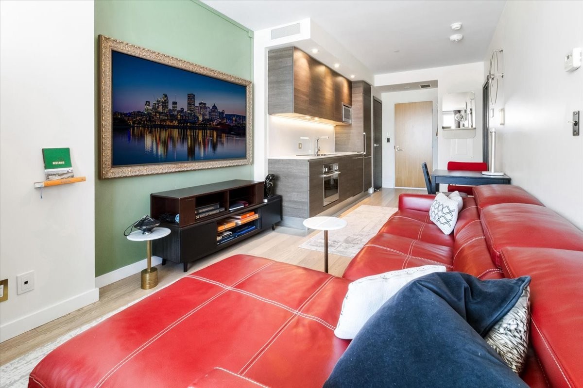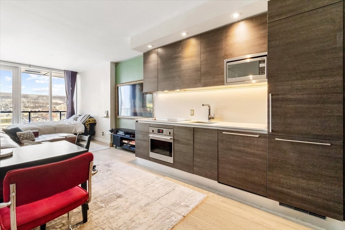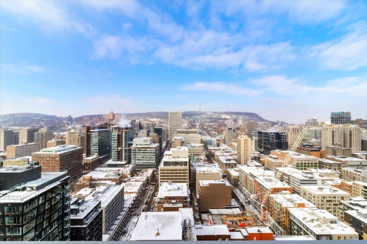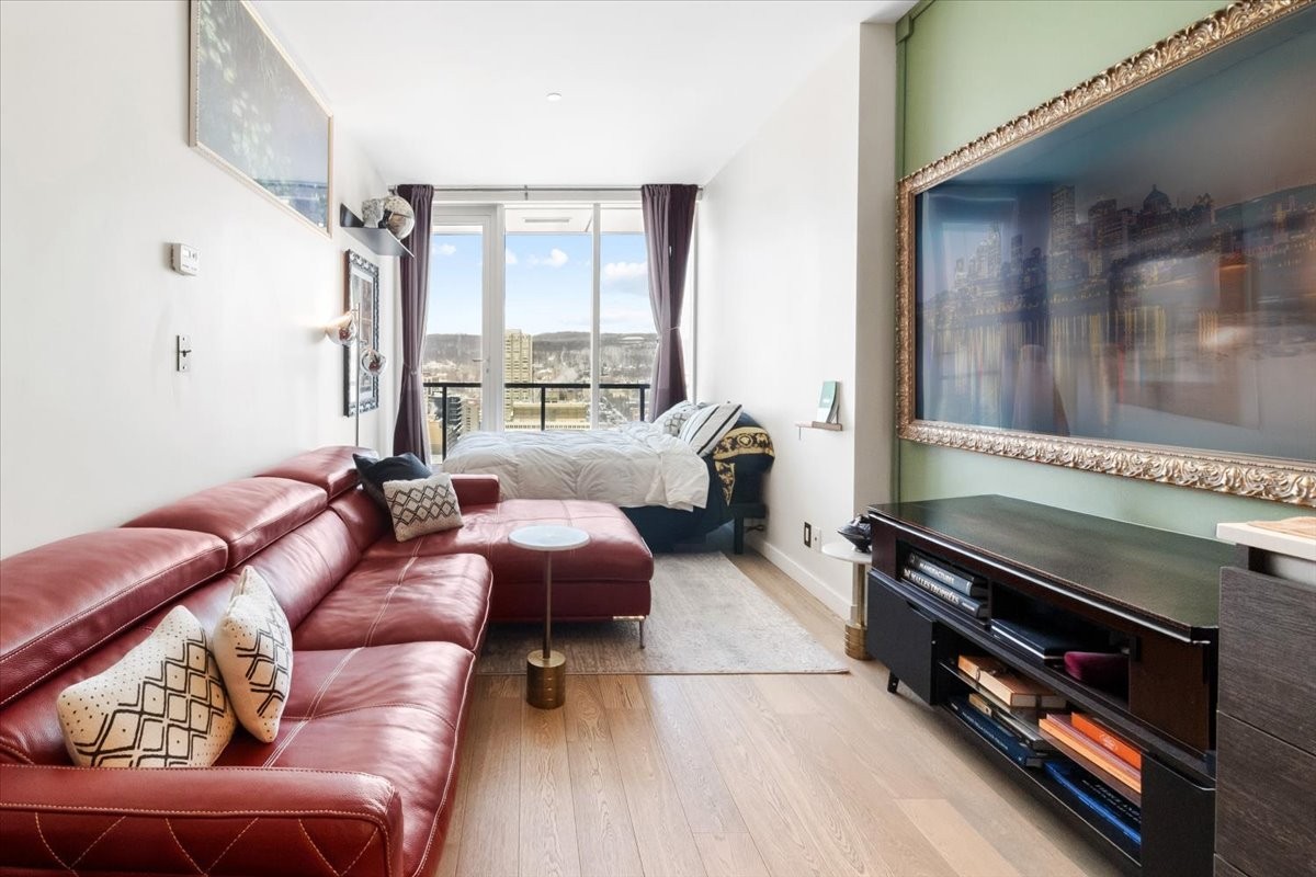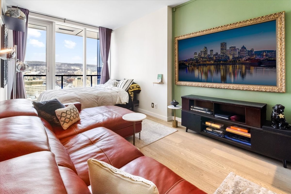 Perchée au 30 étage de l'iconique YUL, ce studio élégant offre des vues panoramiques sur le centre-ville de Montréal et le parc du Mont-Royal. L'aménagement à aire ouverte maximise l'espace et la lumière, avec des fenêtres du sol au plafond encadrant le paysage urbain le jour et la skyline la nuit. La cuisine moderne s'intègre parfaitement au séjour, créant un espace à la fois fonctionnel et raffiné. Profitez des commodités de type resort, concierge 24/7, centre de fitness, et d'un accès immédiat aux meilleurs restaurants, boutiques et attractions culturelles du centre-ville. Idéal comme pied-à-terre, investissement ou résidence principale.
