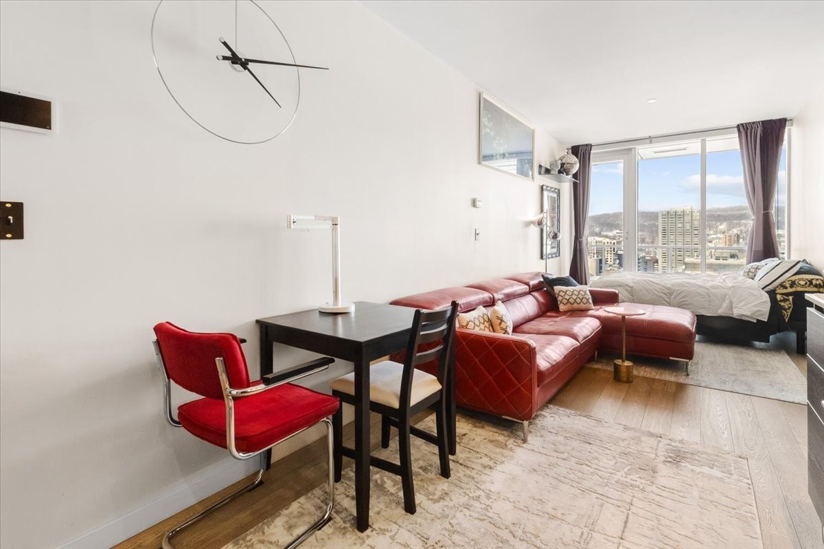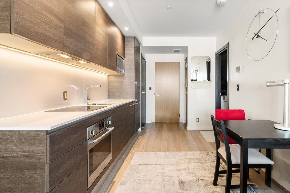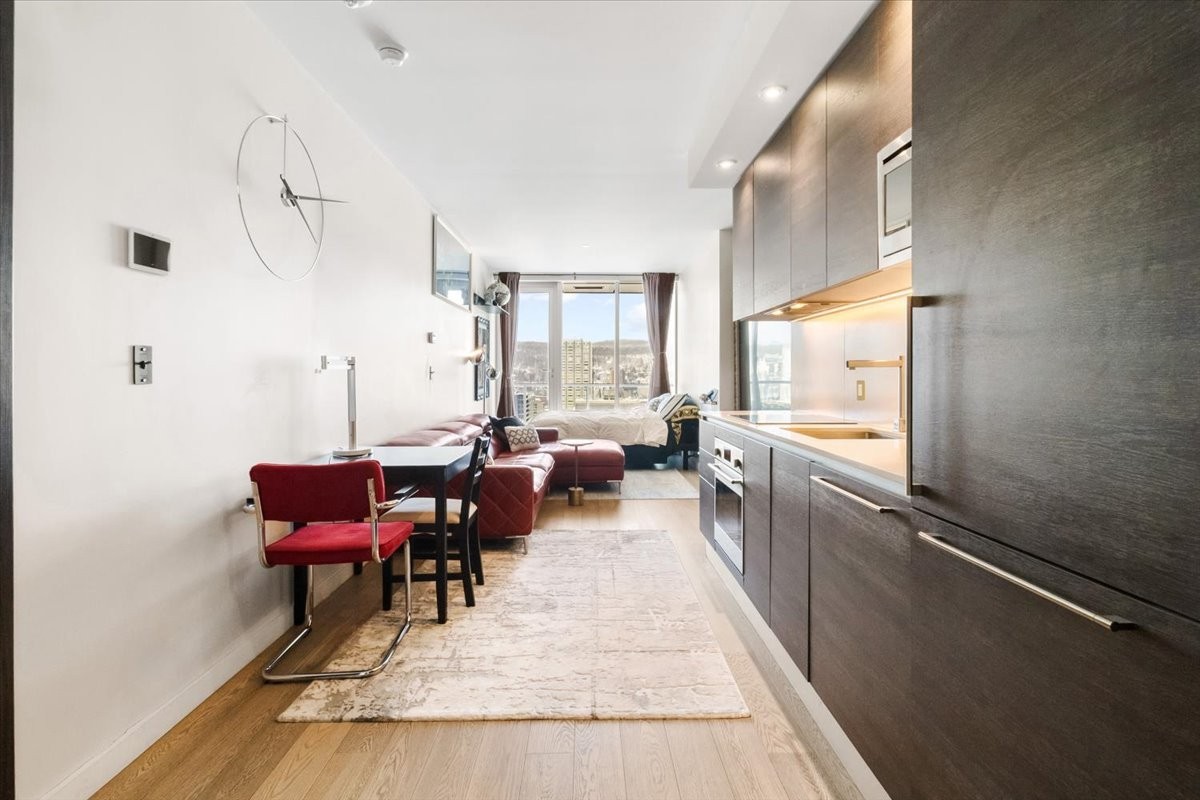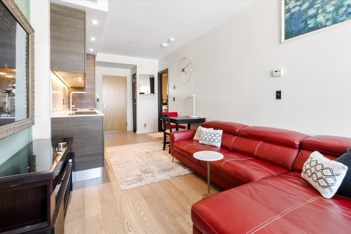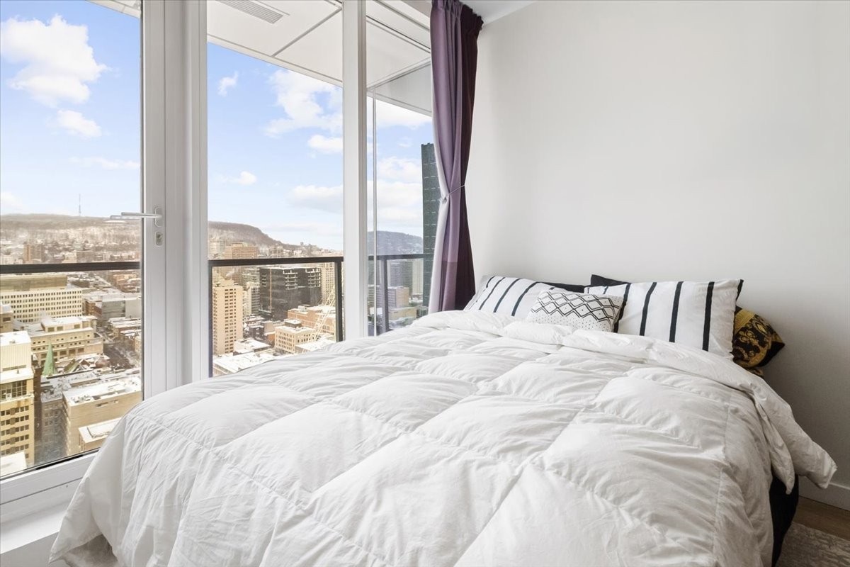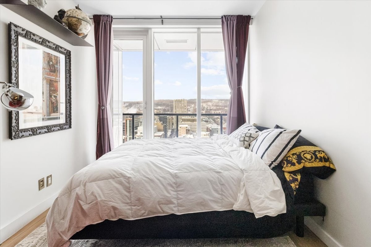 Perchée au 30 étage de l'iconique YUL, ce studio élégant offre des vues panoramiques sur le centre-ville de Montréal et le parc du Mont-Royal. L'aménagement à aire ouverte maximise l'espace et la lumière, avec des fenêtres du sol au plafond encadrant le paysage urbain le jour et la skyline la nuit. La cuisine moderne s'intègre parfaitement au séjour, créant un espace à la fois fonctionnel et raffiné. Profitez des commodités de type resort, concierge 24/7, centre de fitness, et d'un accès immédiat aux meilleurs restaurants, boutiques et attractions culturelles du centre-ville. Idéal comme pied-à-terre, investissement ou résidence principale.