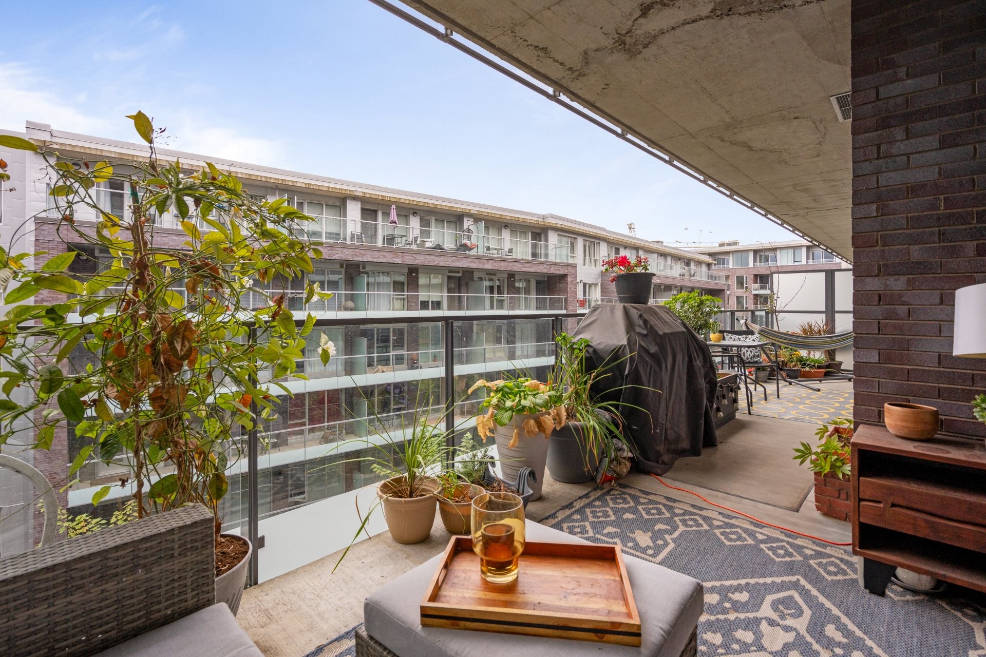 Profitez d'une abondance de lumière naturelle grâce aux fenêtres pleine hauteur et pleine largeur, et accédez au balcon surdimensionné qui s'étend sur toute la largeur de l'unité -- parfait pour se détendre ou recevoir. La climatisation centrale et un échangeur d'air assurent un confort toute l'année.