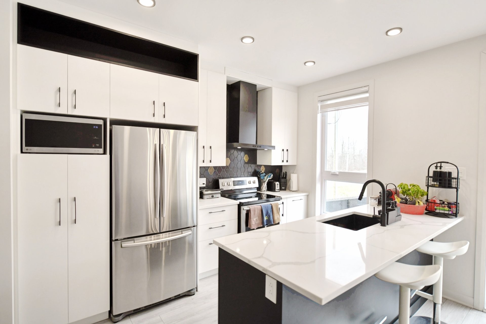 Tous les électroménagers Samsung (frigidaire, poêle, hotte de cuisine, lave-vaisselle, laveuse, sécheuse). Tous les stores, rideaux et luminaires. 2 miroirs s.d.b. Meuble du patio. Ouvre porte électrique du garage. Thermopompe murale.