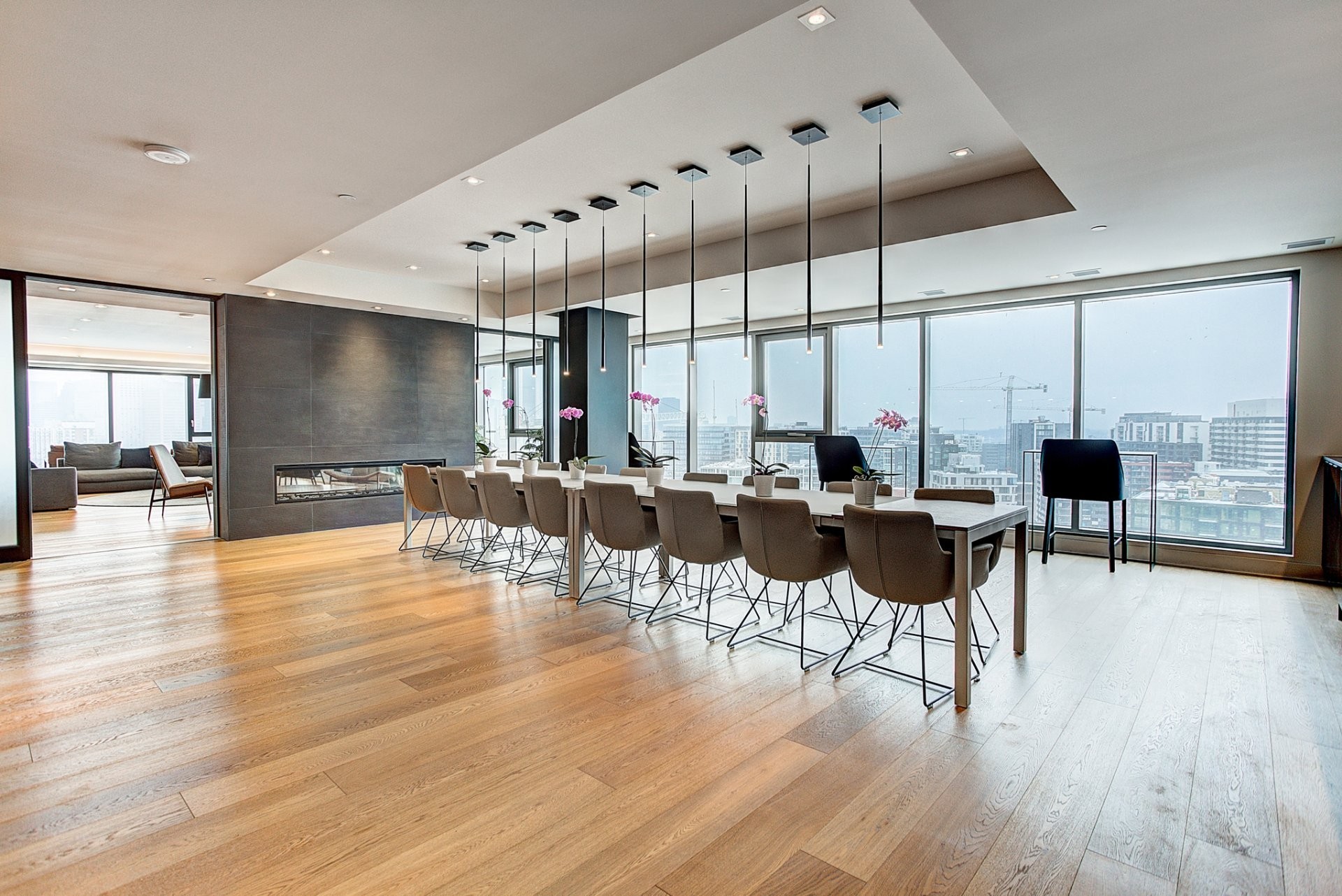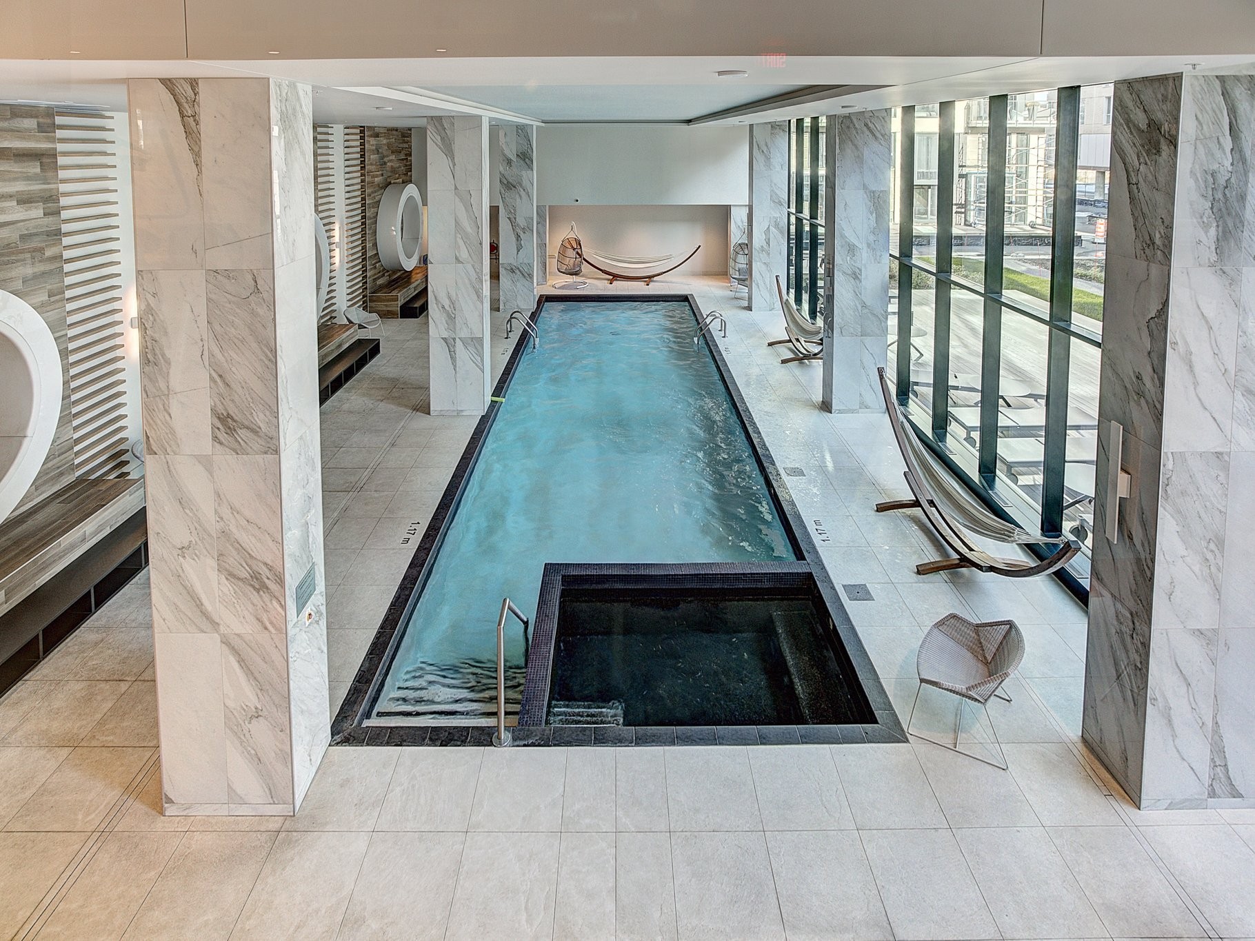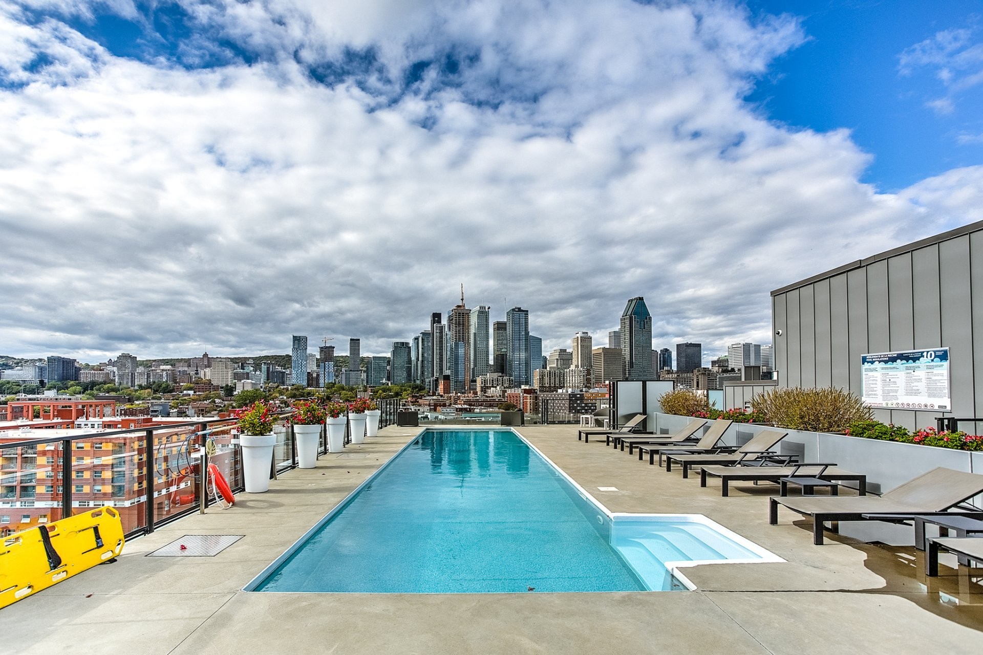 Une architecture unique où les bâtiments semblent flotter sur l'eau ;Certification LEED®, équipements écoénergétiques de haute performance, panneaux solaires ;Un centre sportif de 6000 pieds carrés avec spa, sauna, piscine intérieure, vaste salle d'exercice et studio de yoga ;Piscine chauffée sur le toit avec espace détente et barbecues à gaz ;Chalet urbain au 21e étage offrant une vue incroyable sur la ville.