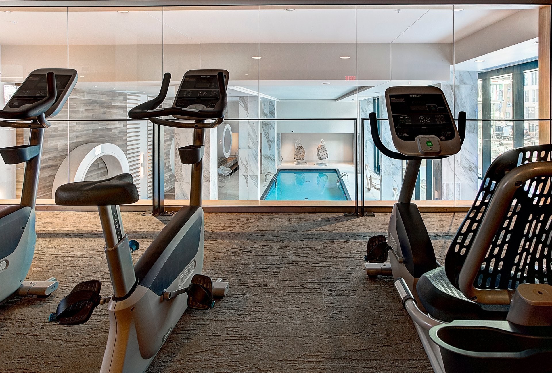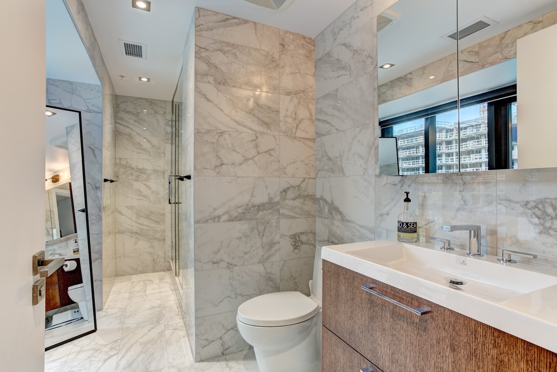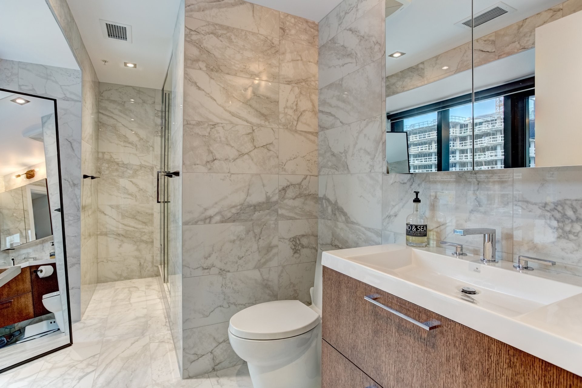 Une architecture unique où les bâtiments semblent flotter sur l'eau ;Certification LEED®, équipements écoénergétiques de haute performance, panneaux solaires ;Un centre sportif de 6000 pieds carrés avec spa, sauna, piscine intérieure, vaste salle d'exercice et studio de yoga ;Piscine chauffée sur le toit avec espace détente et barbecues à gaz ;Chalet urbain au 21e étage offrant une vue incroyable sur la ville.