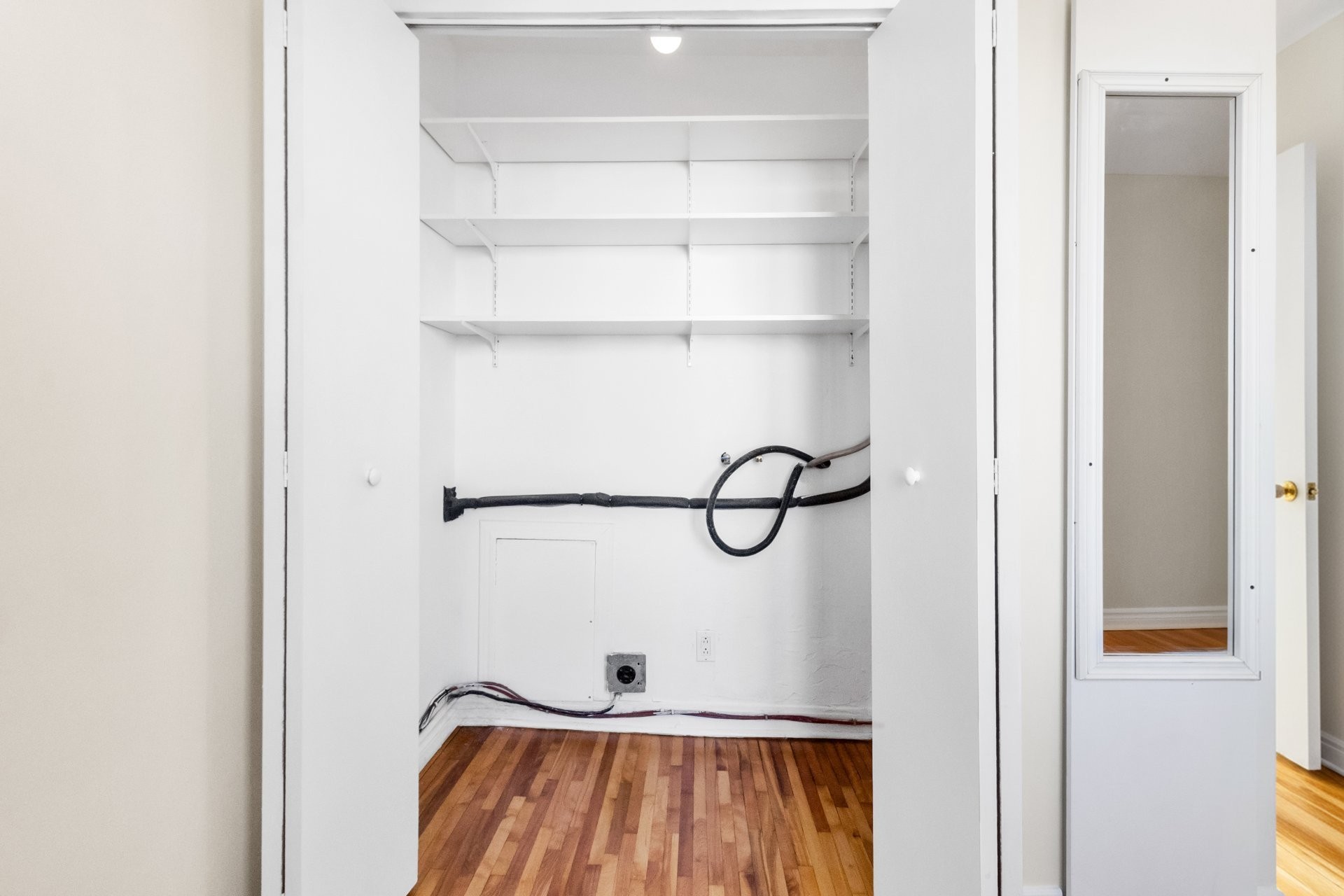 Le logement est équipé d'une thermopompe murale pour un confort toute l'année et comprend une place de stationnement extérieure pour plus de commodité.