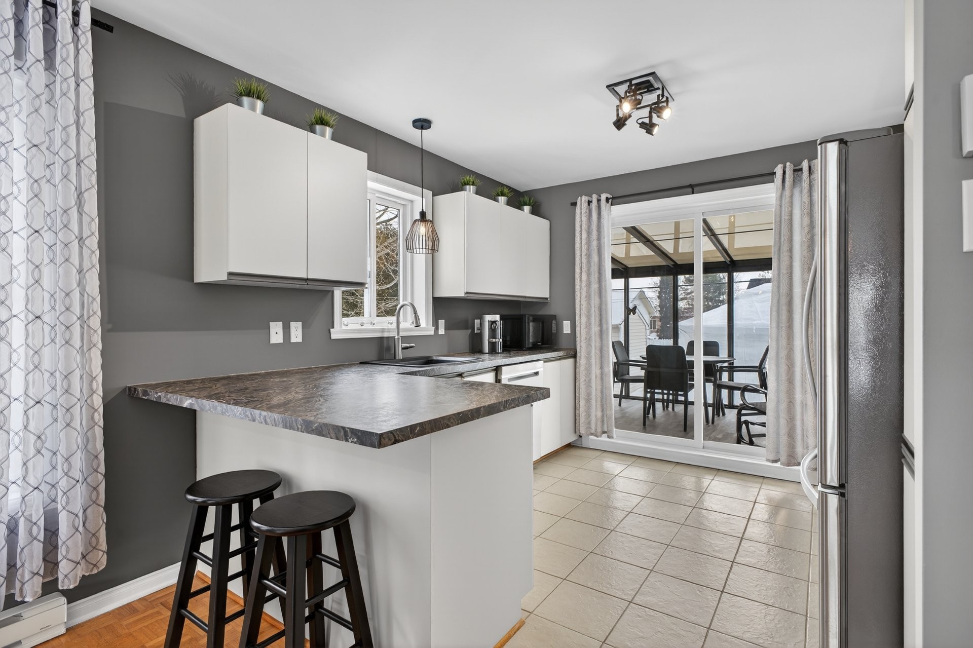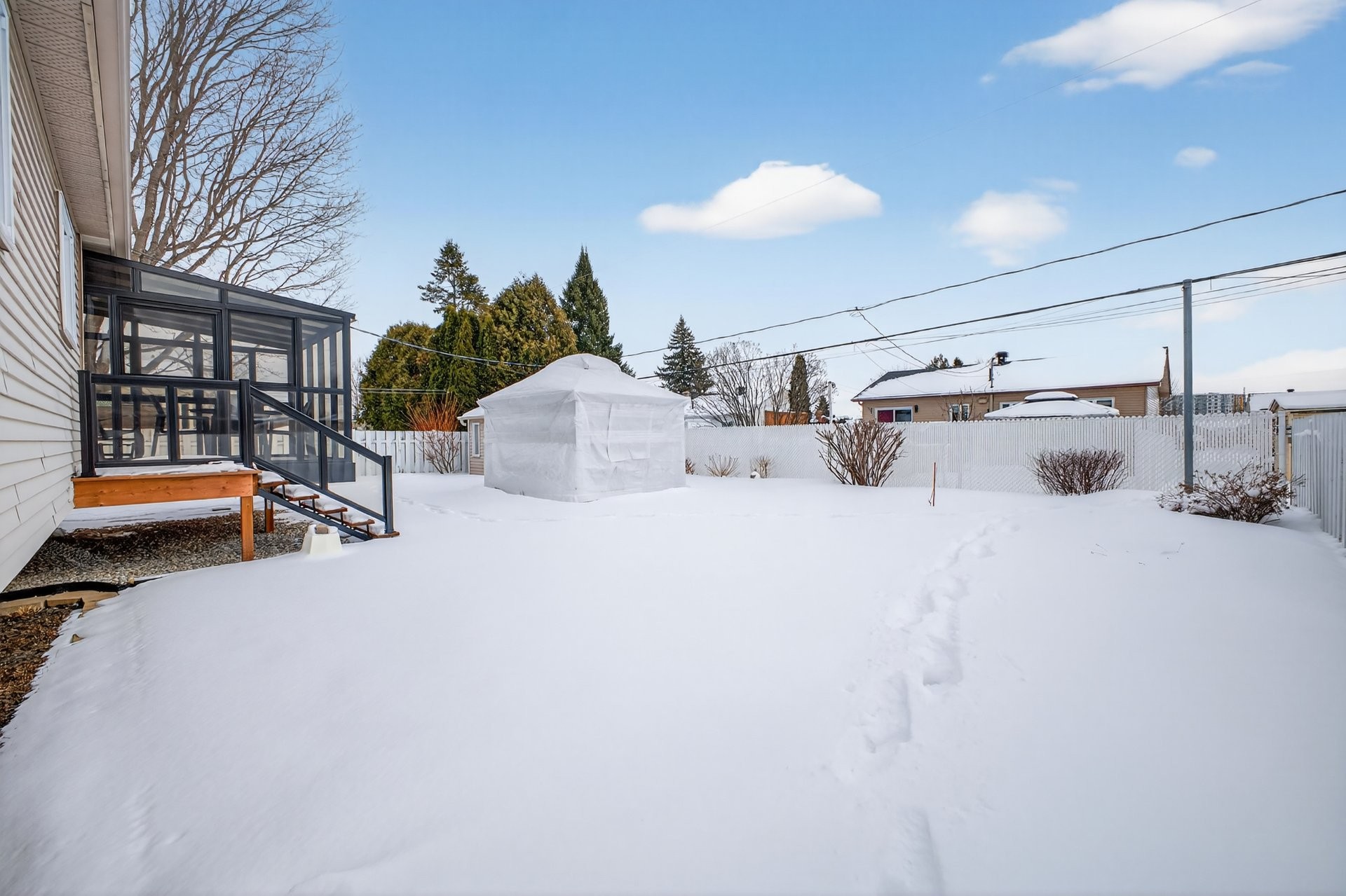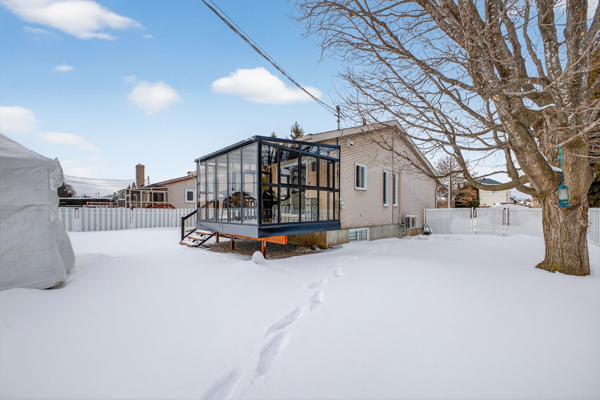 Luminaires permanents, rideaux (salon, salle à manger, cuisine, chambres), tringles (salon, salle à manger, cuisine, chambres), hotte de cuisine (2017), thermopompe murale maison (2025), chauffe-eau 40 gallons (2023), miroir de salle de bain, aspirateur central et accessoires (2005), cabanon, gazebo 10 X 12 & accessoires (moustiquaires, toile hivernale - 2021) et borne de recharge (pour Tesla).