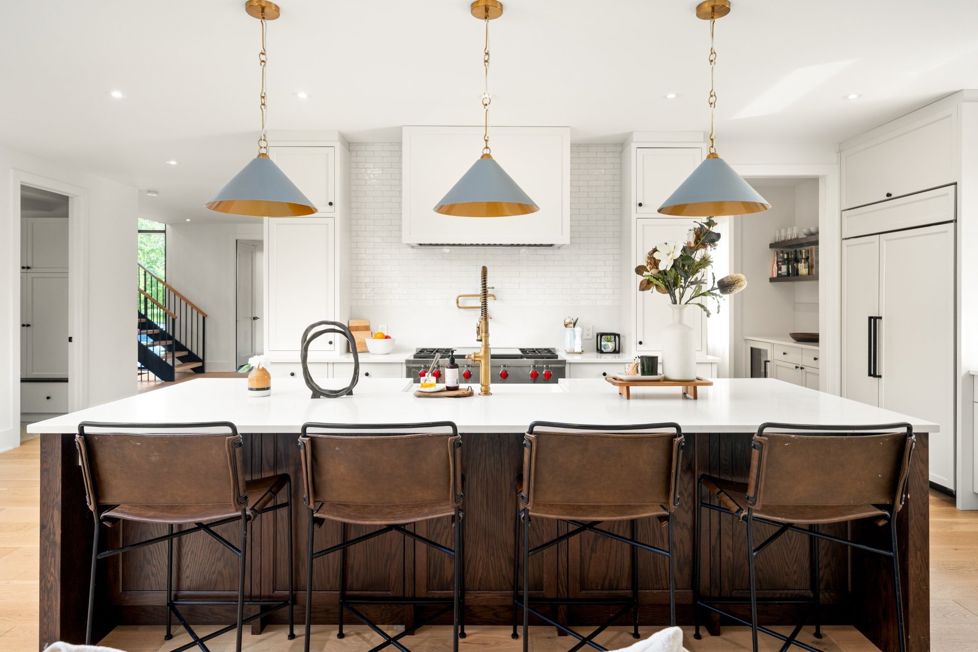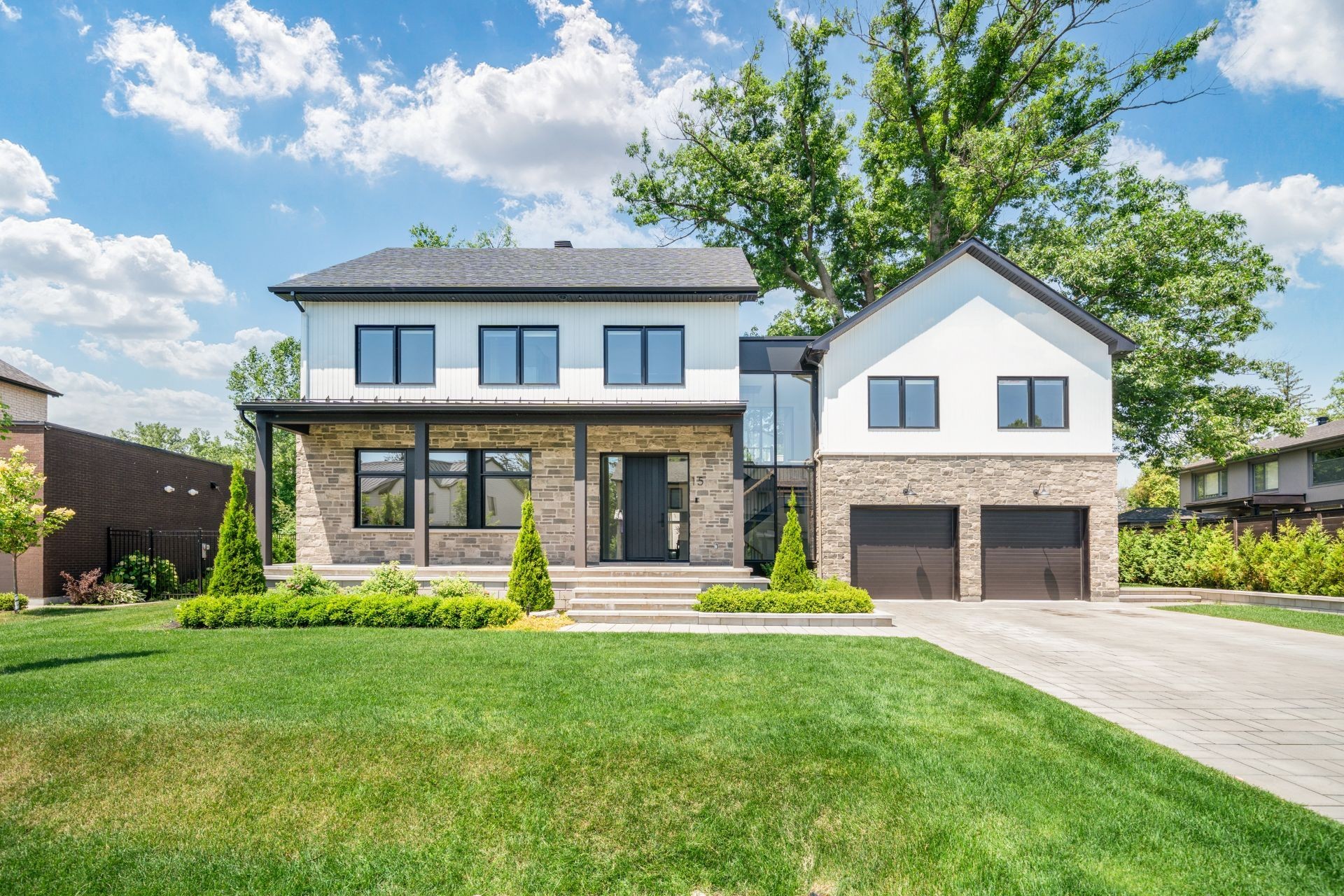 Conçue pour répondre aux besoins de la vie familiale moderne, la maison comprend 5 chambres spacieuses (4+1), 4 salles de bains complètes dont 3 attenantes, 1 salle d'eau ainsi qu'une salle de lavage entièrement équipée à l'étage. Le rez-de-chaussée à aire ouverte est idéal pour recevoir ou pour la vie de tous les jours, avec des plafonds allant jusqu'à 16 pieds, un chaleureux foyer au gaz naturel, et un spectaculaire plafond avec poutres apparentes en bois dans la salle familiale. La cuisine de chef est équipée d'appareils Wolf, d'un réfrigérateur Sub-Zero, d'un garde-manger walk-in et d'un espace café sur mesure - le tout rehaussé par la richesse des planchers de chêne Mirage de 8 pouces(¾ po d'épaisseur).
