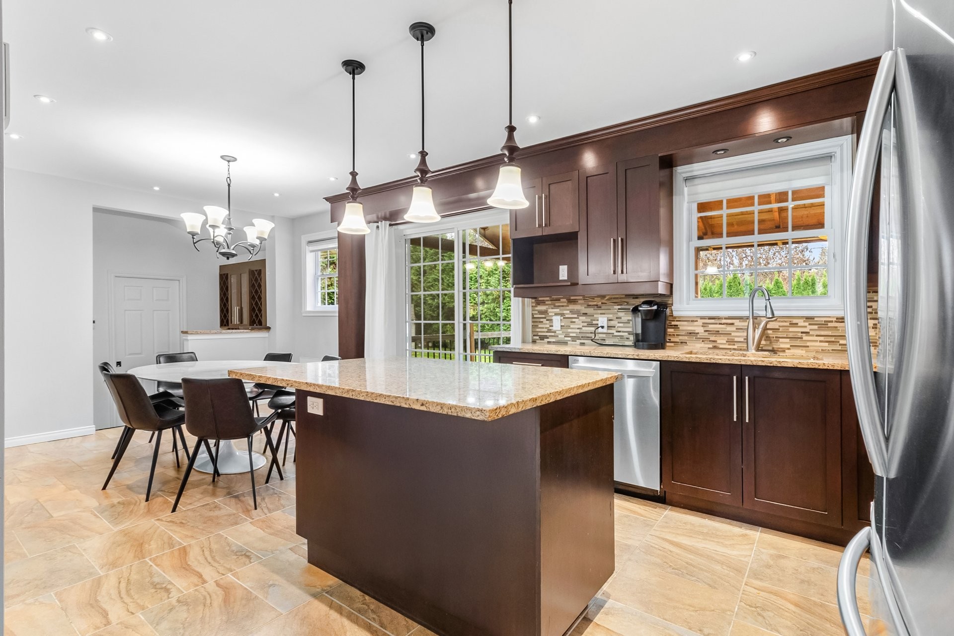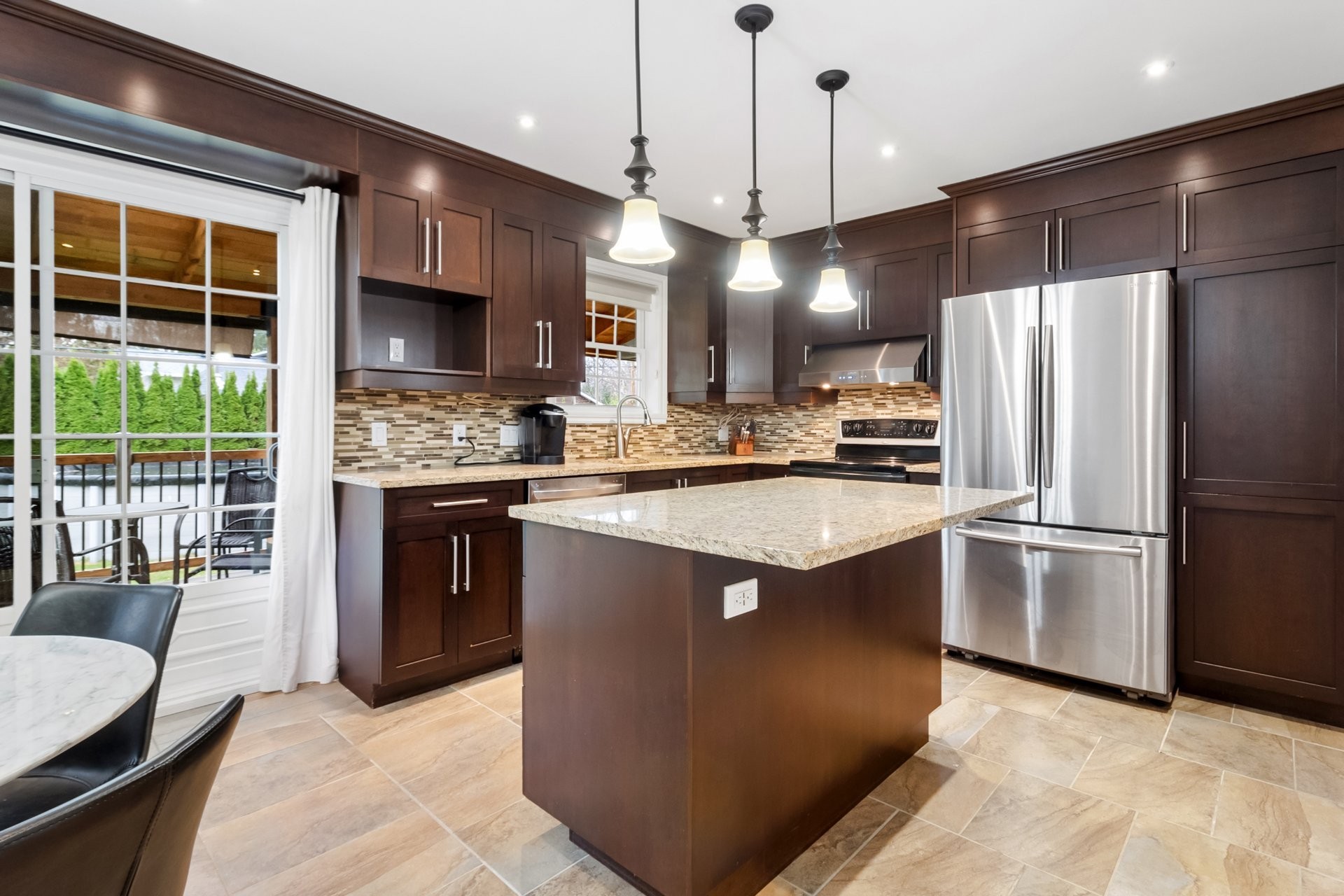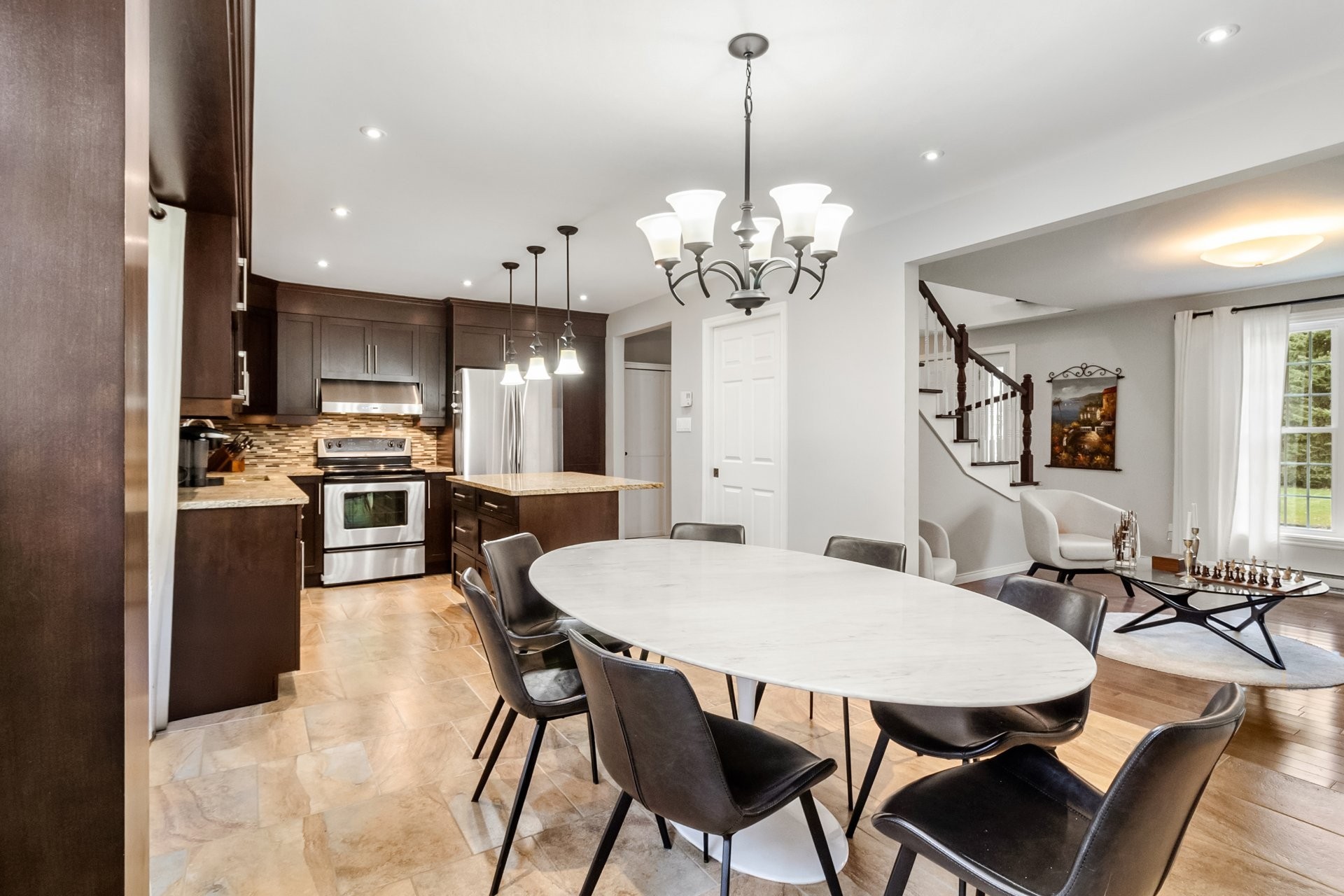 INCLUSIONS: Terrasse: BBQ + table de Jardin + 4 chaises de jardin. Réfrigérateur, four/plaques de cuisson, lave-vaisselle, laveuse + sécheuse LG. Petit salon: sofa couleur cuir + 2 fauteuils couleur beige clair + table basse en vitre + tapis circulaire beige. Armoire pour manteaux (entrée). Grand Salon: grand pouf noir + lampe IKEA + meuble de rangement noir et bleu + grand sofa blanc avec footstool + Tapis type antique bleu + lampe de coin + étagères + meuble TV avec rangement + Etagère au-dessus de la télévision + Télévision Samsung 65" QLED. Chambre principale: lit king + Matelas mousse mémoire Dormeo + 2 tables de nuit + 2 lampes de chevet + tapis type antique noir. Deuxième chambre: lit queen + matelas mousse mémoire Bloom + meuble TV + télévision Samsung 50" + table de nuit. Bureau: étagères, bureau, fauteuil de bureau, 2 fausses plantes, 2 chaises beiges/en bois, télévision Samsung 43". Génératrice d'électricité à l'essence FIRMAN 1700 Watts. Treadmill Peloton (à tester post-intempéries). Salle à manger: table à manger en marbre blanc + 8 chaises en cuir noir. Système d'alarme complet avec cameras externes + alarme montée des eaux, anti-incendie, détection CO2. Système d'air conditionné. Garage doubles avec portes automatiques. 2 balançoires pour enfant. Piscine avec portique de sécurité au chlore.
