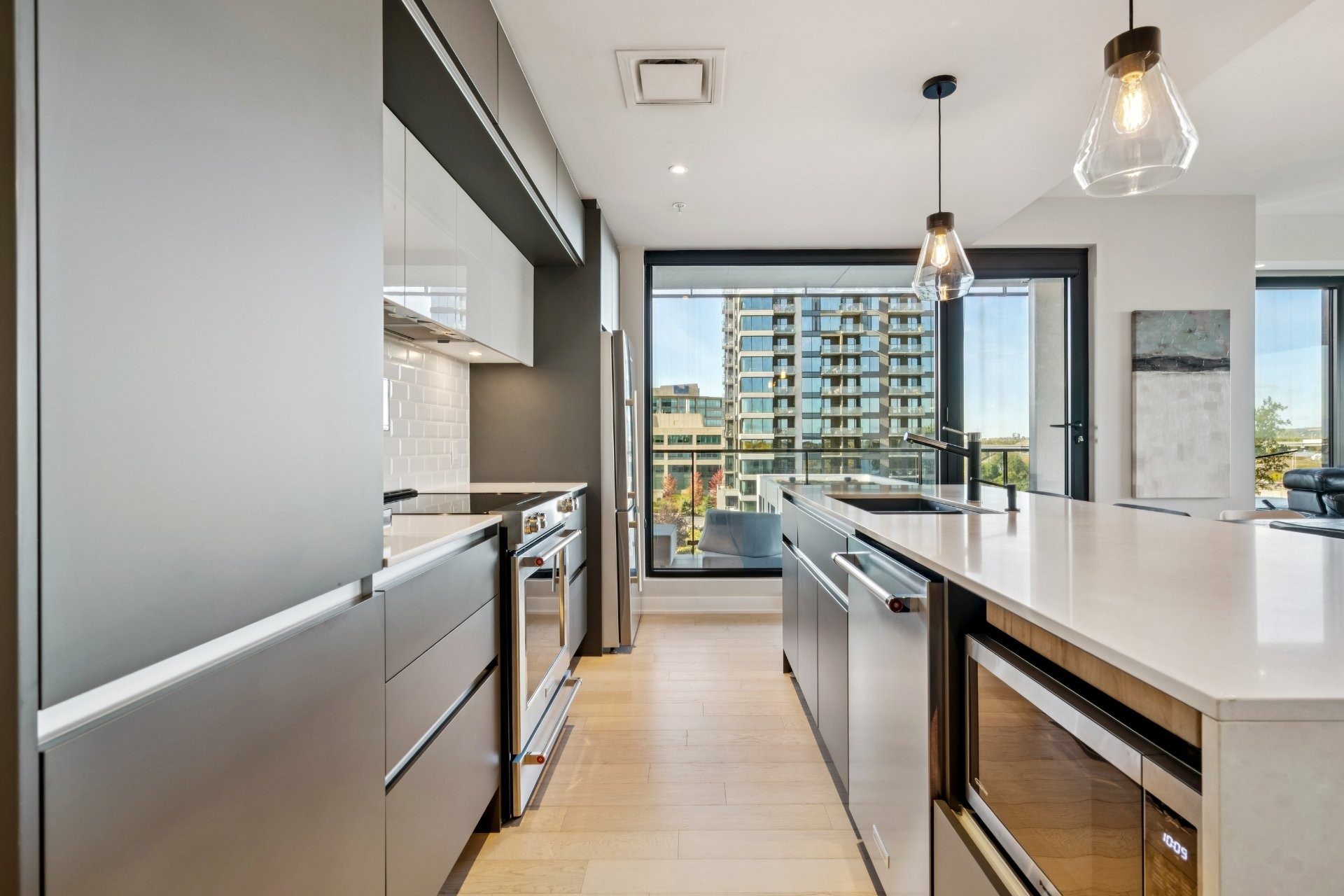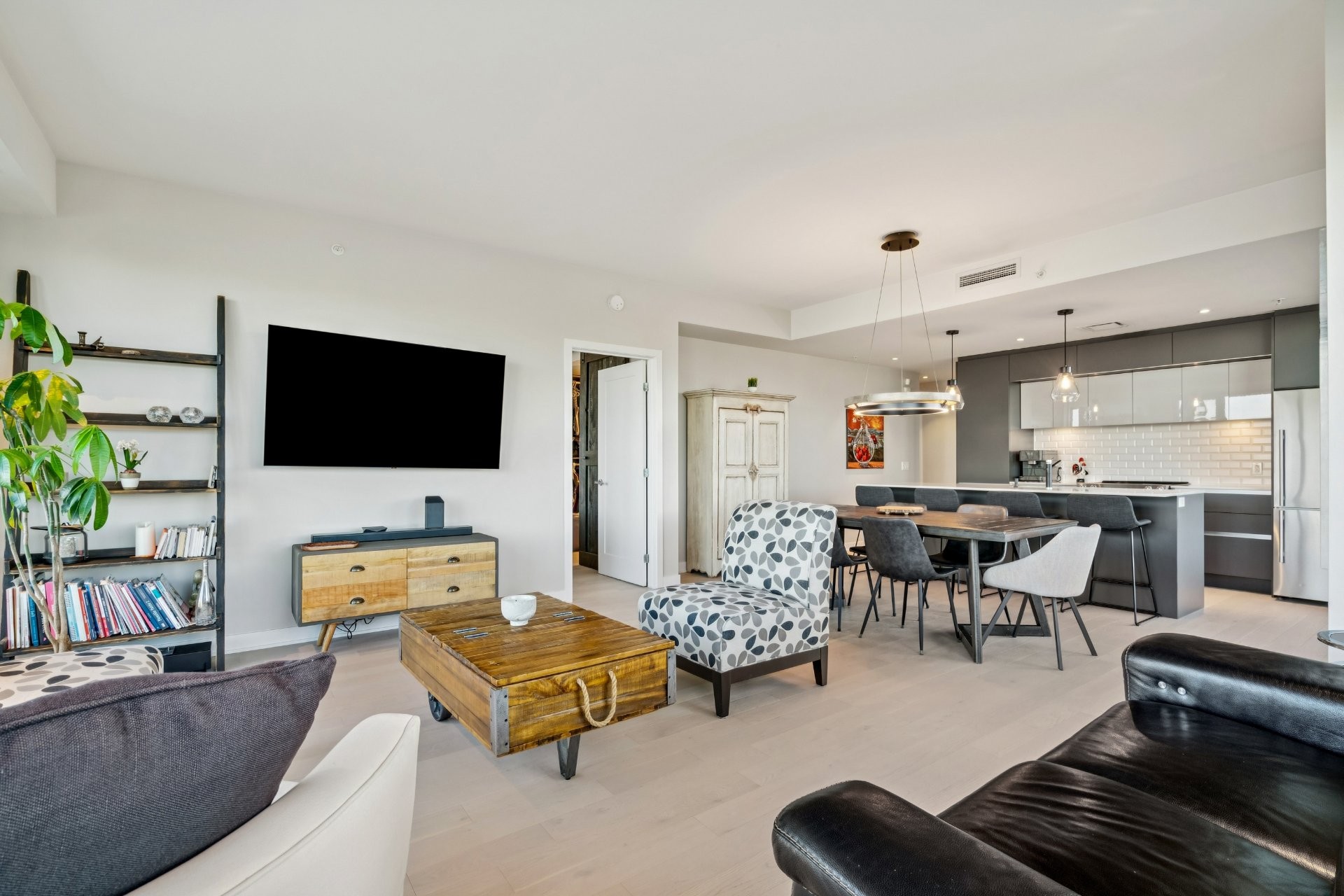 Située dans l'immeuble Évolo X, certifié LEED Argent (2022) par le Conseil du bâtiment durable du Canada, cette copropriété combine luxe contemporain et conscience écologique.