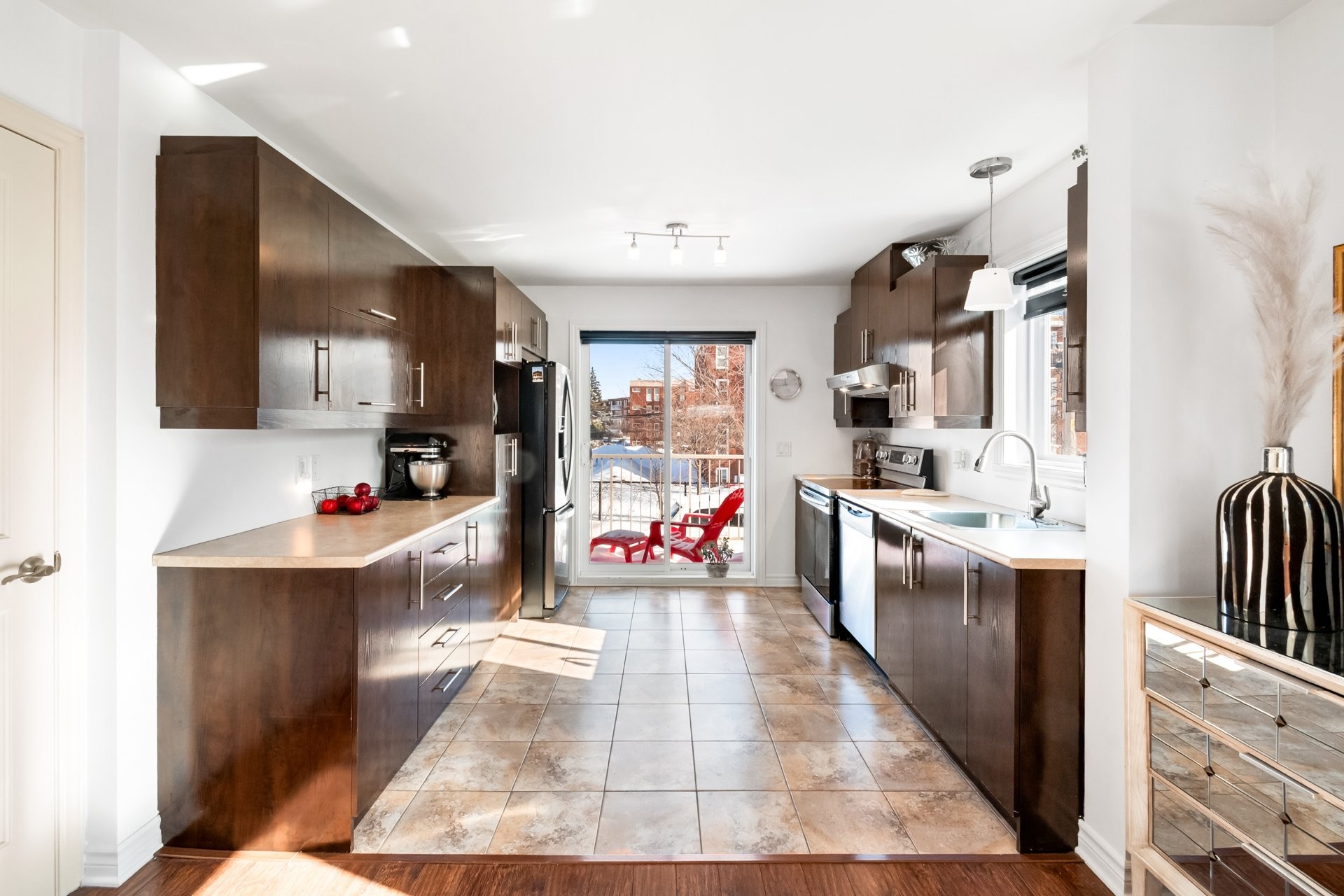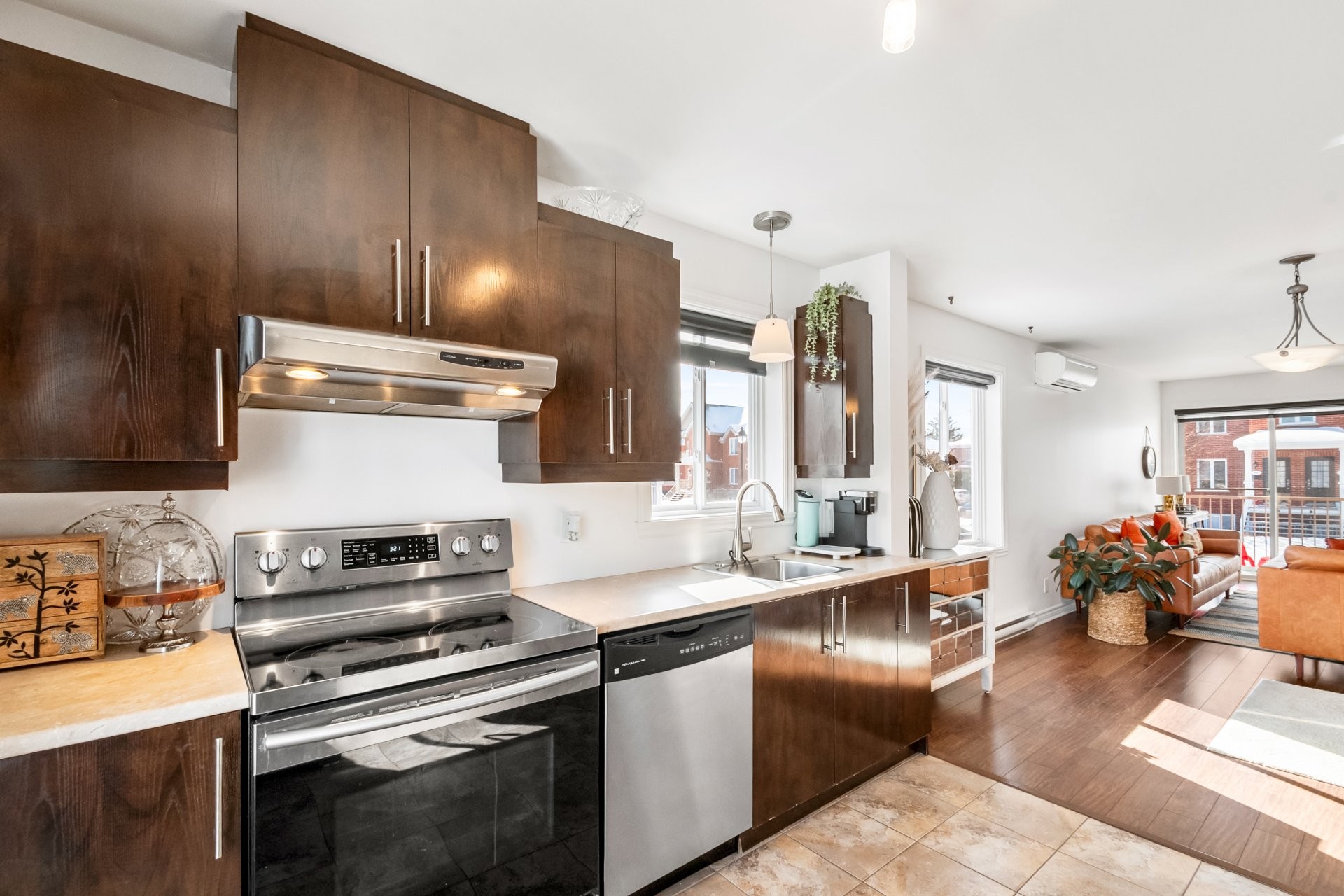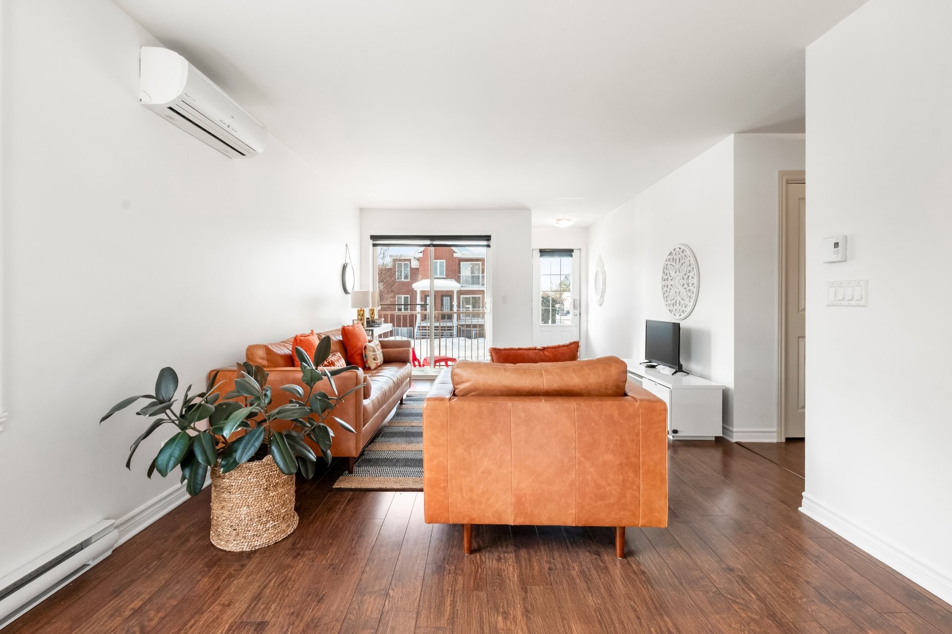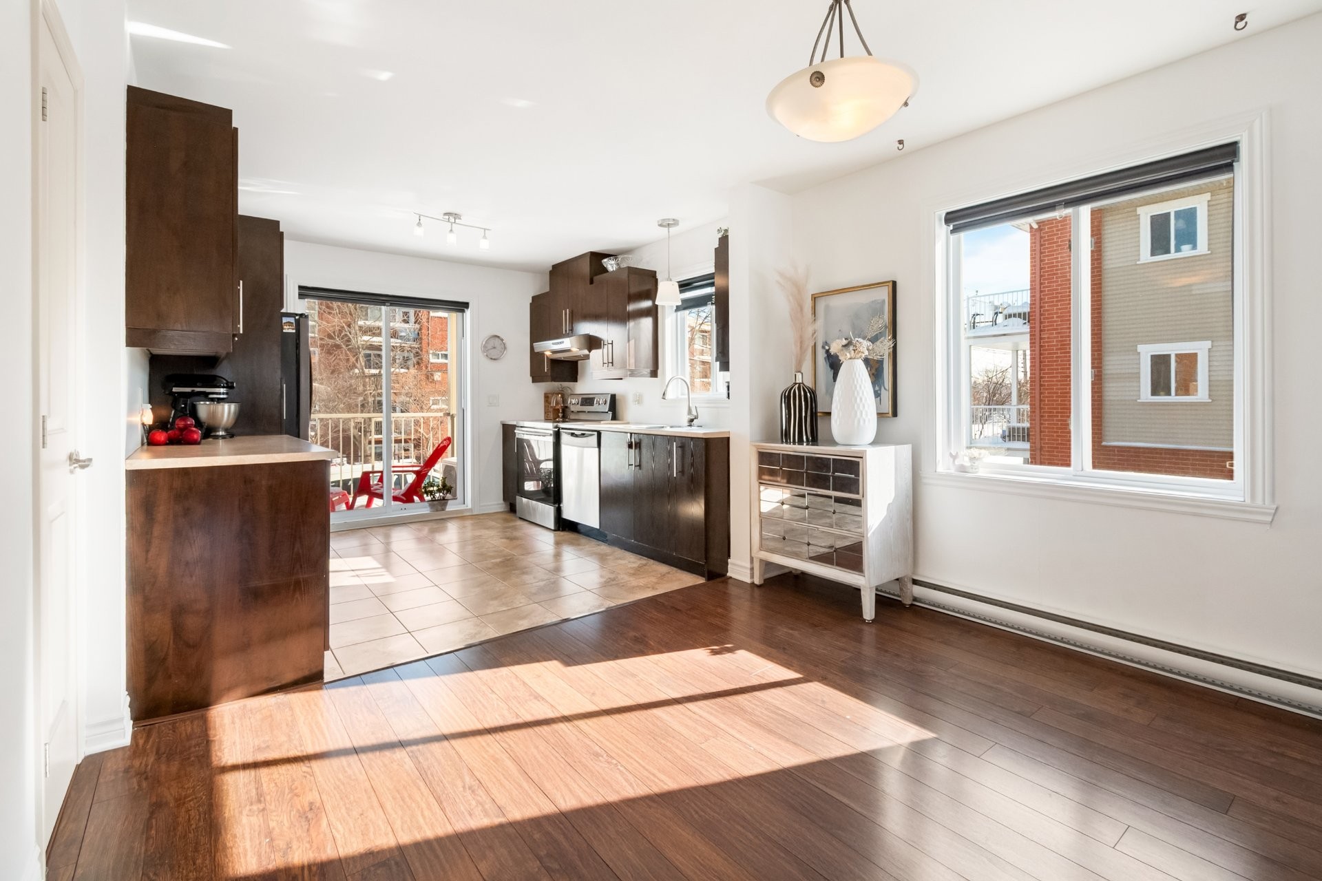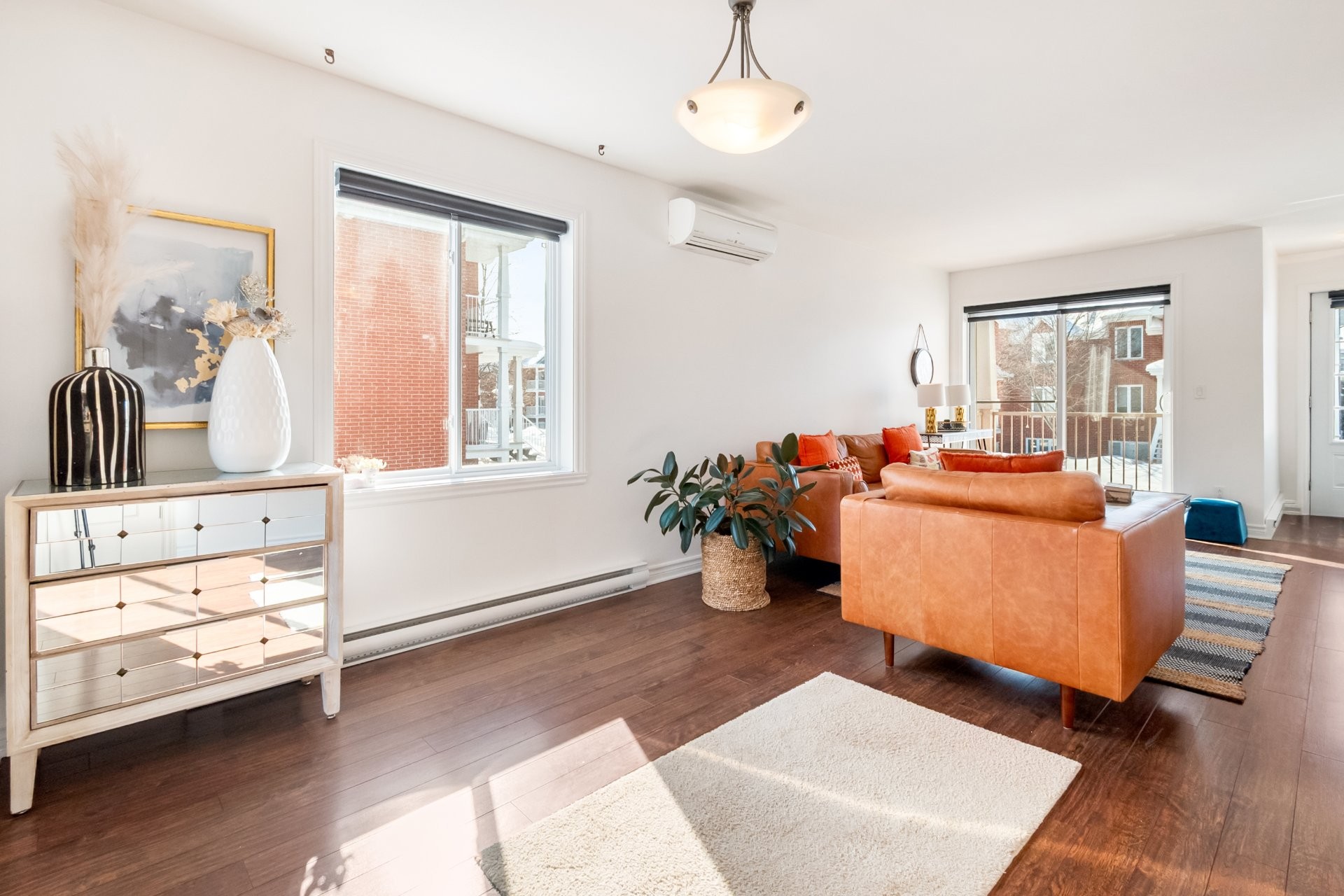 Lumineux appartement de 2 chambres au premier étage, baigné de lumière naturelle. Salon spacieux avec grandes fenêtres et portes-fenêtres donnant sur deux balcons privés, parfaits pour café ou détente. Plan ouvert reliant salon, salle à manger et cuisine entièrement équipée avec beaucoup d'espace de travail. Chambres généreuses et salle de bain avec douche et baignoire séparées. Comprend une place de stationnement extérieure et un casier de rangement. À quelques pas du Parc René-Veillet, proche des écoles, commerces et transports. Confort, praticité et style de vie réunis--un lieu idéal à appeler chez soi!