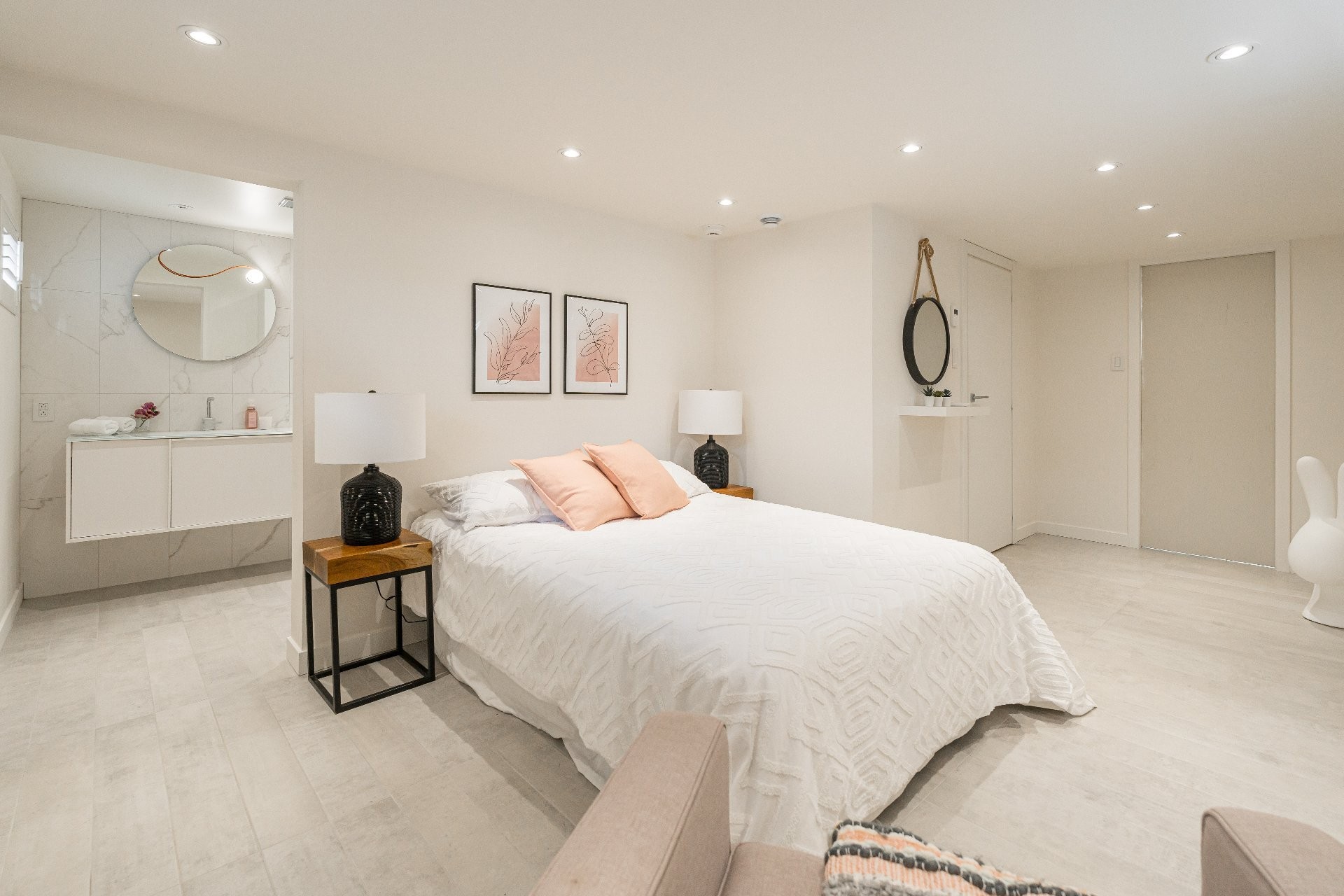 Caractéristiques du sous-sol: Grande salle familiale; 2 chambres avec walk-in et salle de bain attenante, idéales pour adolescents ou invités; Deuxième salle de lavage avec abondant rangement